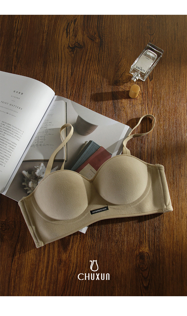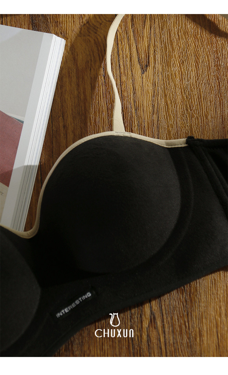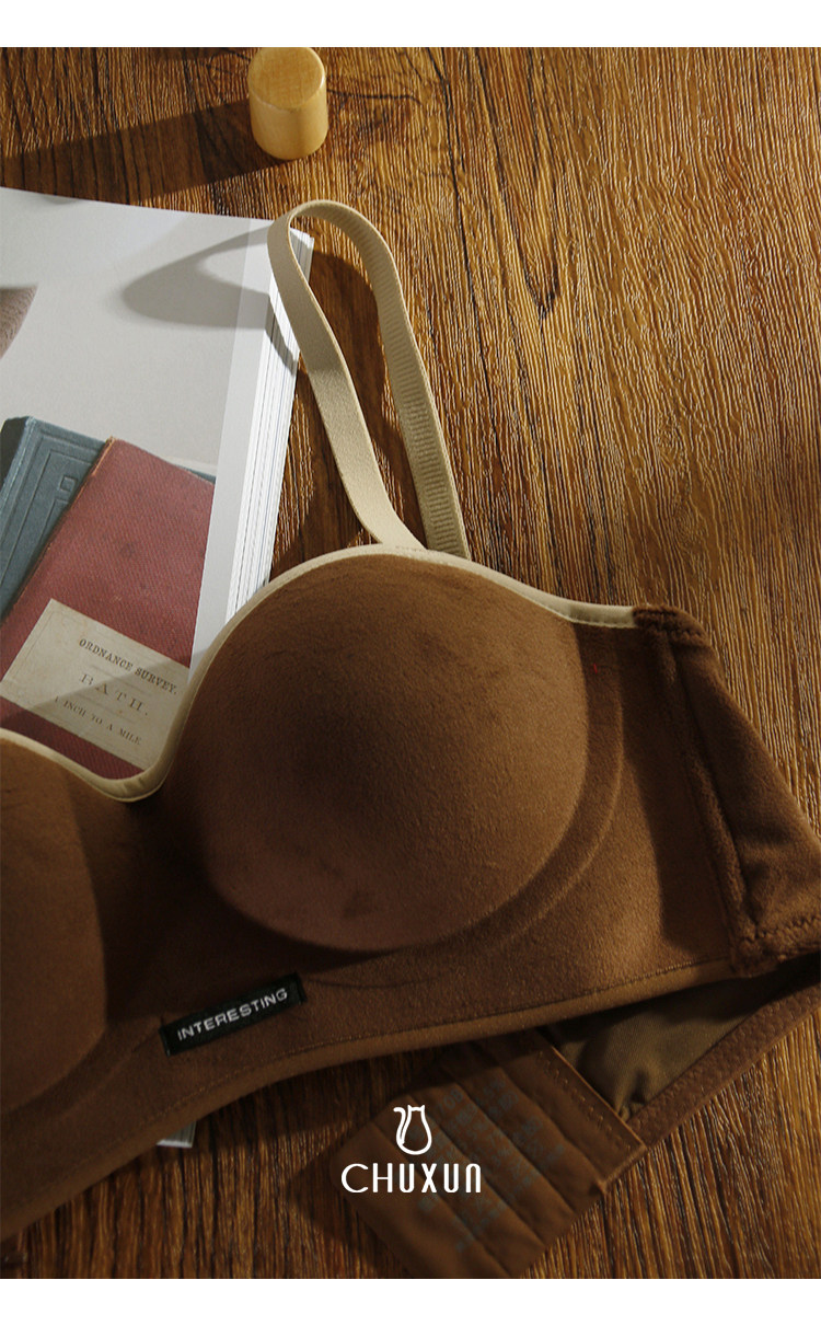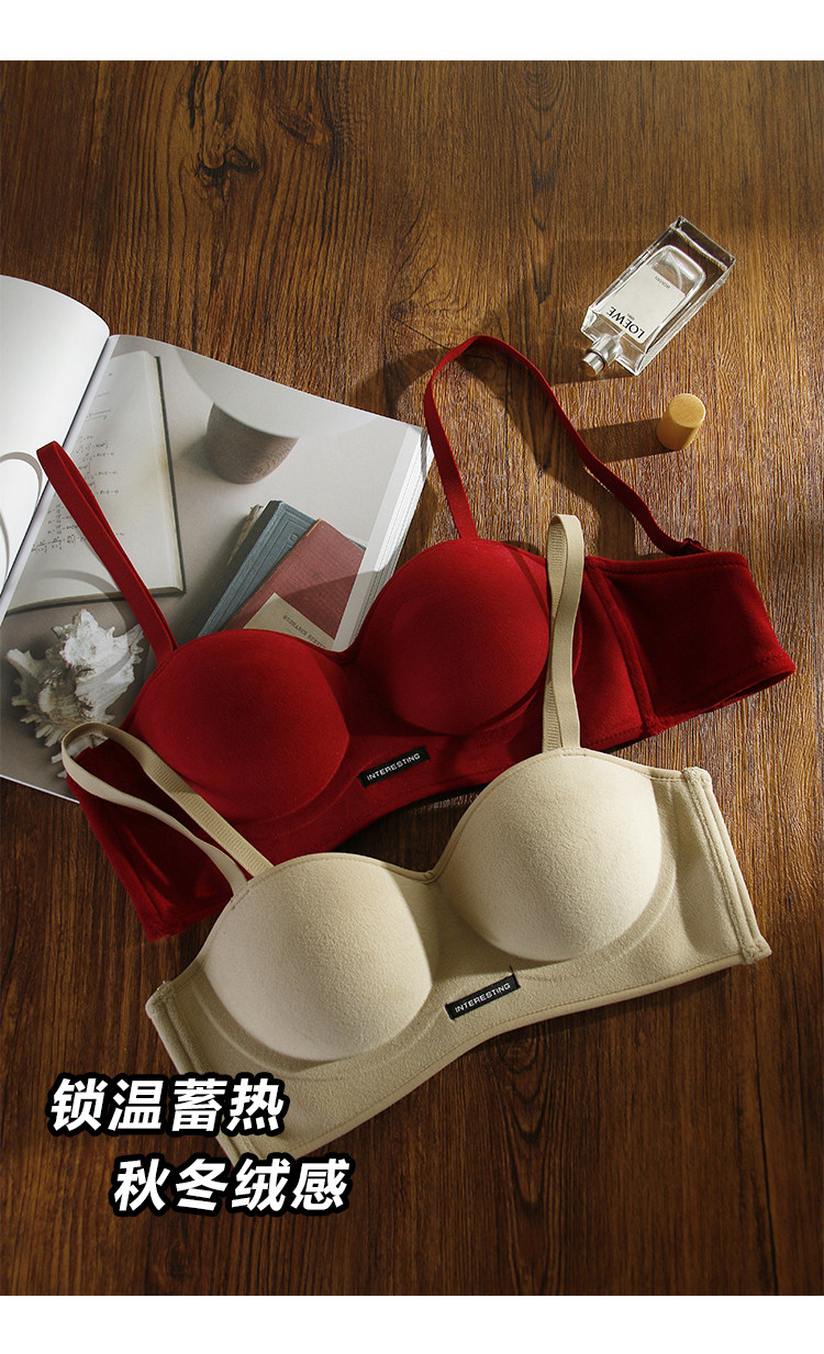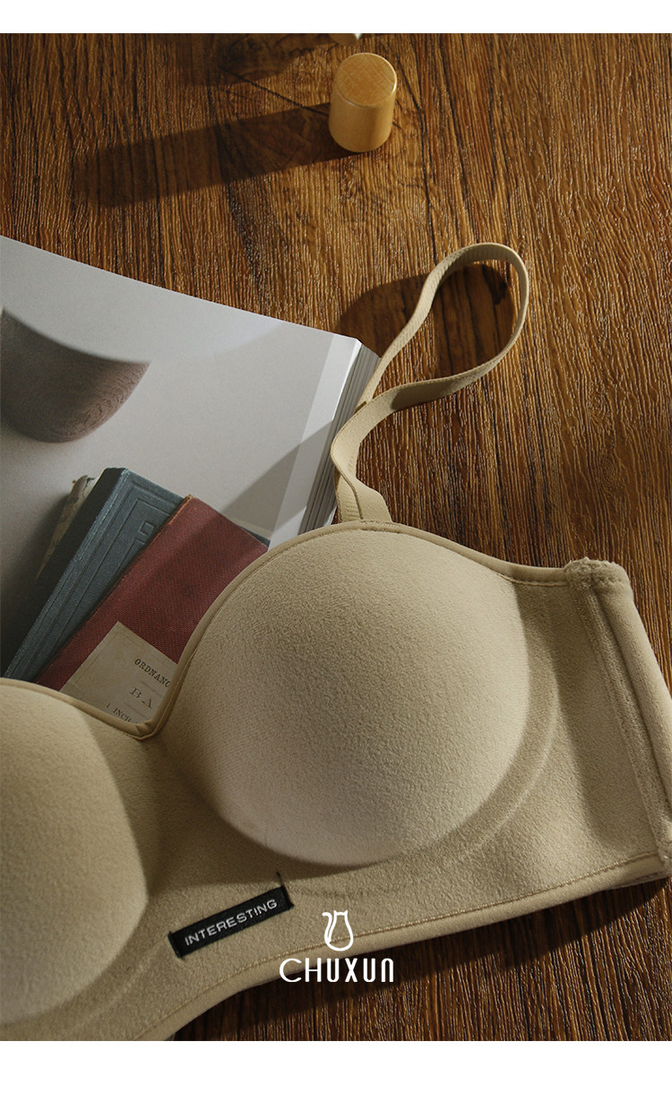 秋冬絨感磨毛暖肌內衣女小胸聚攏款無肩帶防滑上托無鋼圈文胸無痕