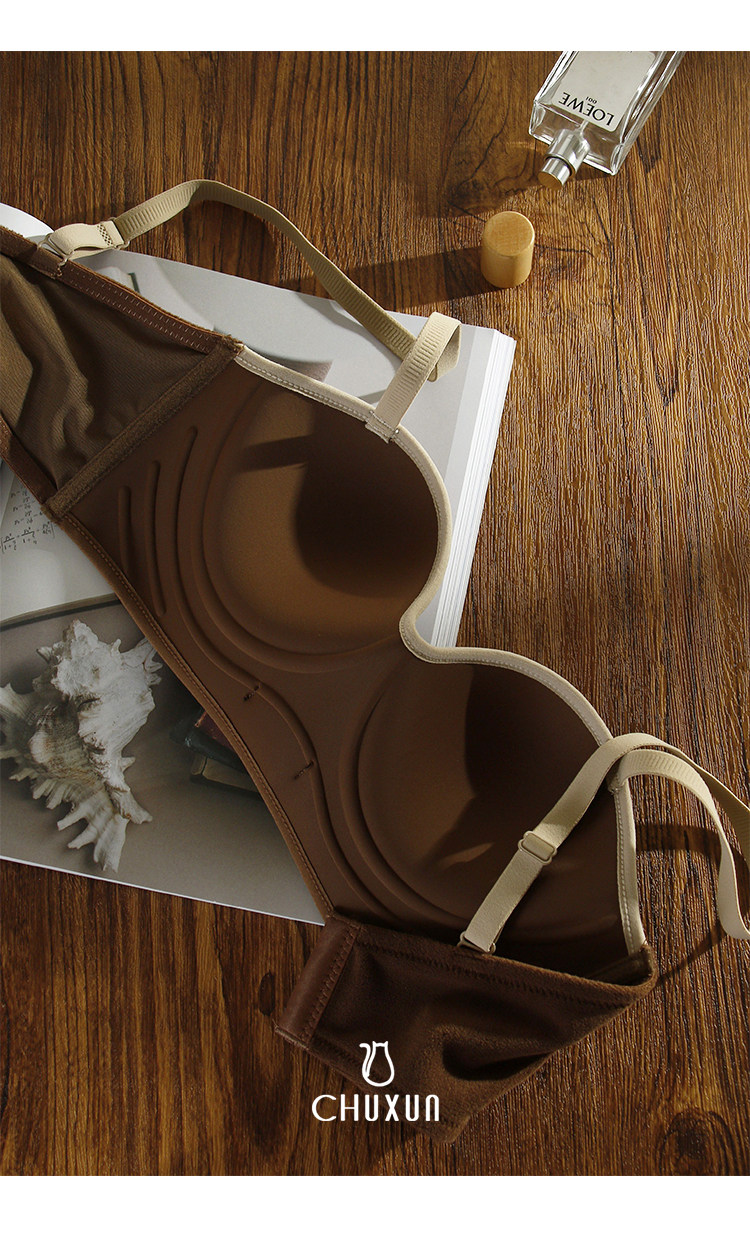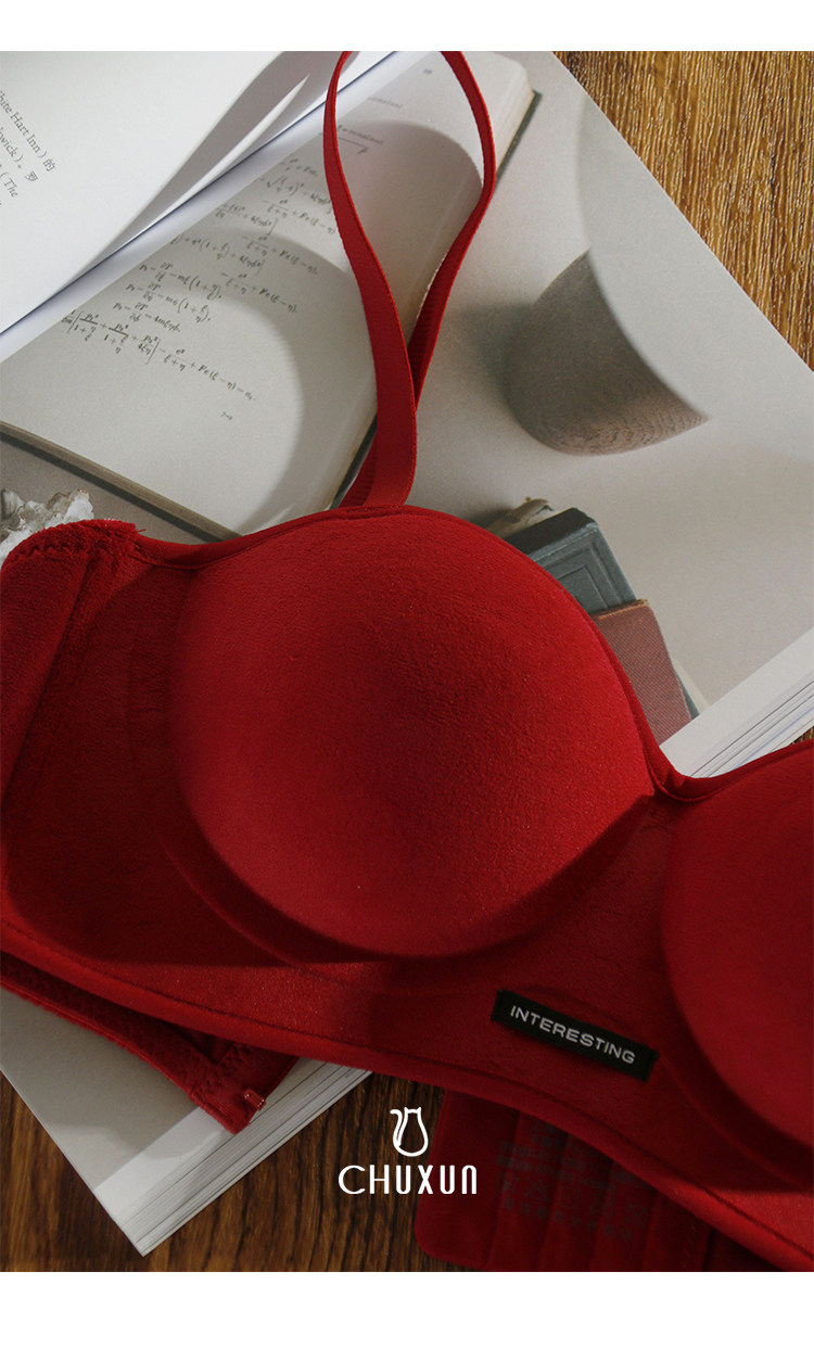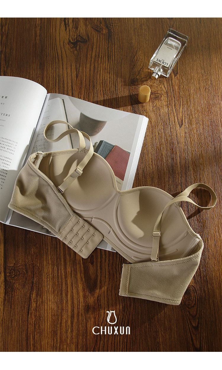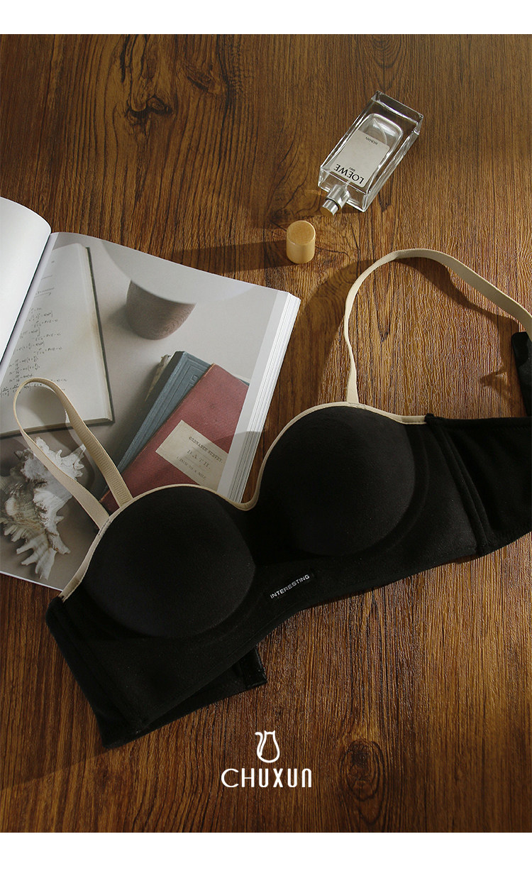 秋冬絨感磨毛暖肌內衣女小胸聚攏款無肩帶防滑上托無鋼圈文胸無痕