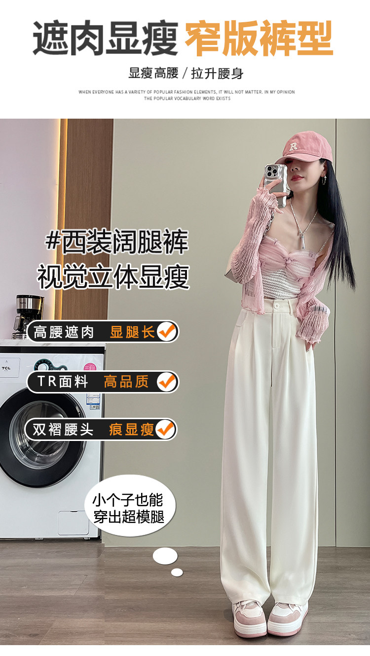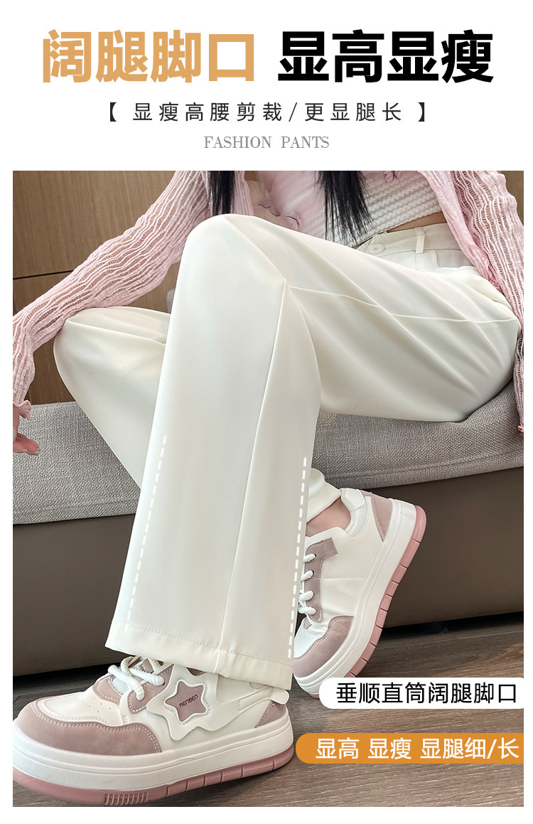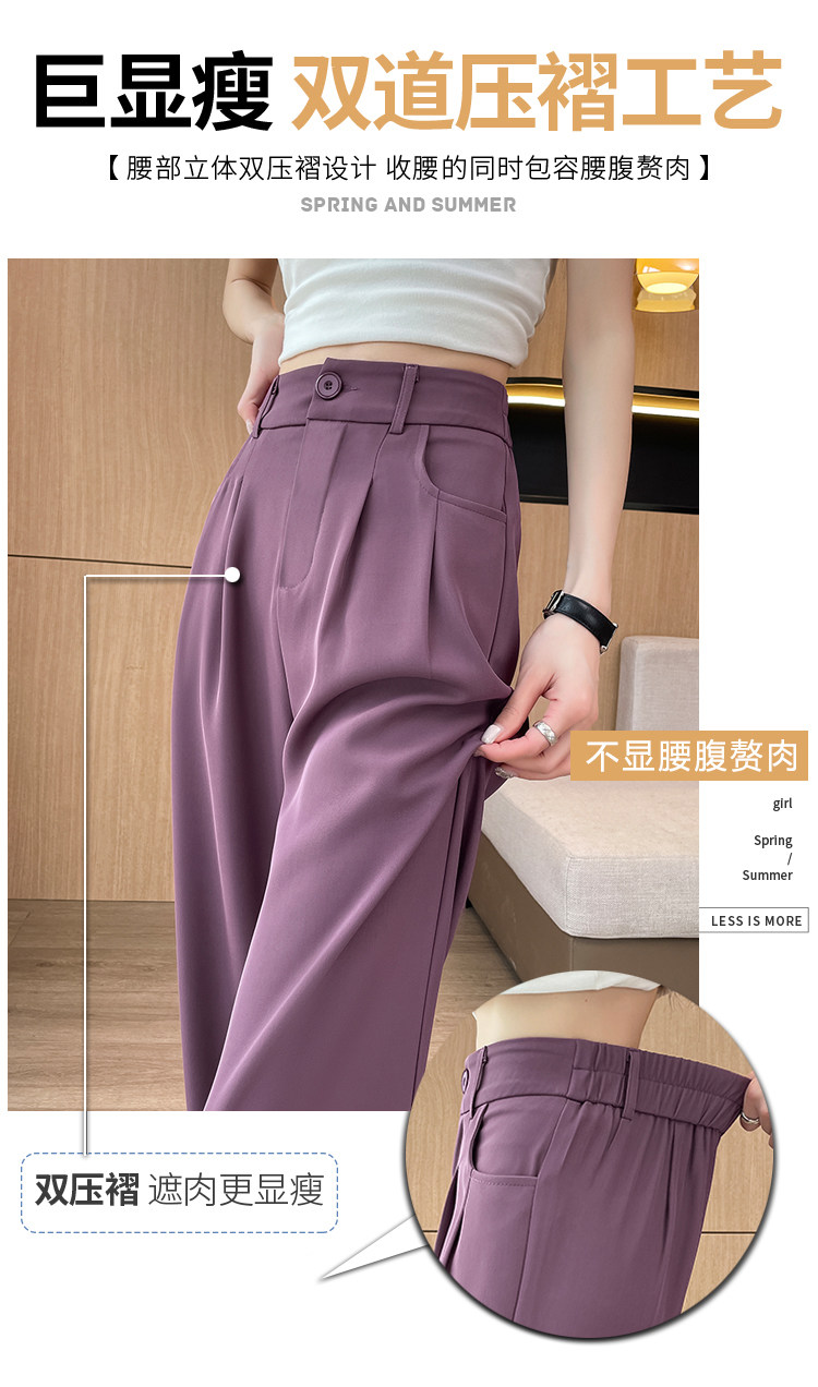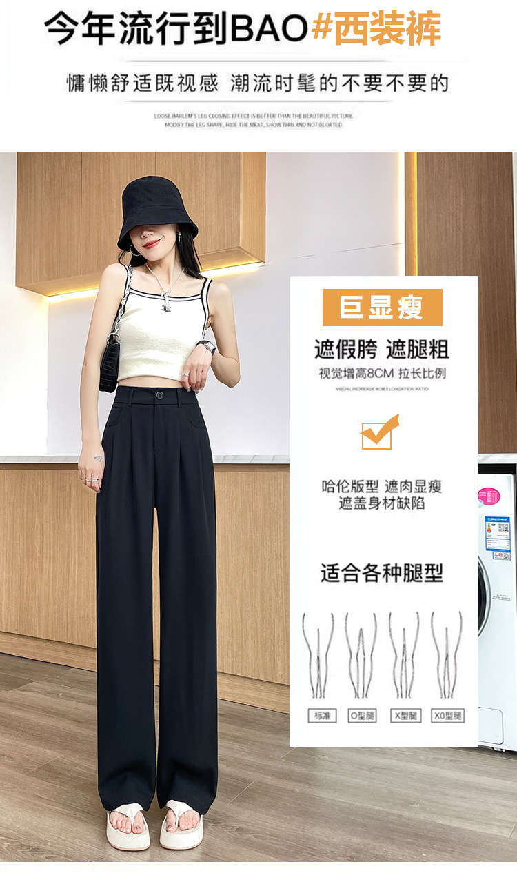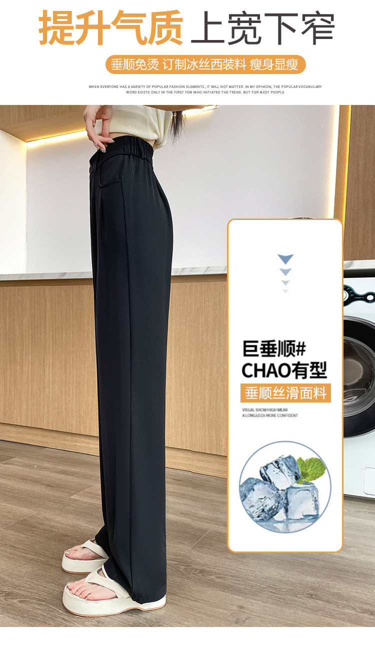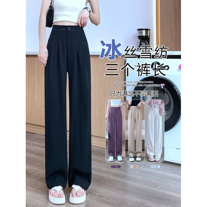 窄版雪紡濶腿褲女夏季薄款大碼胖mm冰絲垂感直筒加長高個子西裝褲