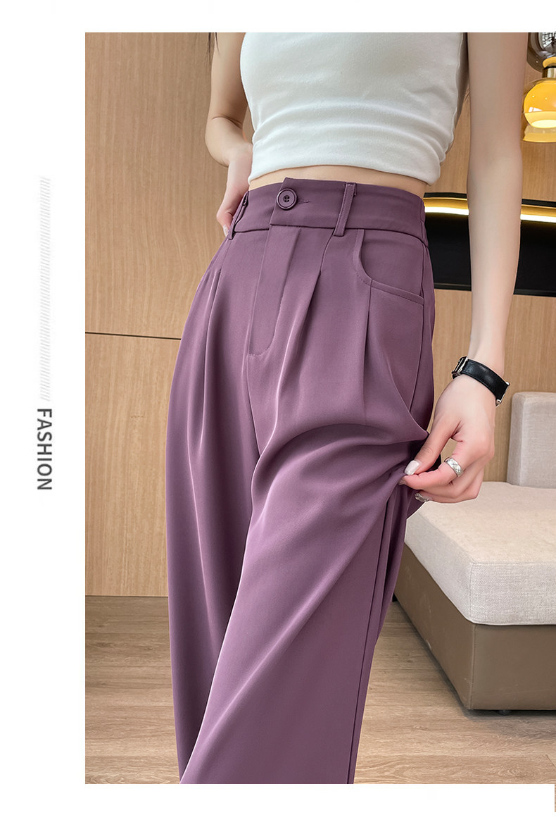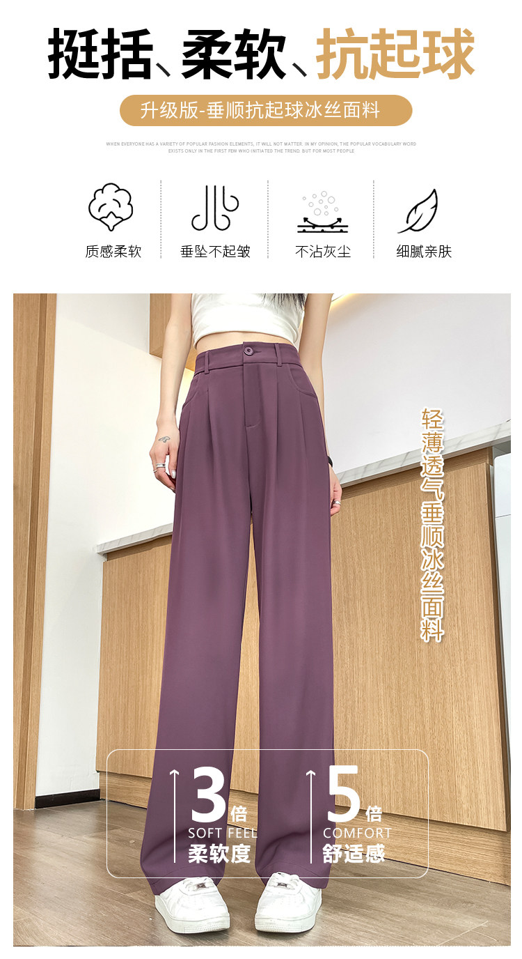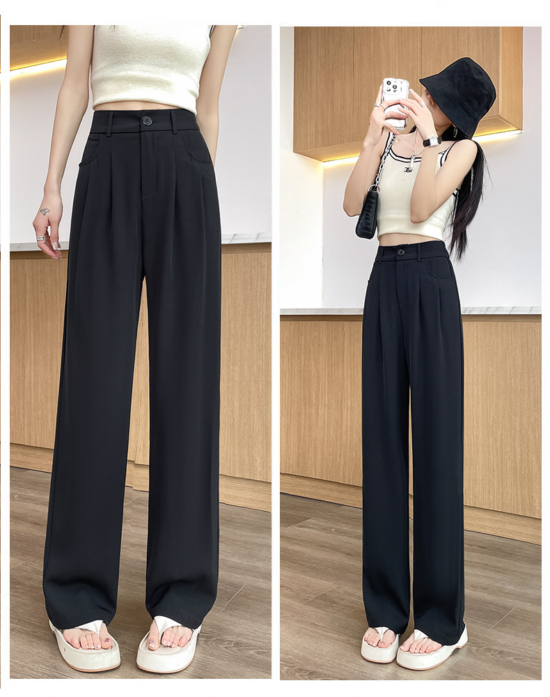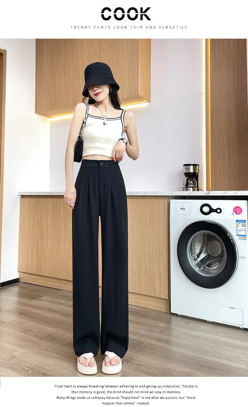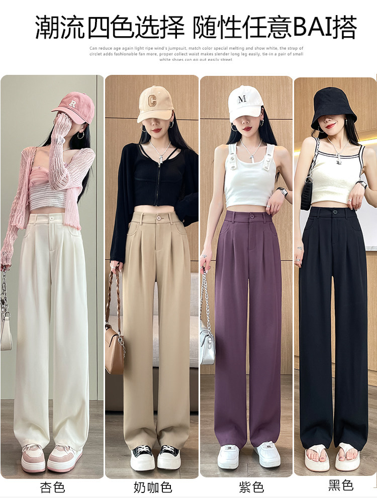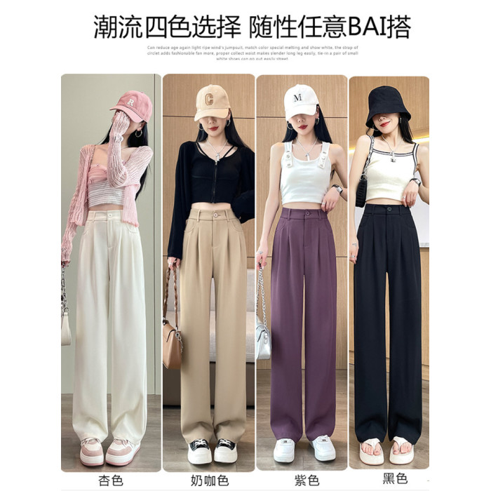 窄版雪紡濶腿褲女夏季薄款大碼胖mm冰絲垂感直筒加長高個子西裝褲