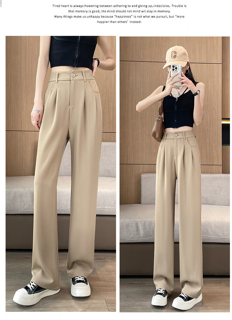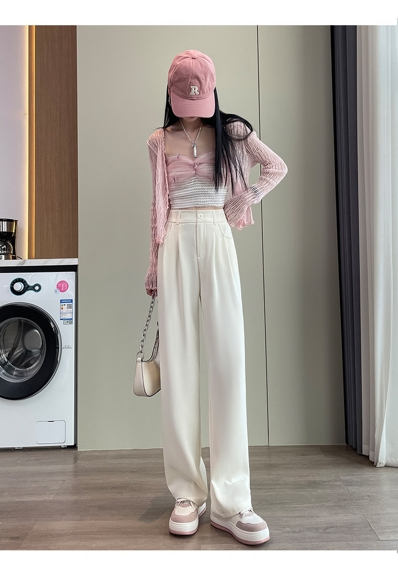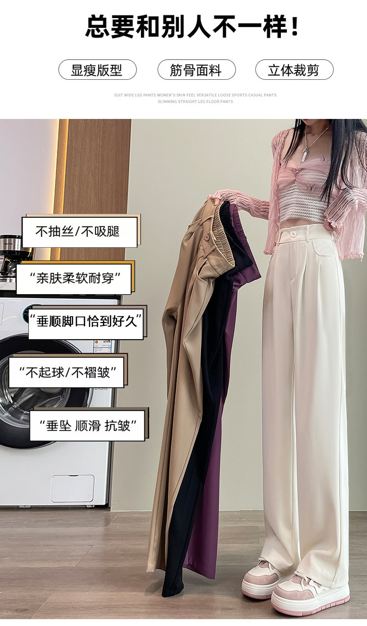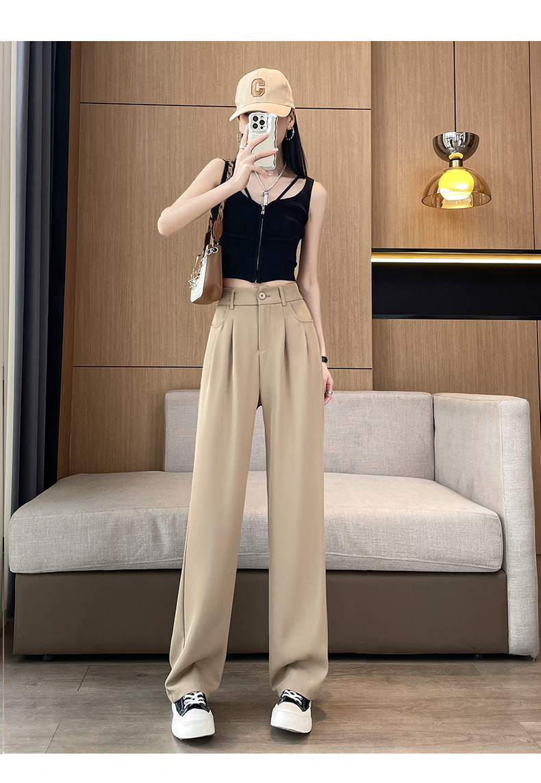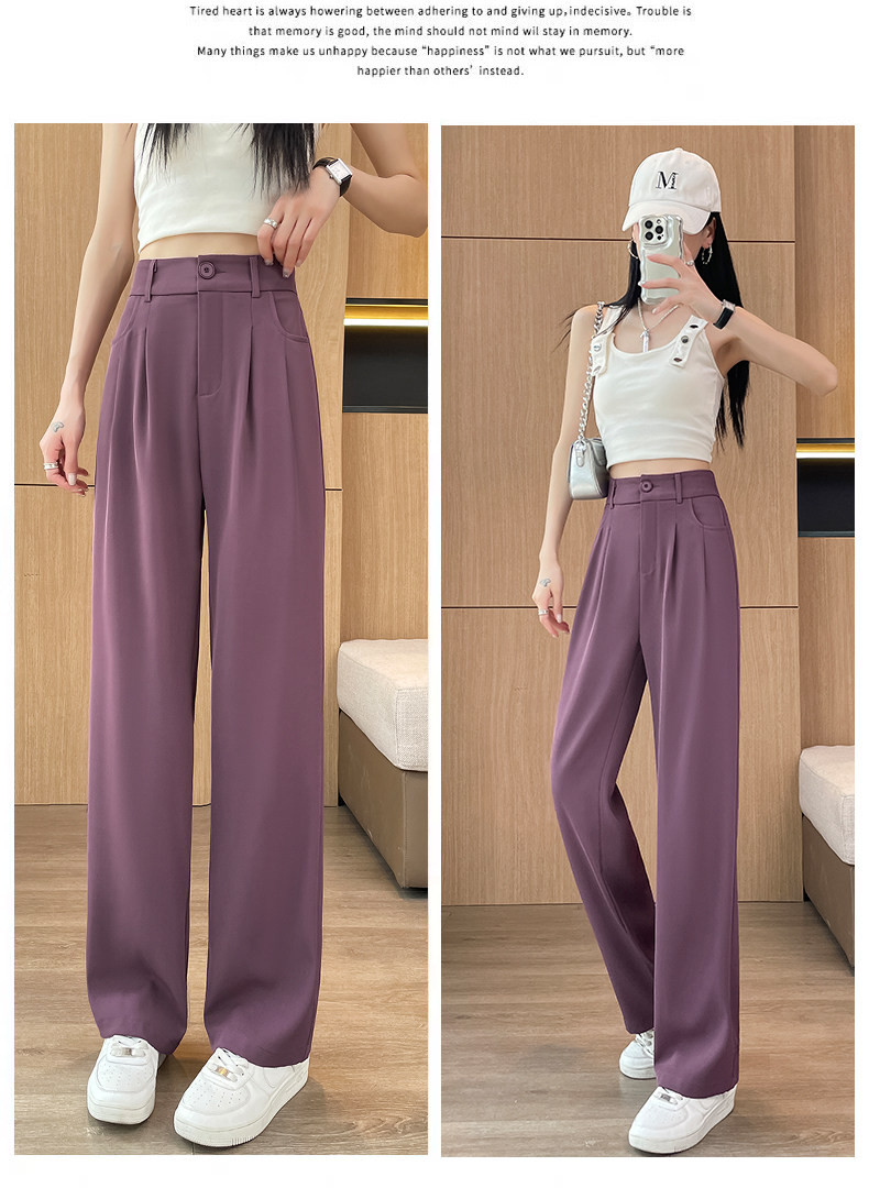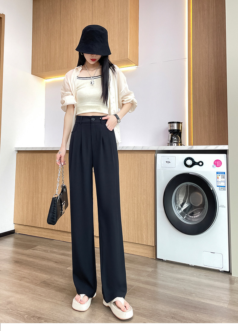 窄版雪紡濶腿褲女夏季薄款大碼胖mm冰絲垂感直筒加長高個子西裝褲
