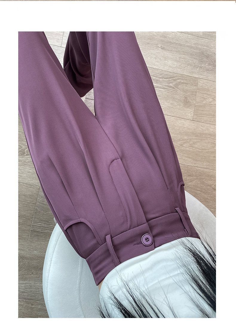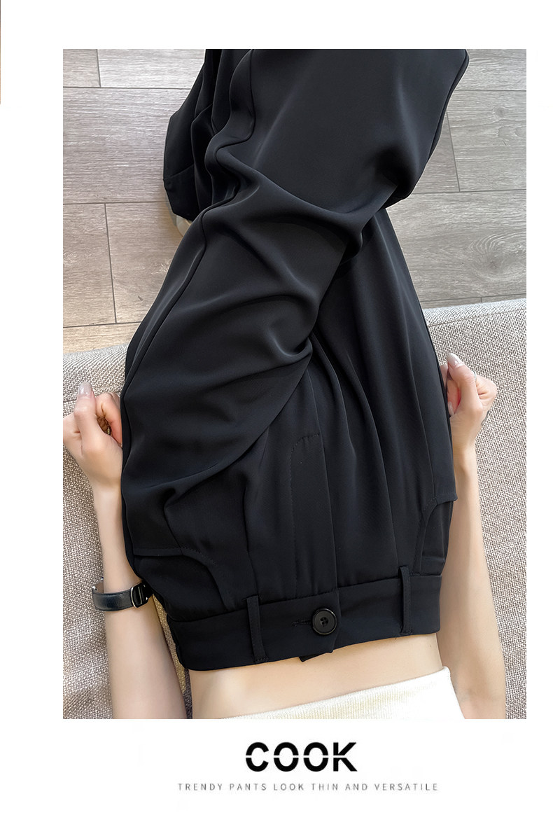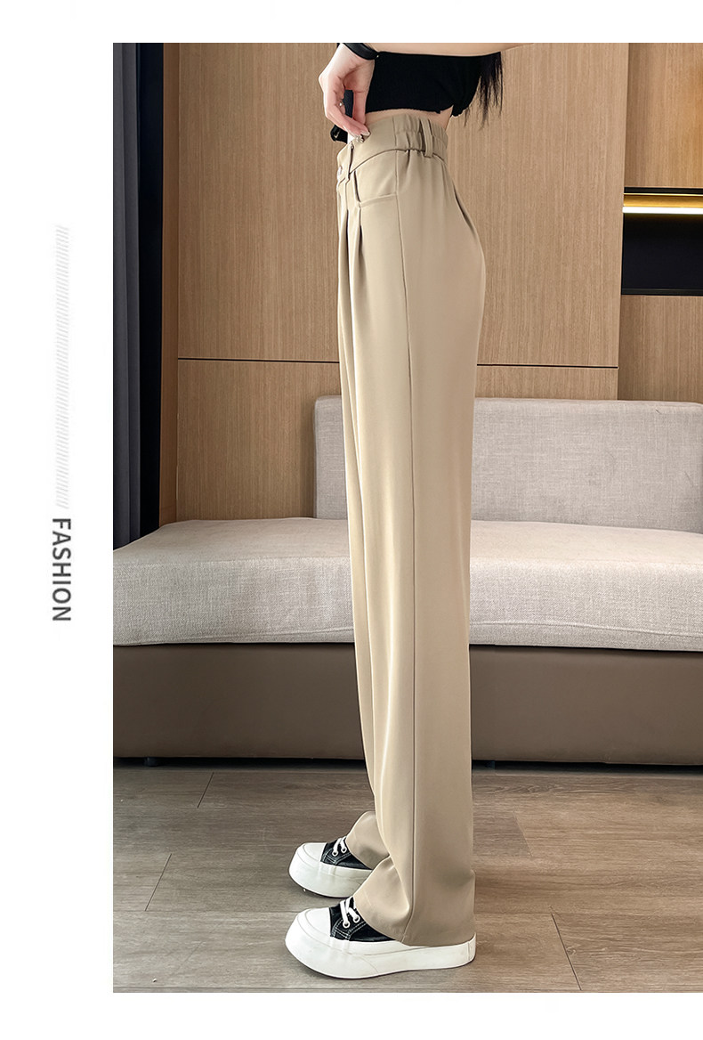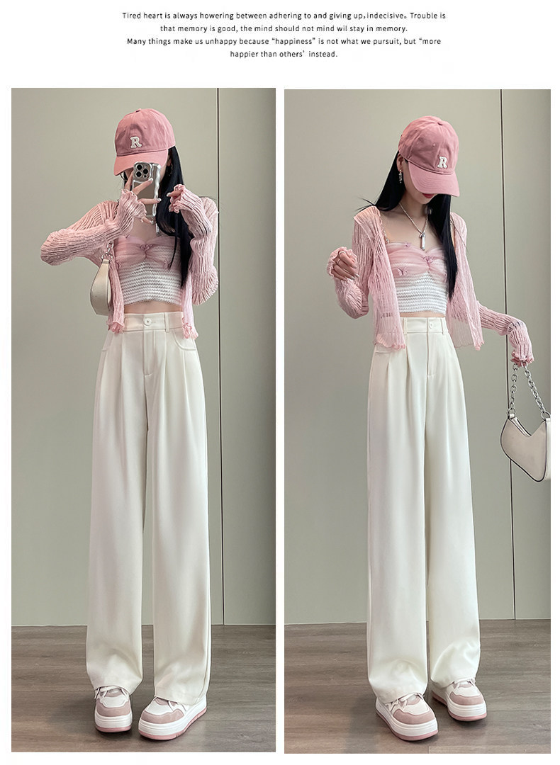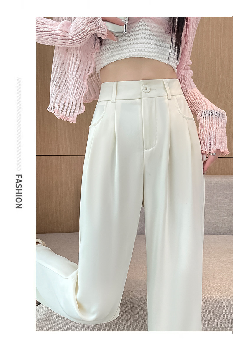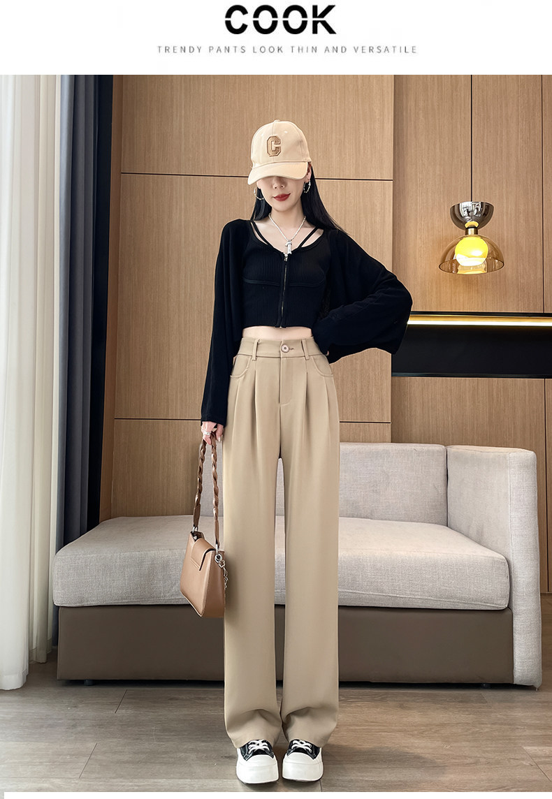 窄版雪紡濶腿褲女夏季薄款大碼胖mm冰絲垂感直筒加長高個子西裝褲