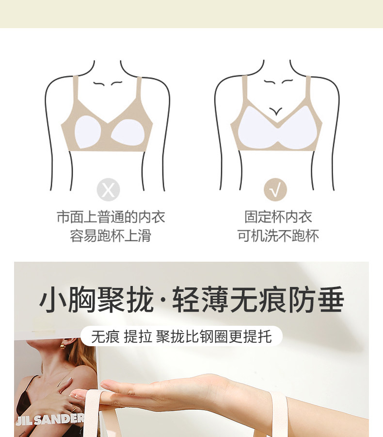 內衣女小胸聚攏軟支撐上托防下垂薄款無鋼圈固定杯無痕文胸罩秋冬