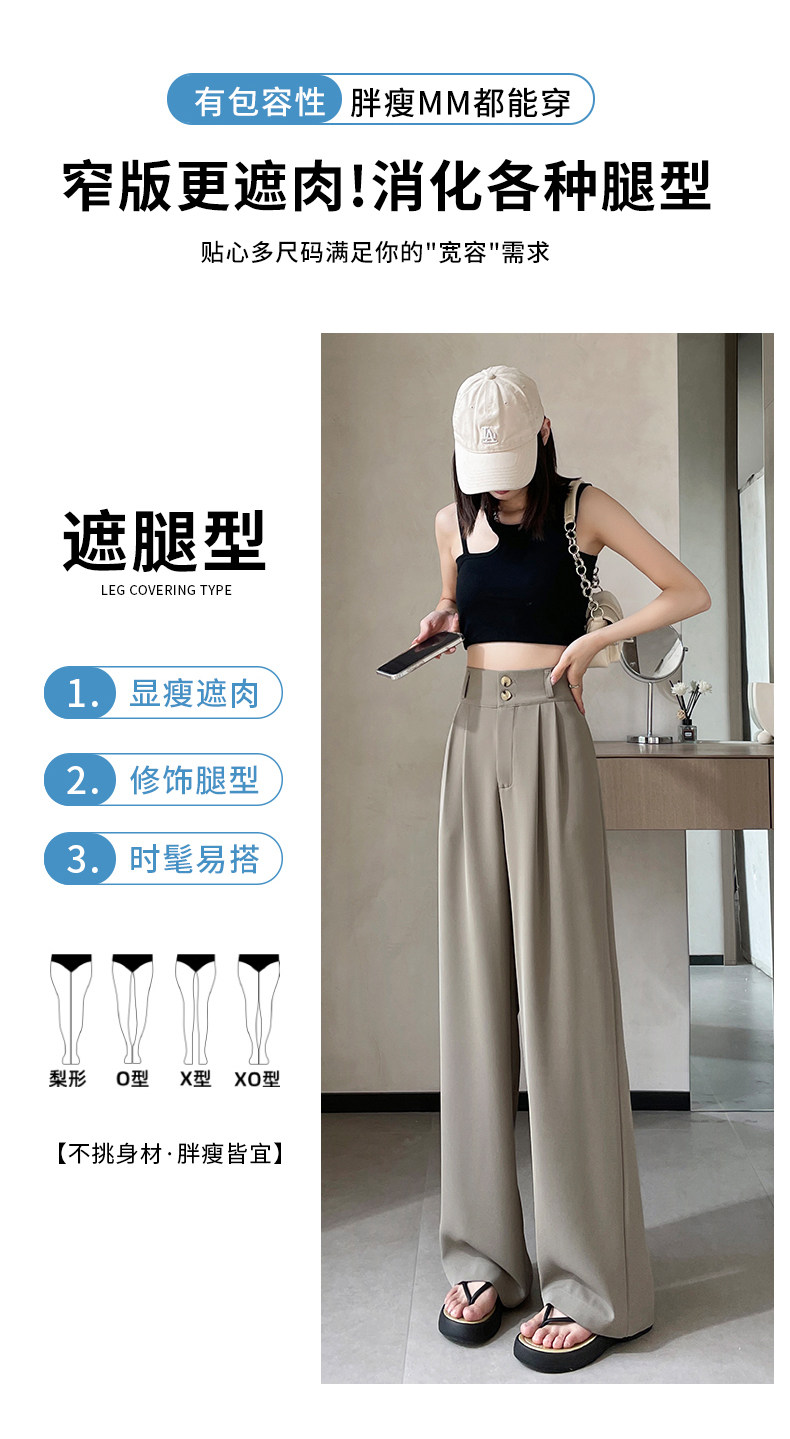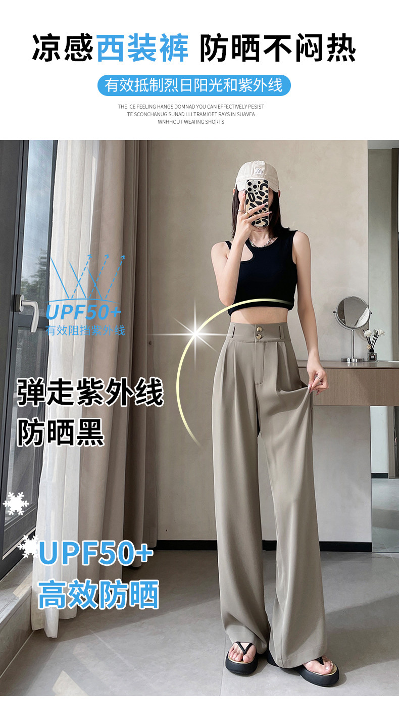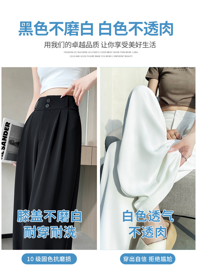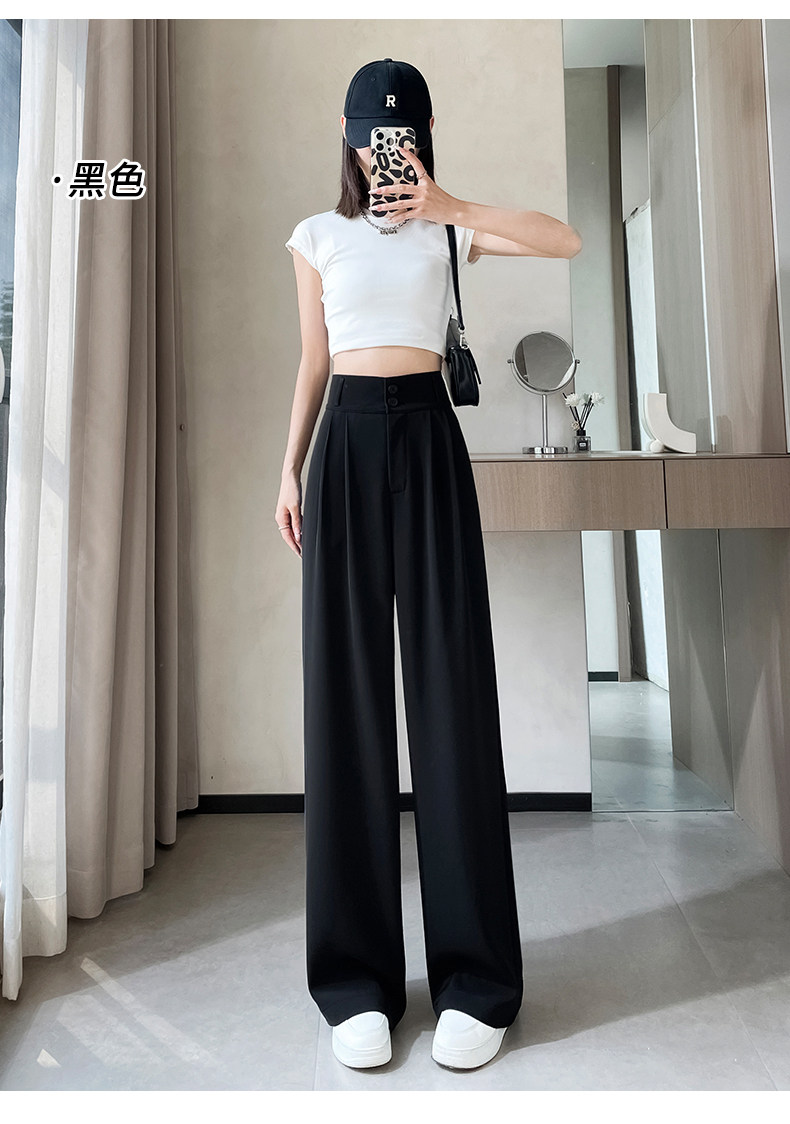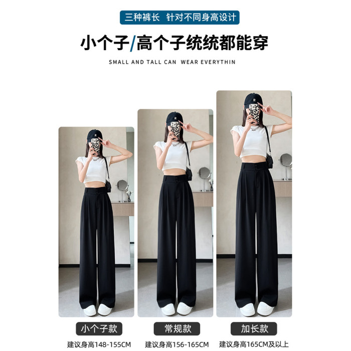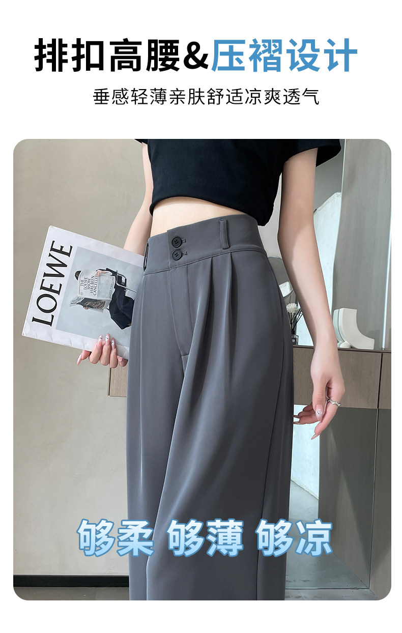 冰絲濶腿褲子女2025新款夏季薄款高級感垂感直筒休閒黑色西裝長褲