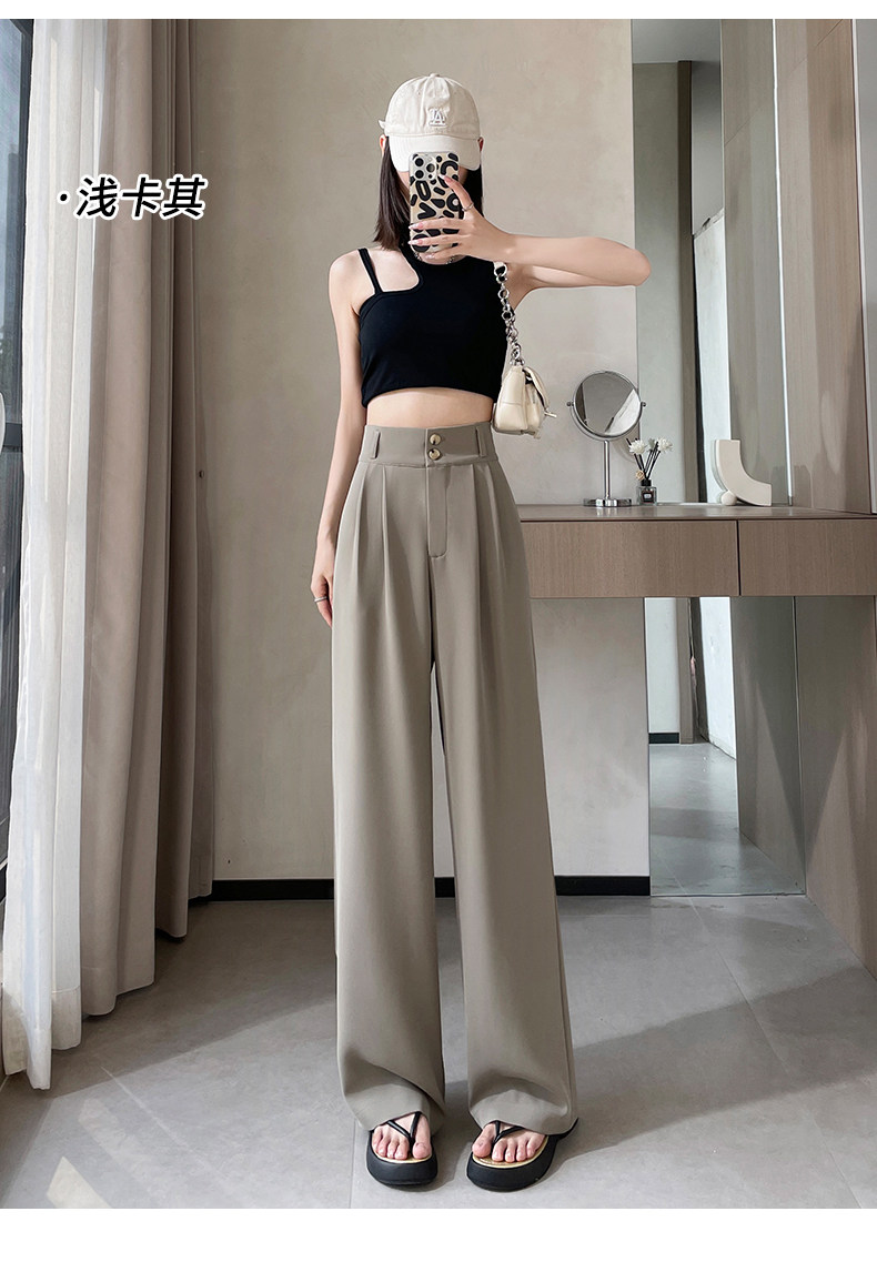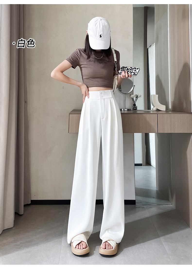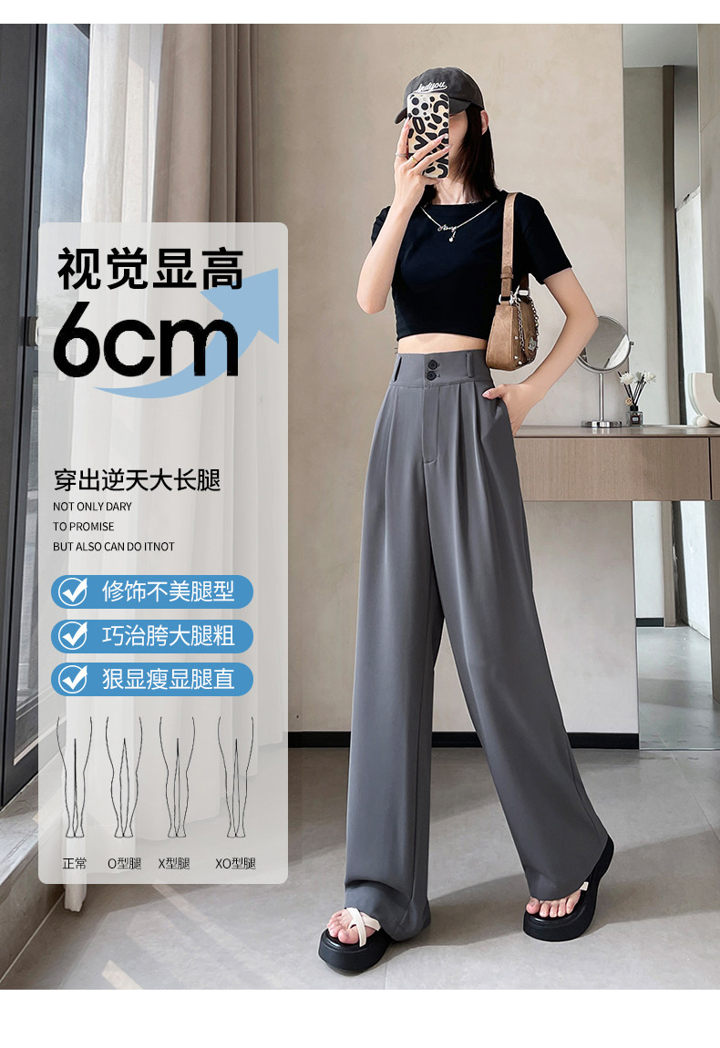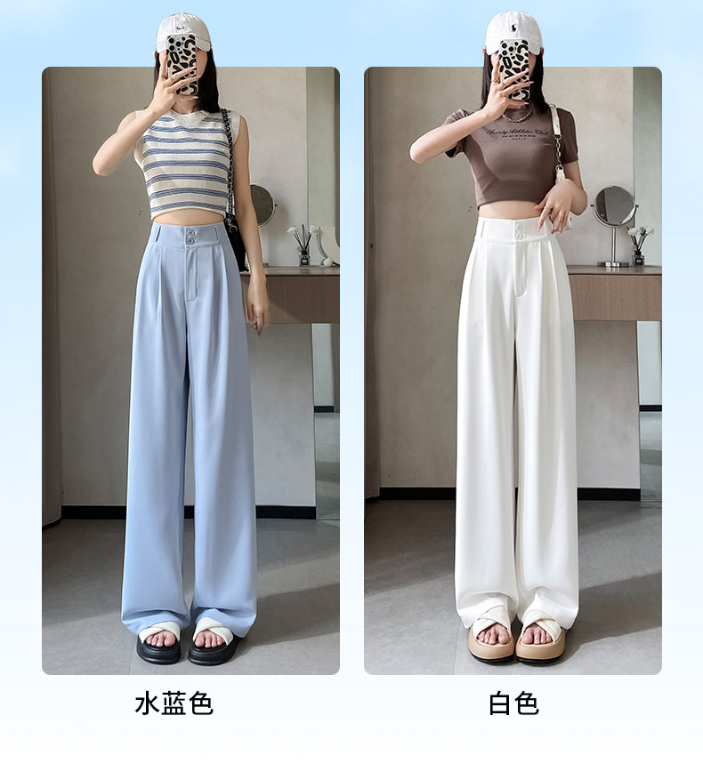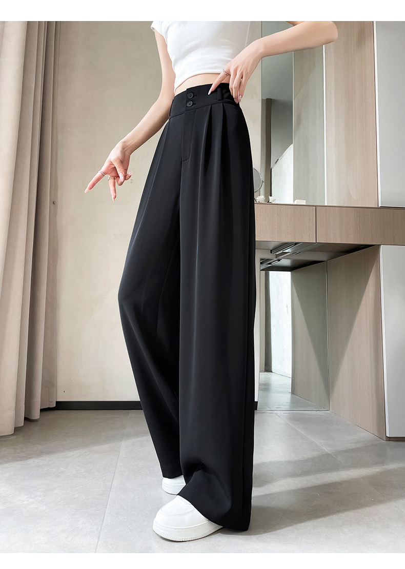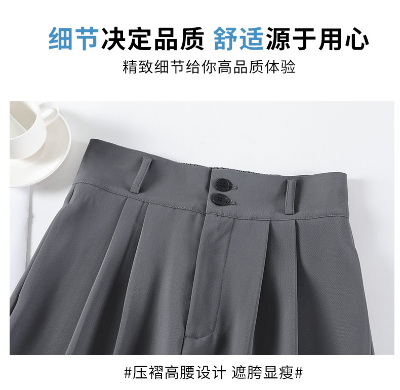 冰絲濶腿褲子女2025新款夏季薄款高級感垂感直筒休閒黑色西裝長褲