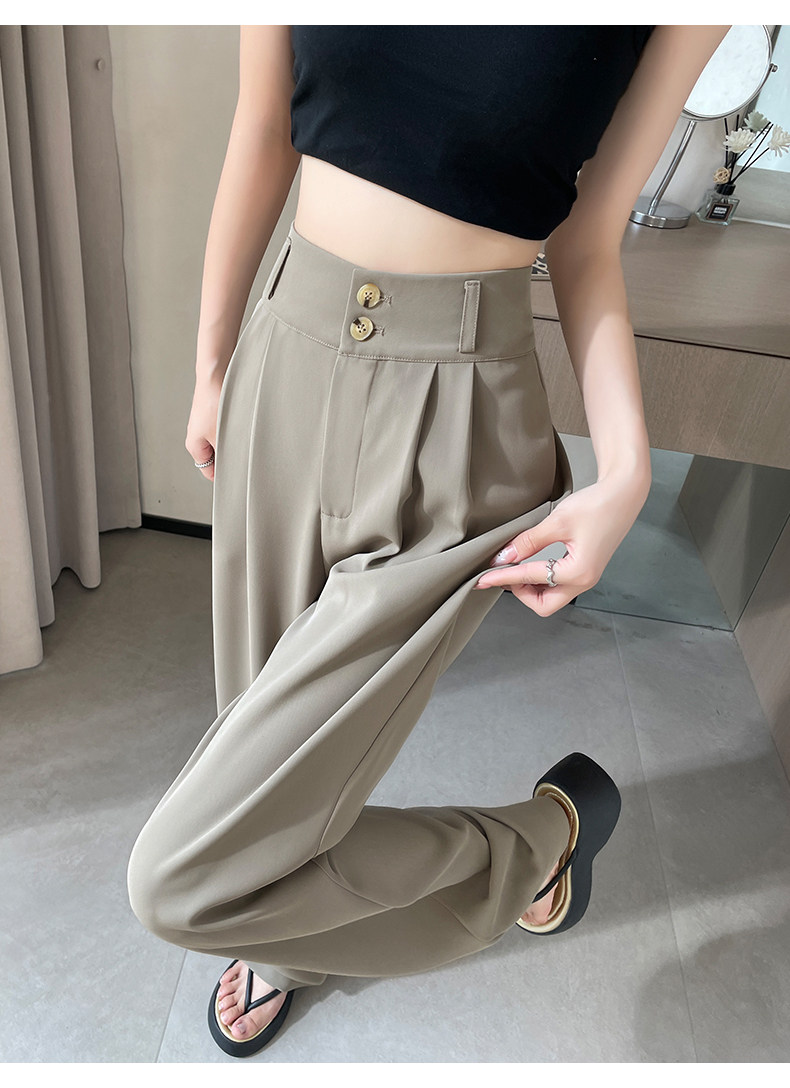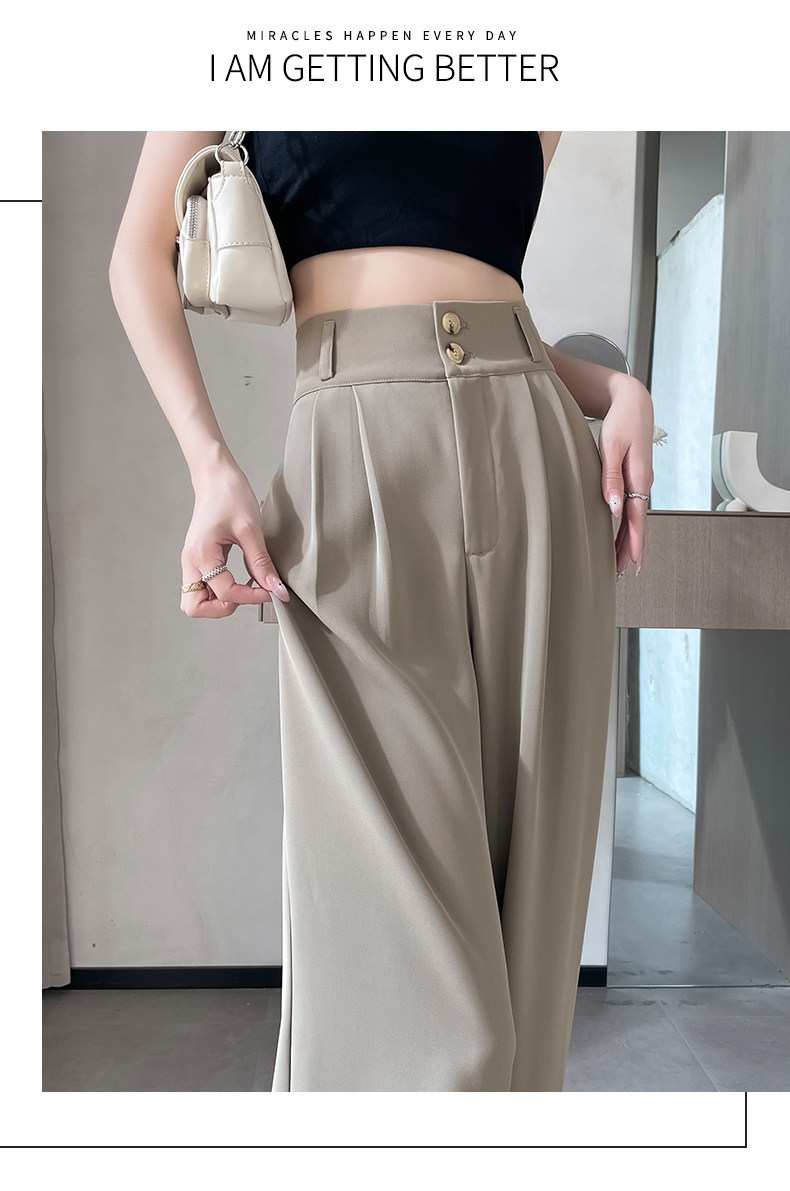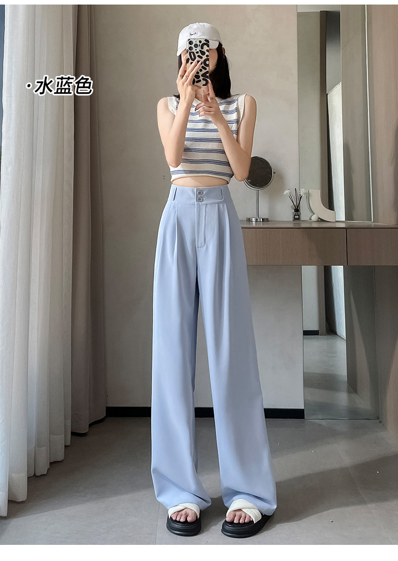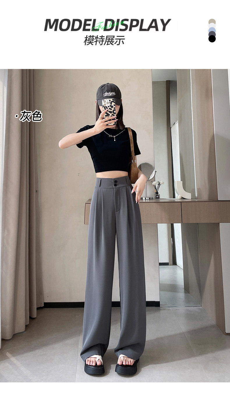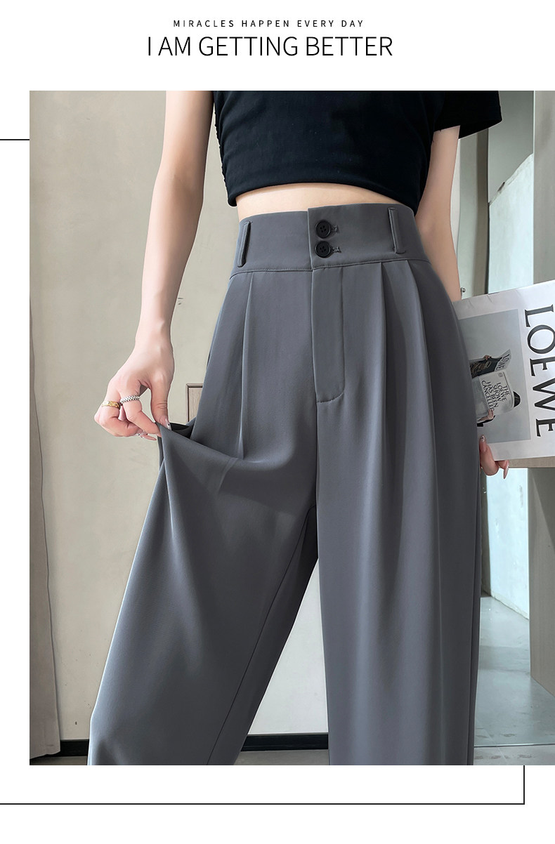 冰絲濶腿褲子女2025新款夏季薄款高級感垂感直筒休閒黑色西裝長褲