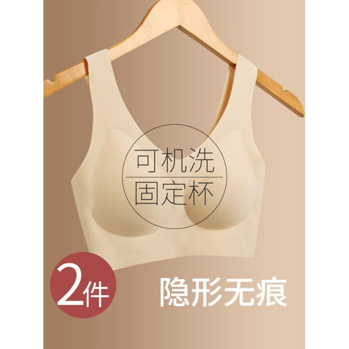 雲朵無痕內衣女一體固定杯美背心式大胸顯小大碼運動文胸四季薄款