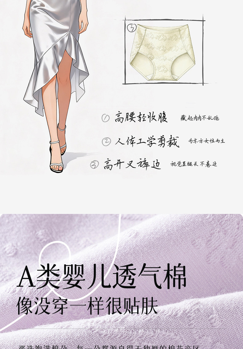 女士高腰內褲純棉無痕10A抗菌加長襠2025新款收腹女生三角內褲