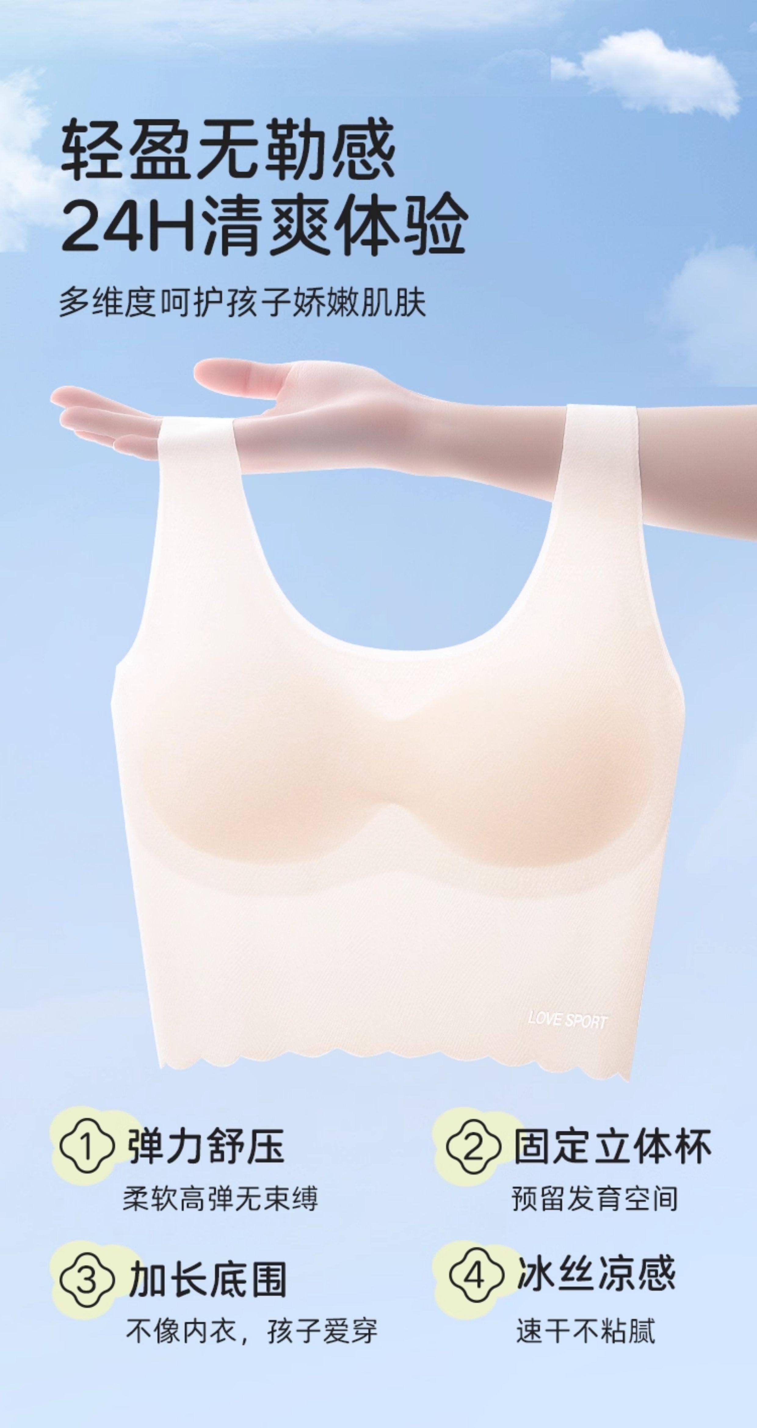 青少年13嵗女孩內衣女學生初高中生冰絲夏薄款青春發育期少女文胸
