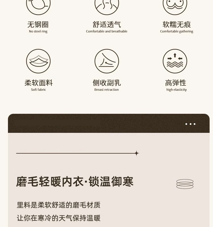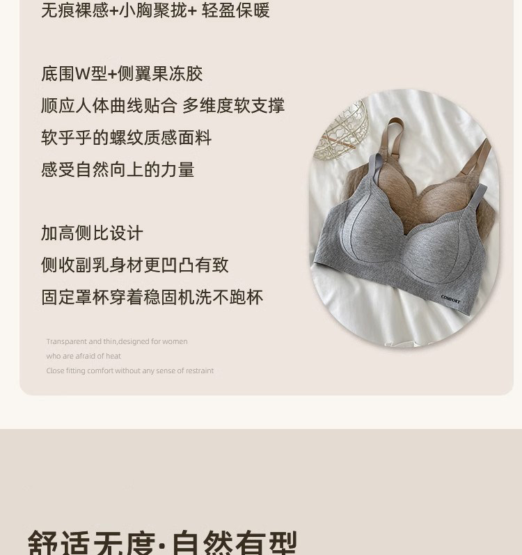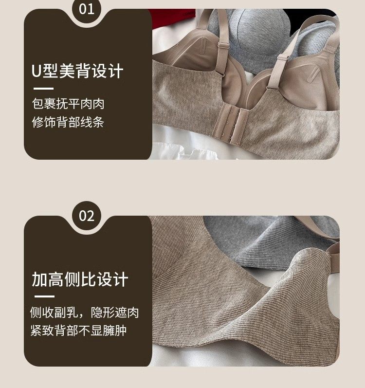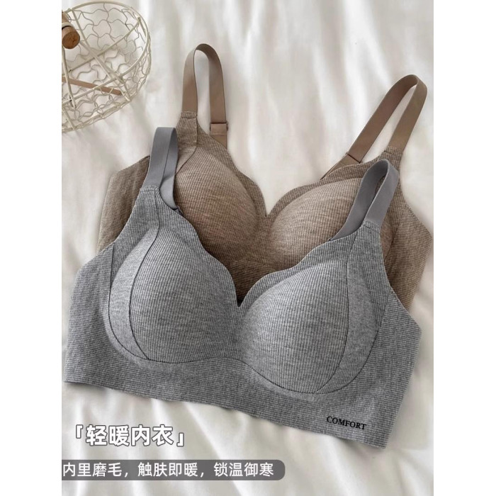 秋冬磨毛無痕舒適內衣女小胸聚攏收副乳防下垂無鋼圈調整型文胸罩