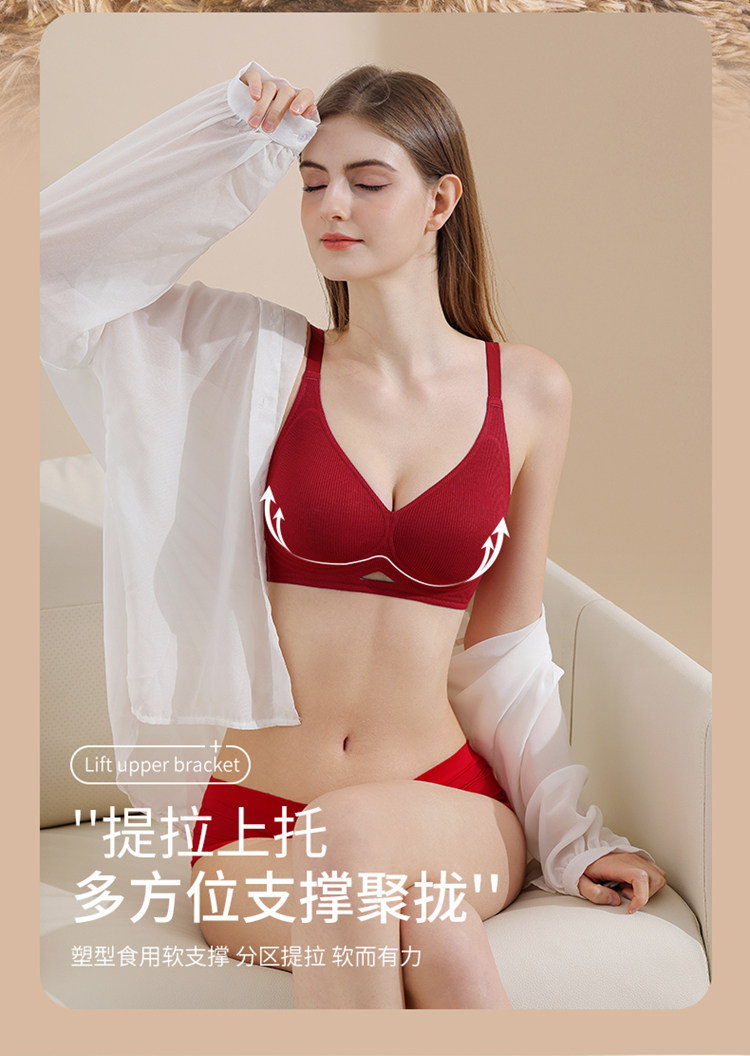 貓人內衣女小胸聚攏提拉上托收副乳防下垂無痕美背文胸無鋼圈胸罩