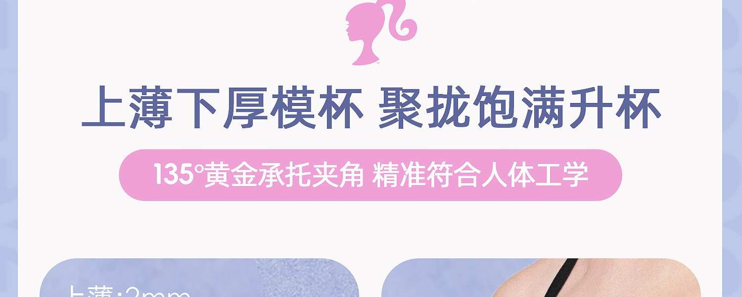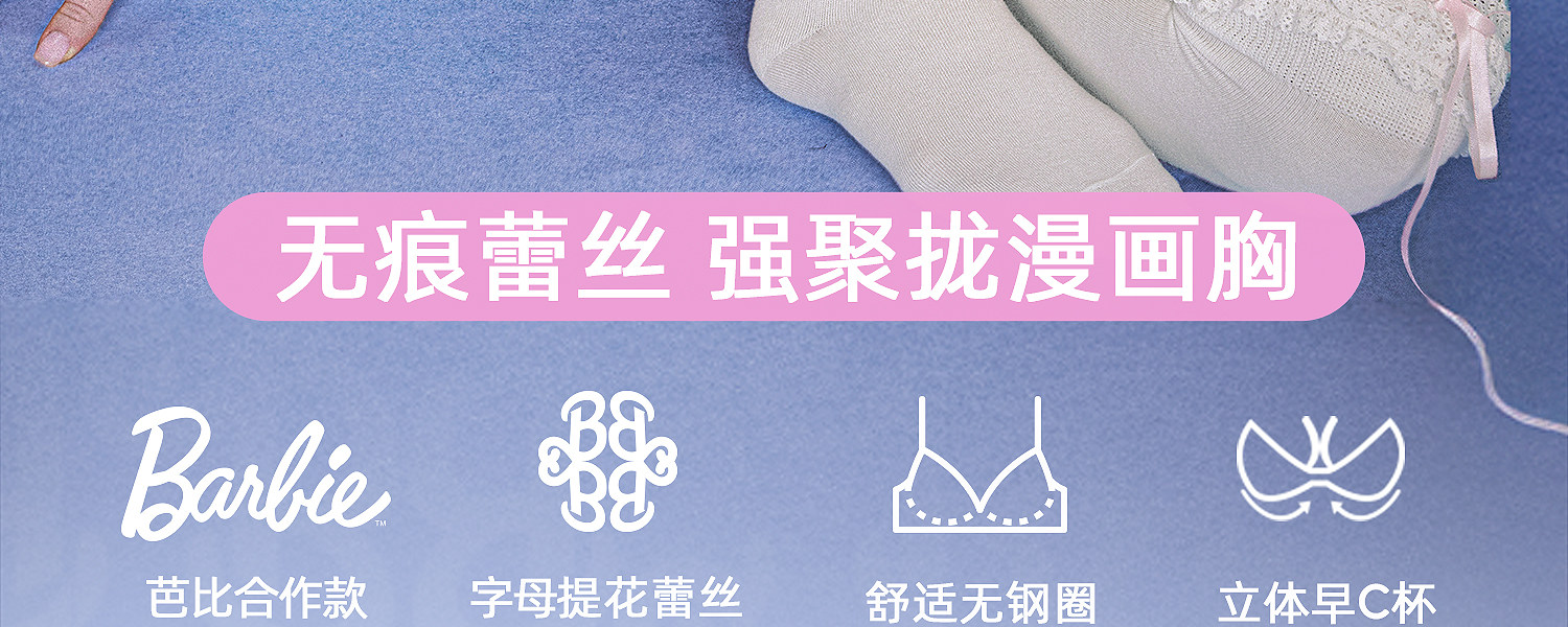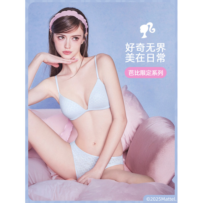 好奇蜜斯芭比聯名內衣女大胸顯小胸薄法式無鋼圈無痕文胸罩套裝夏