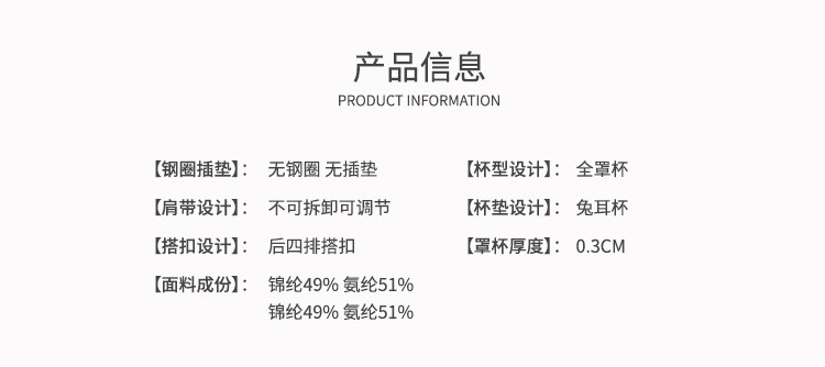 | 罩杯款式 | 兔耳杯 |