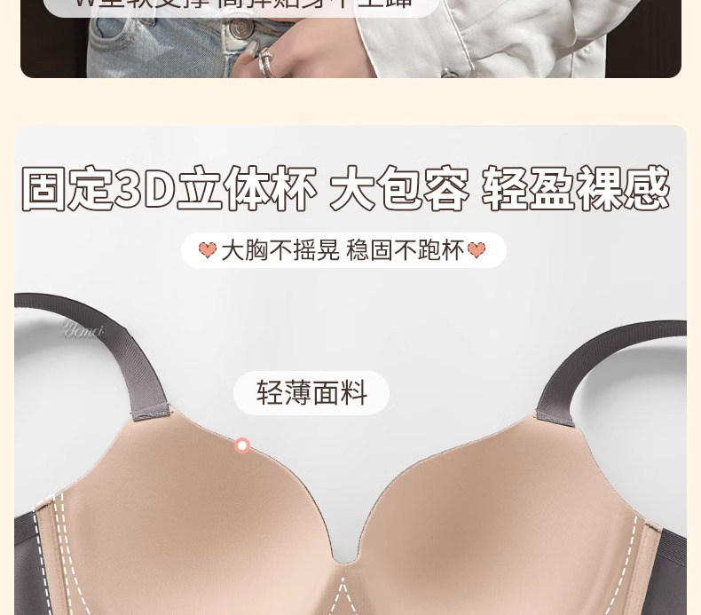薄款內衣女大胸顯小胸大碼無痕軟鋼圈聚攏收副乳防下垂胖mm文胸罩