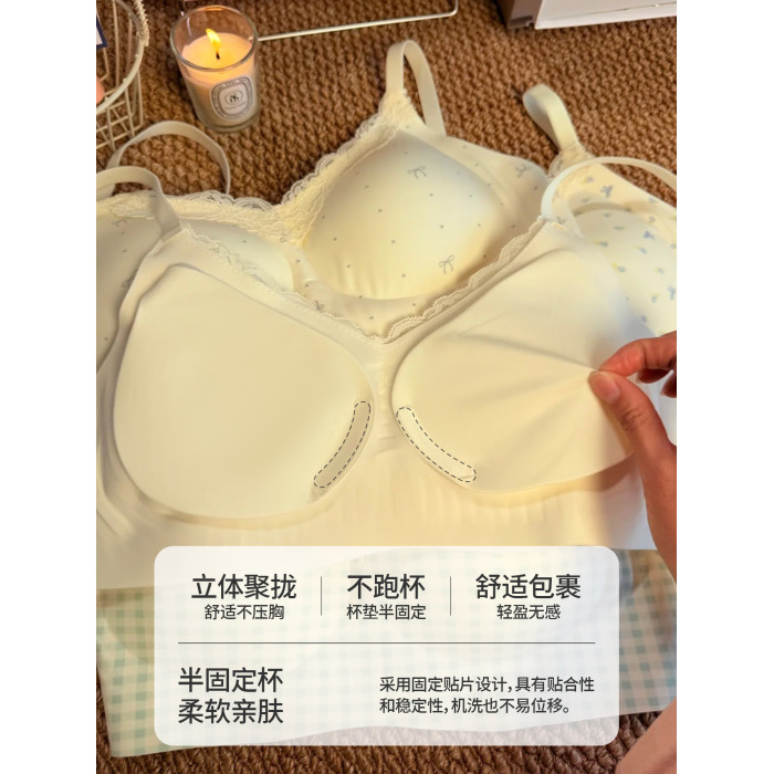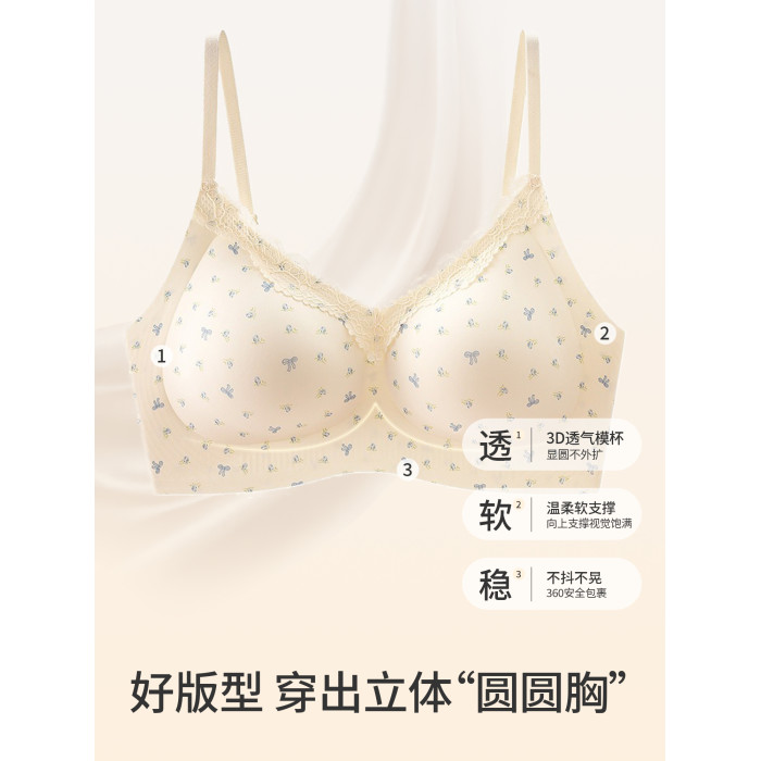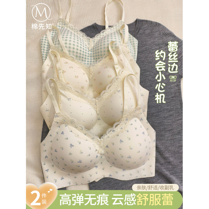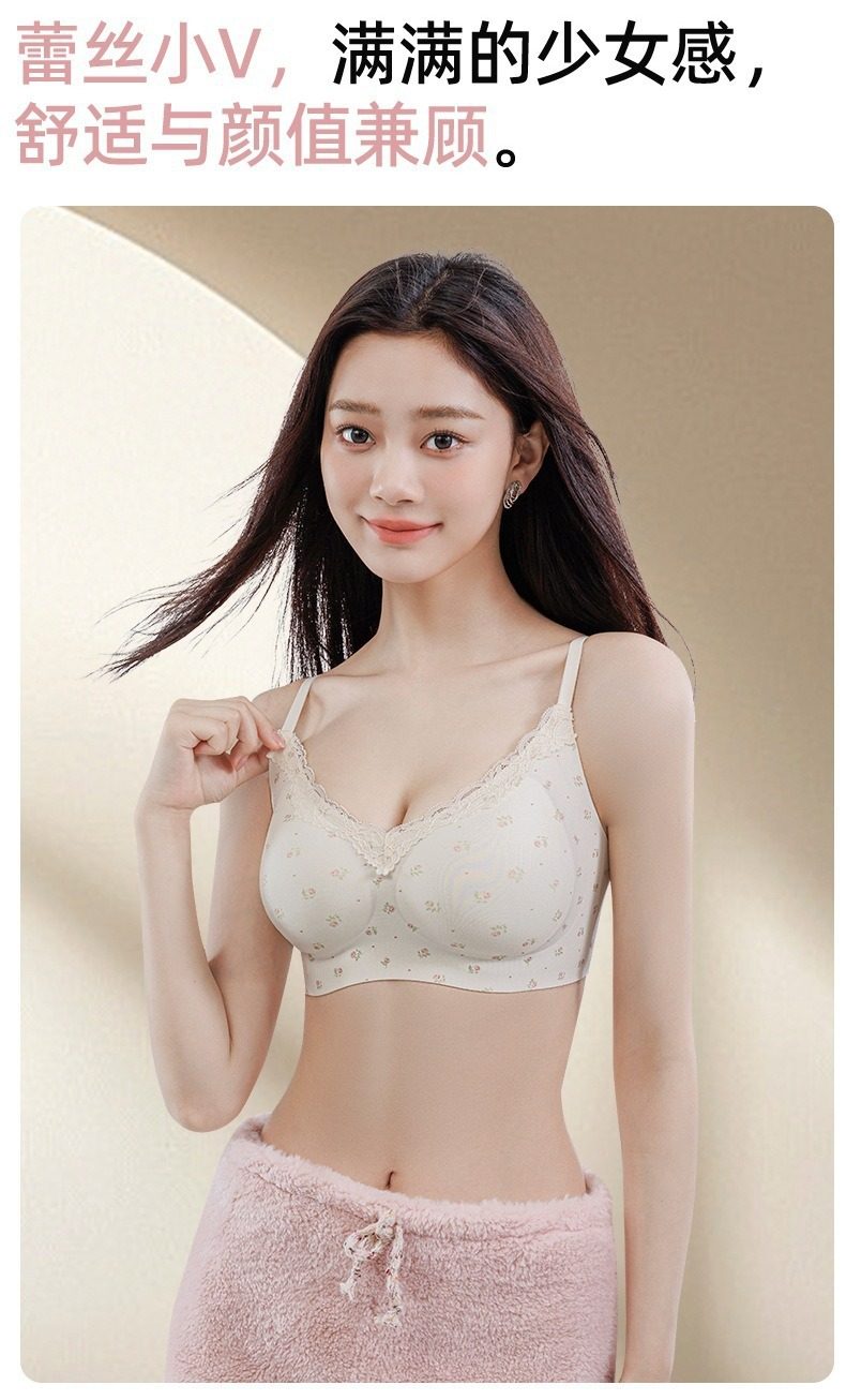 法式蕾絲無痕內衣女小胸顯大無鋼圈胸罩收副乳防下垂少女聚攏文胸