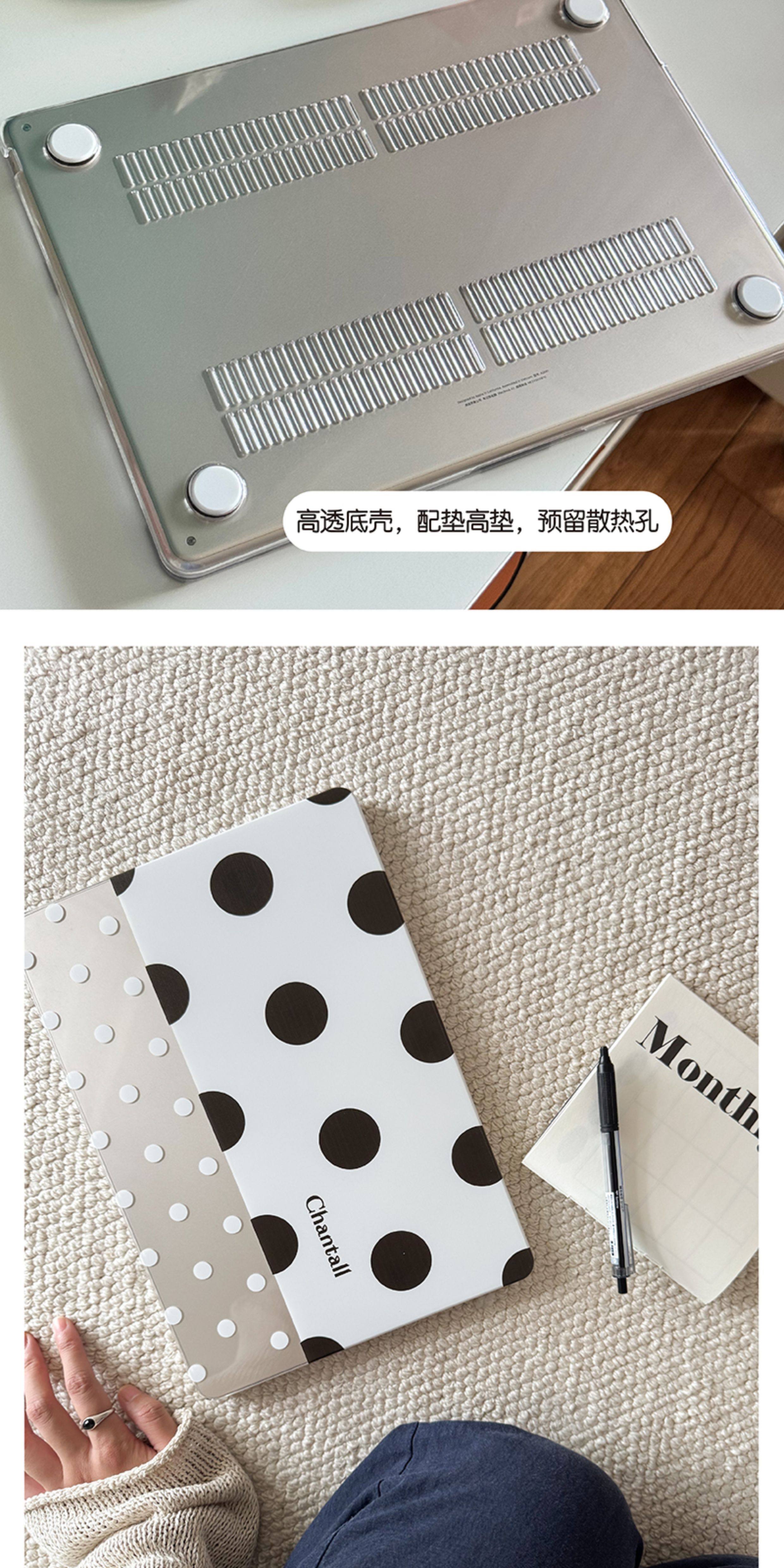 Chantall【黑白波點】蘋果Macbook電腦保護殼 13寸air外殼簡約時髦14寸防劃保護套m4 pro16寸ins風防刮保護殼