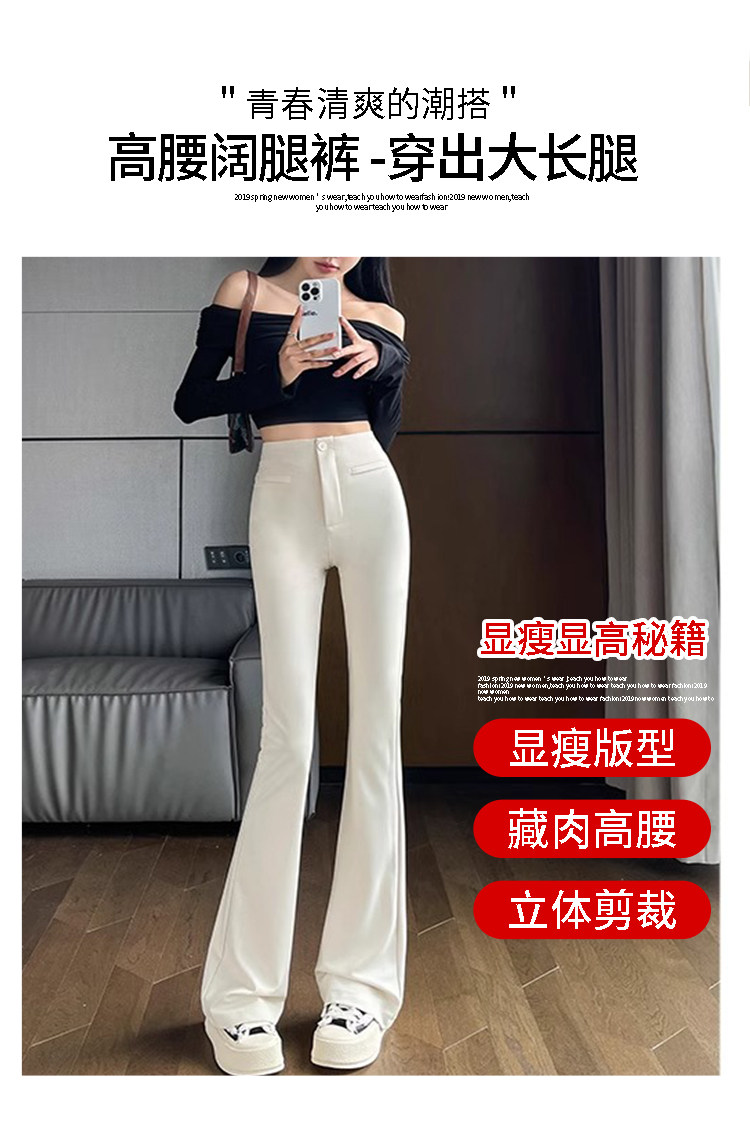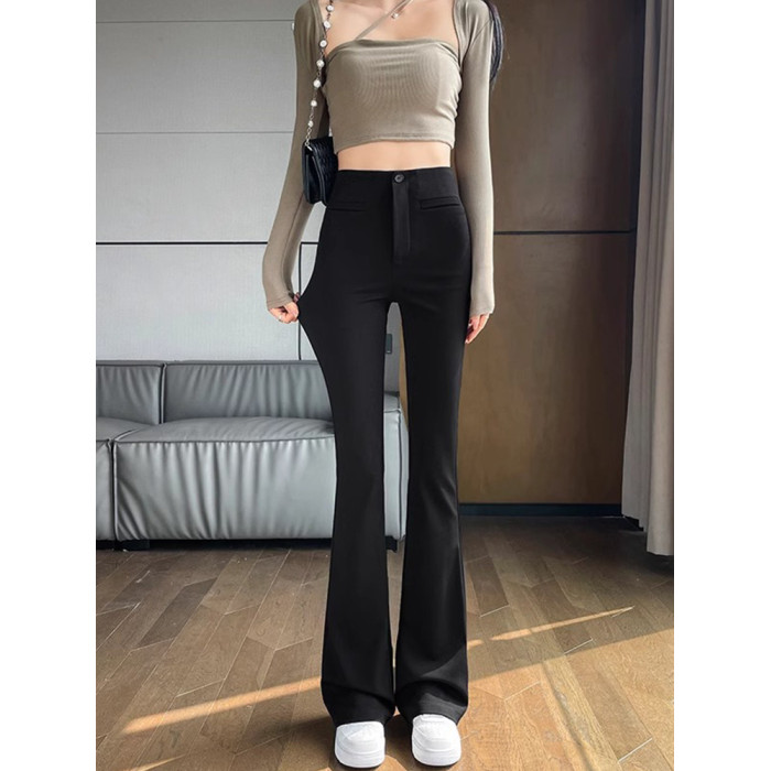 黑色西裝褲微喇叭褲女春秋小個子2025新款高腰垂感彈力馬蹄褲子