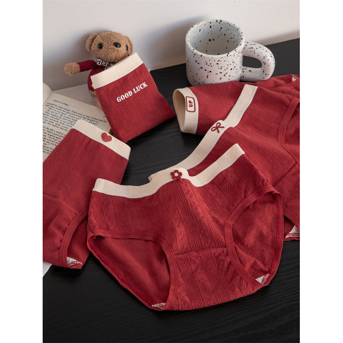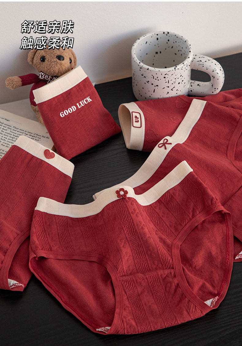 本命年紅色內褲女純棉7A抗菌全棉檔馬年新款少女中腰舒適三角褲頭