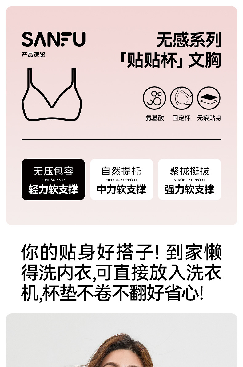 三福中薄杯無鋼圈文胸 無痕無感舒適氨基酸軟支撐聚攏內衣