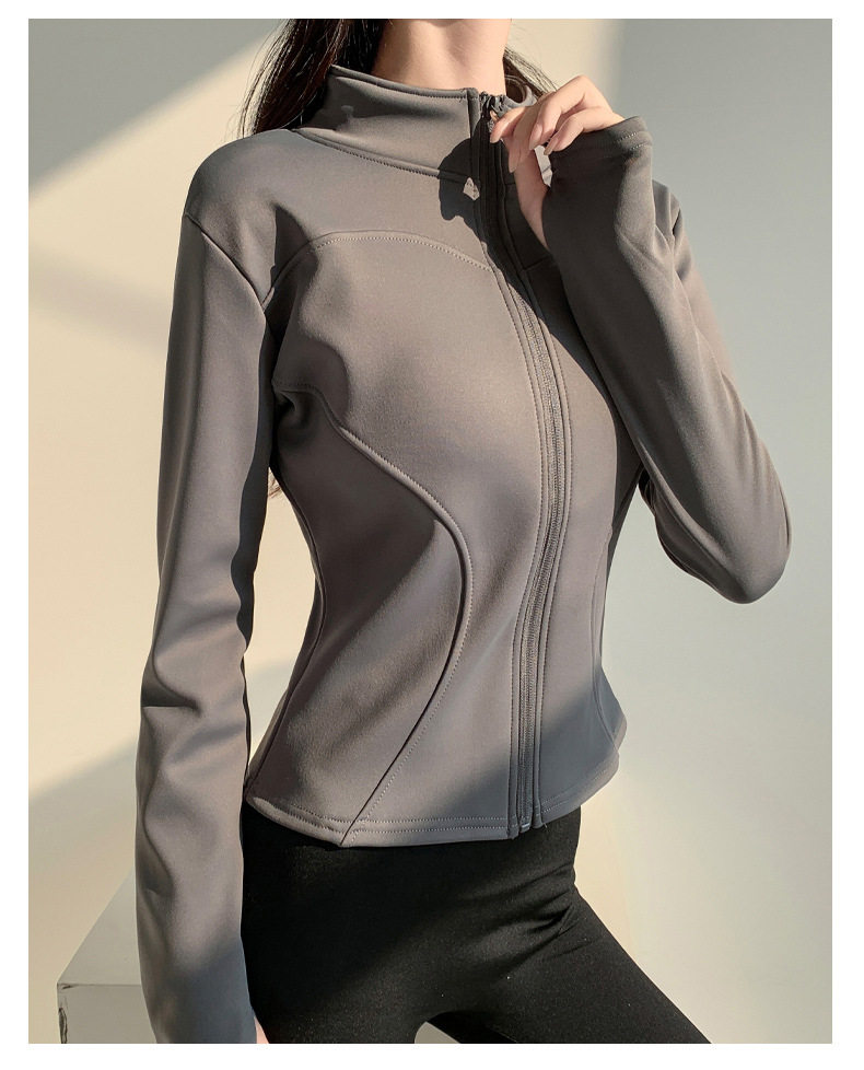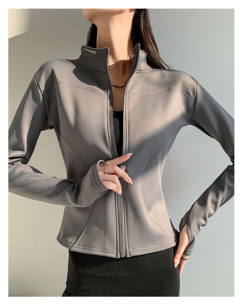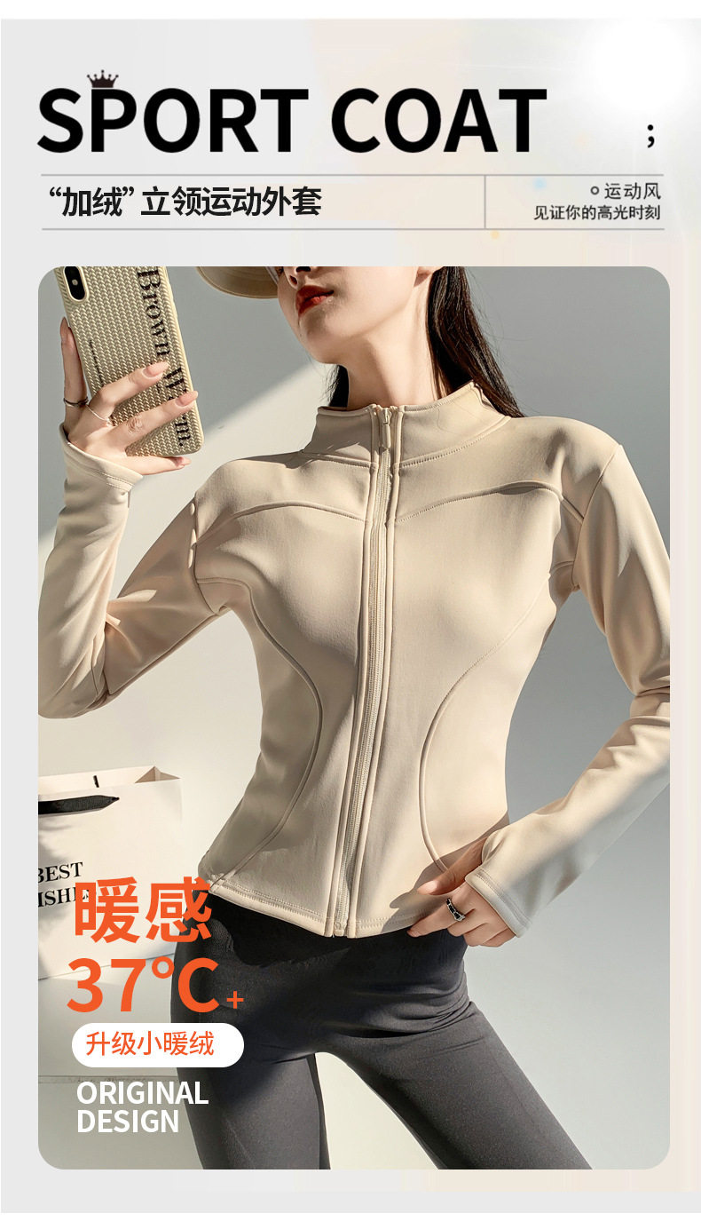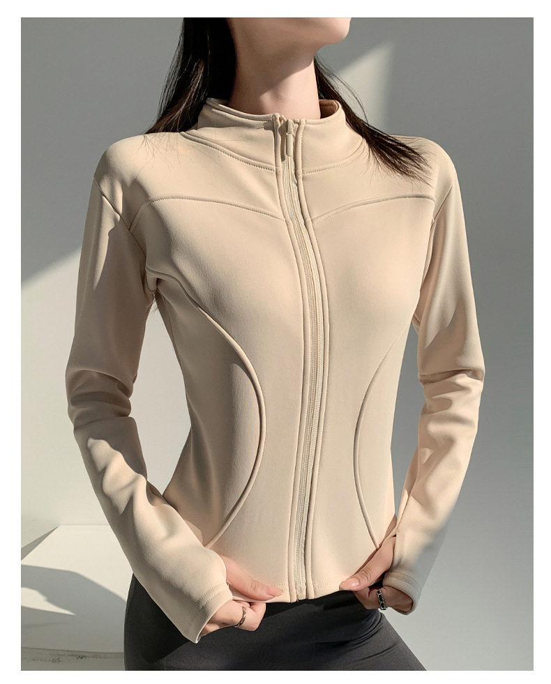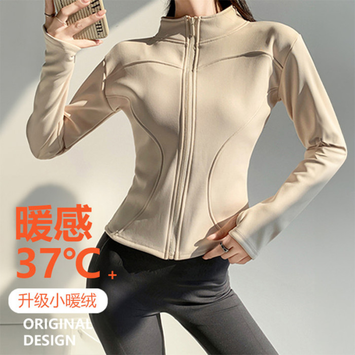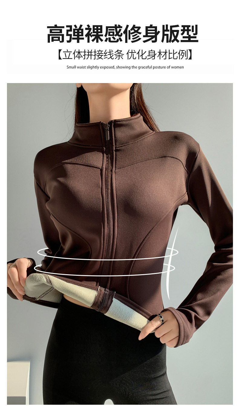 瑜珈外套女秋冬加絨立領晨跑步運動緊身上衣大碼時尚健身拉鍊長袖