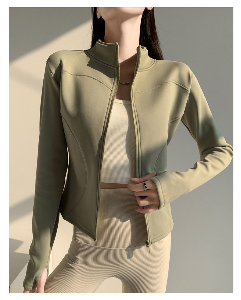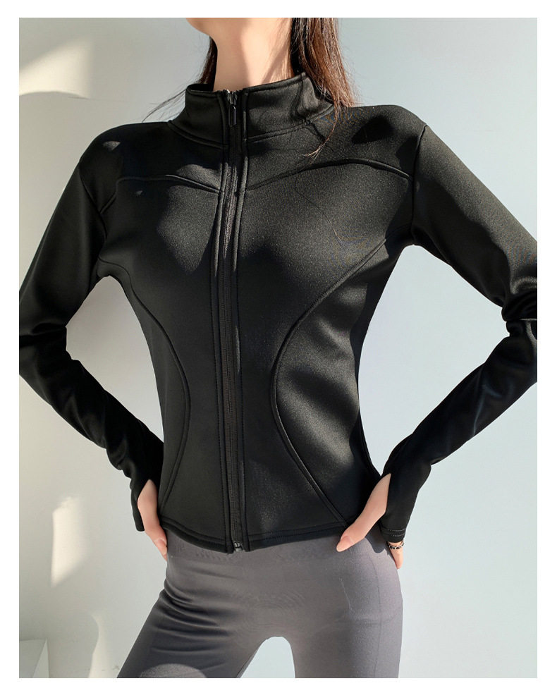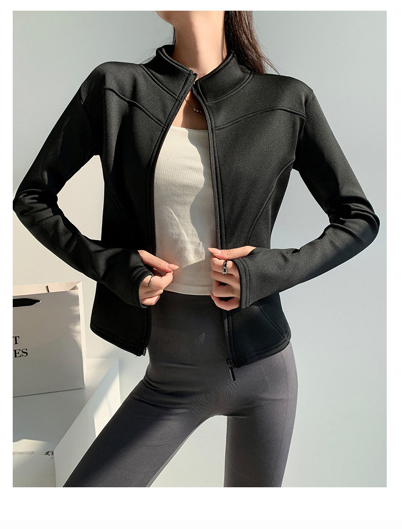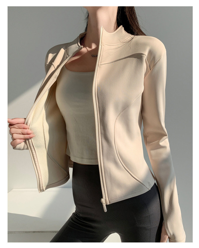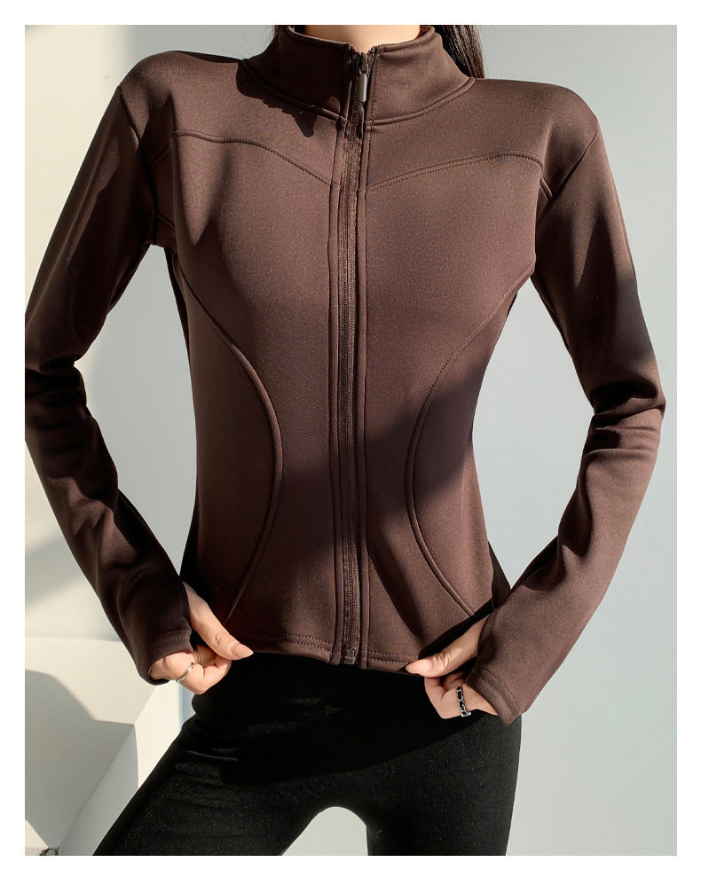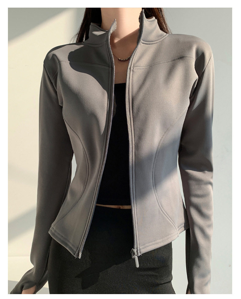 瑜珈外套女秋冬加絨立領晨跑步運動緊身上衣大碼時尚健身拉鍊長袖