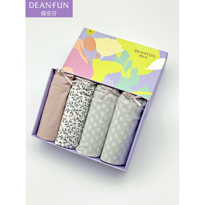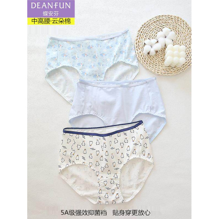 蝶安芬純棉質內褲女印花舒適透氣碎花中高腰女士平角內褲13118