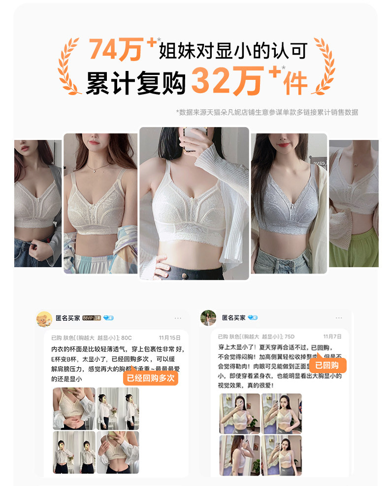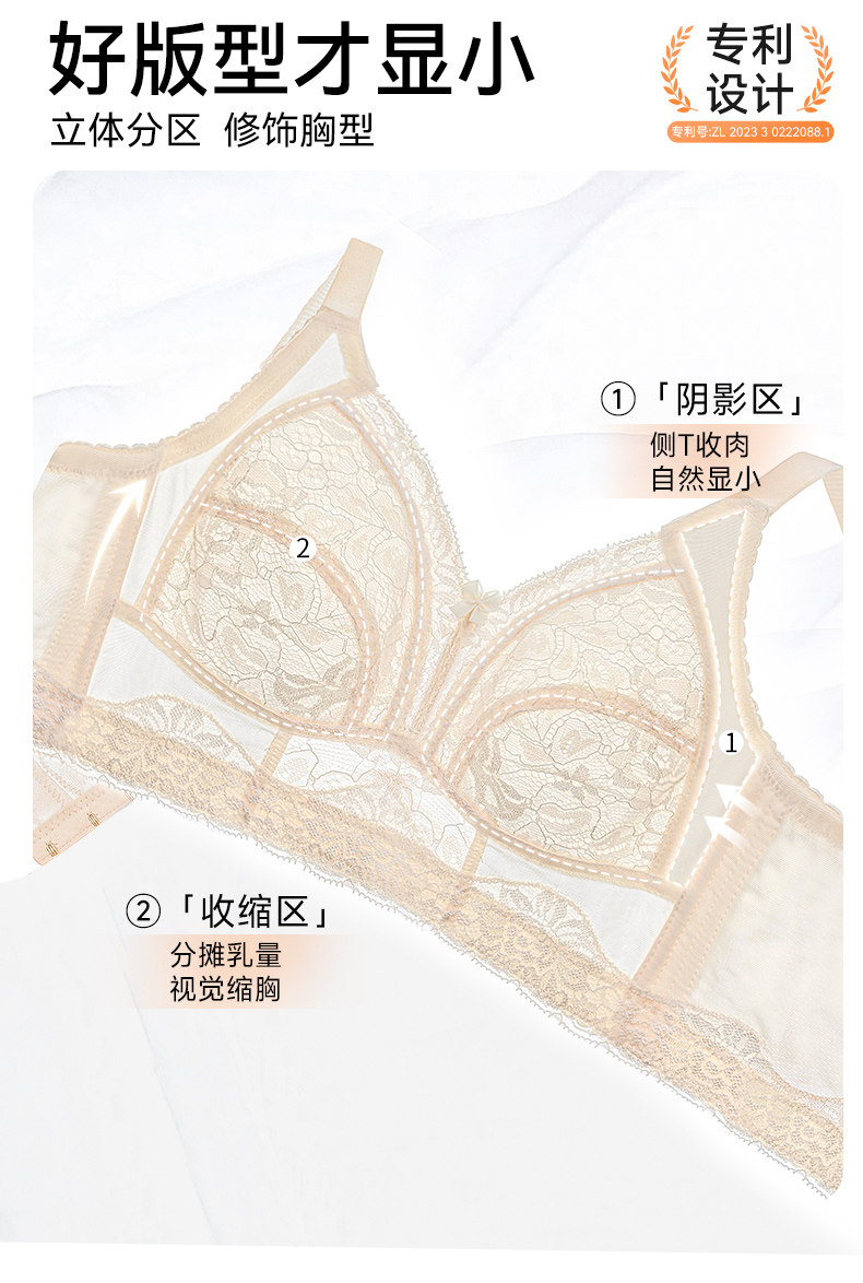 朵凡妮大胸顯小文胸薄款內衣女無鋼圈聚攏上托防下垂超薄全罩杯夏
