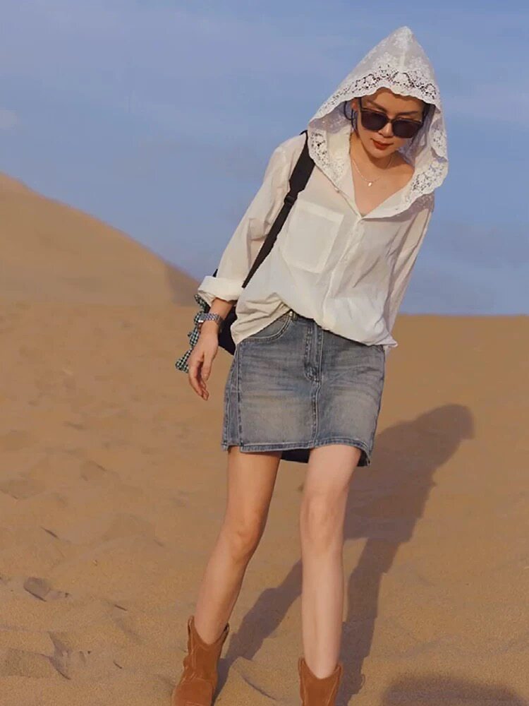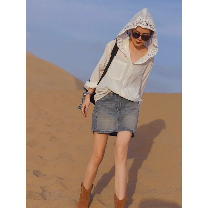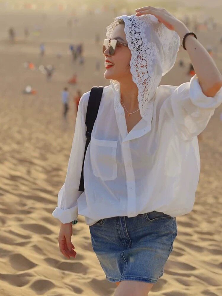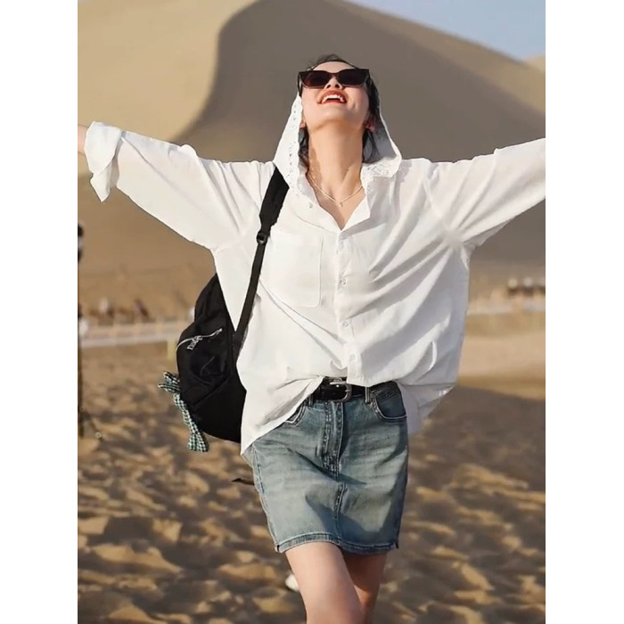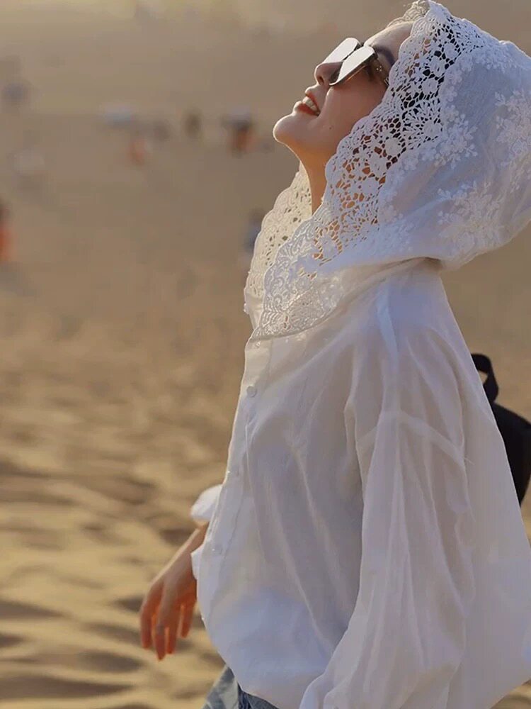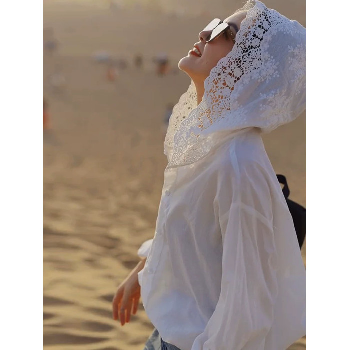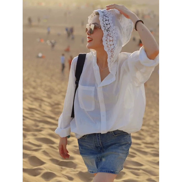 法式鏤空鉤花連帽長袖防曬衫女夏天寬鬆時尚氣質襯衣薄款洋氣上衣