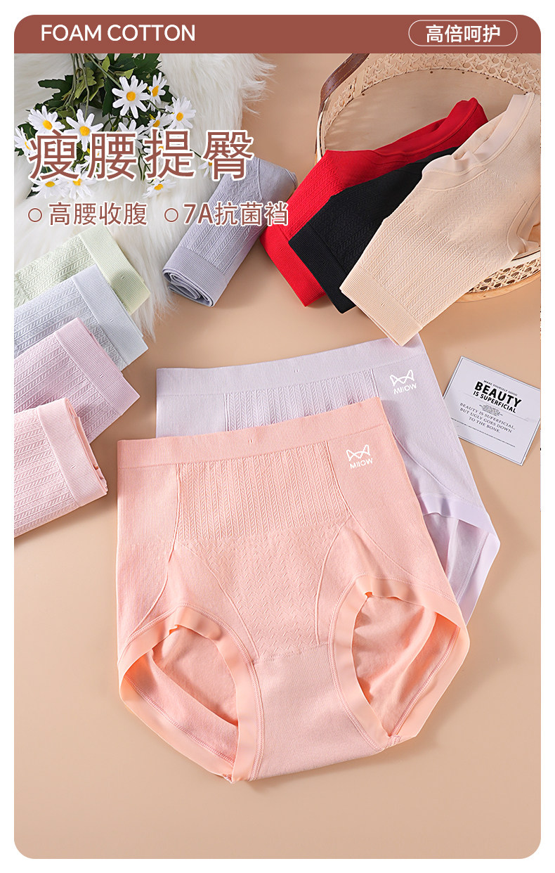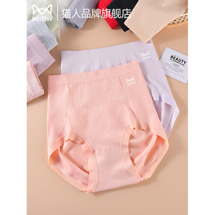貓人高腰內褲女士純棉抗菌襠收腹小肚子提臀大碼包臀顯腰線平角褲