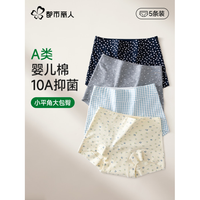 都市麗人內褲女純棉抗菌全棉加長襠無痕女生大碼胖MM四角平角短褲