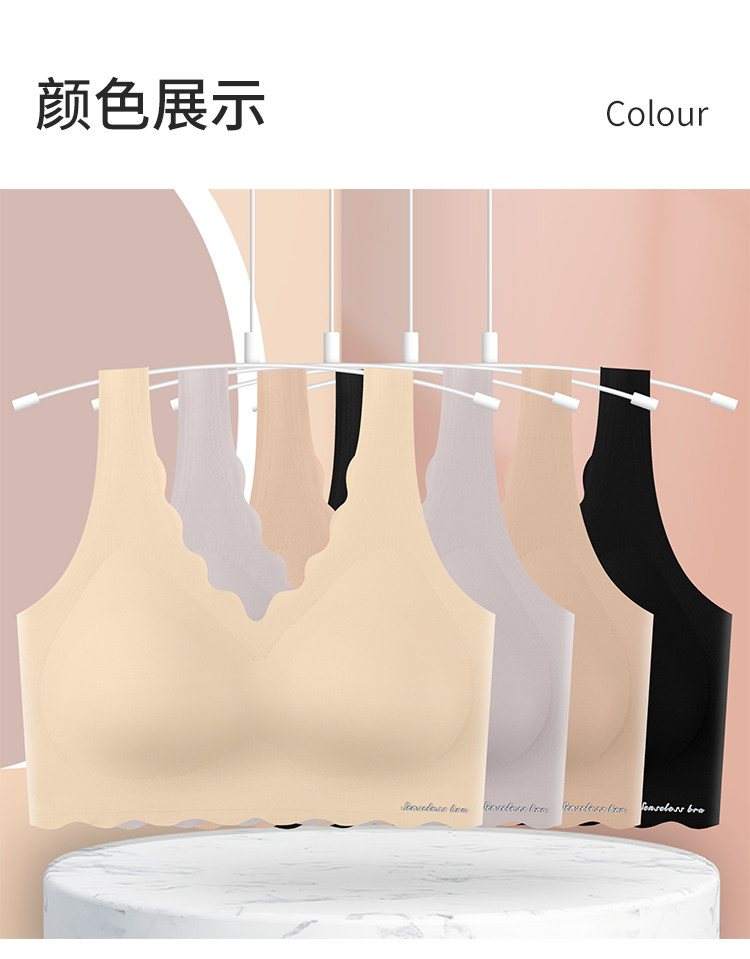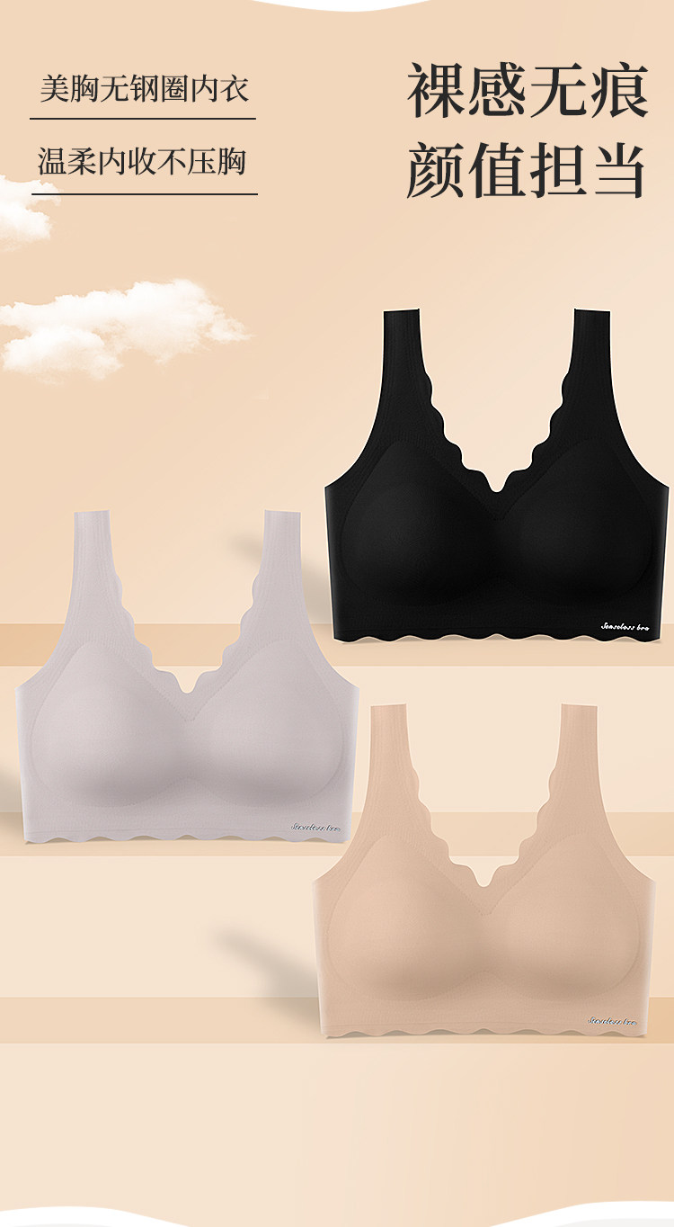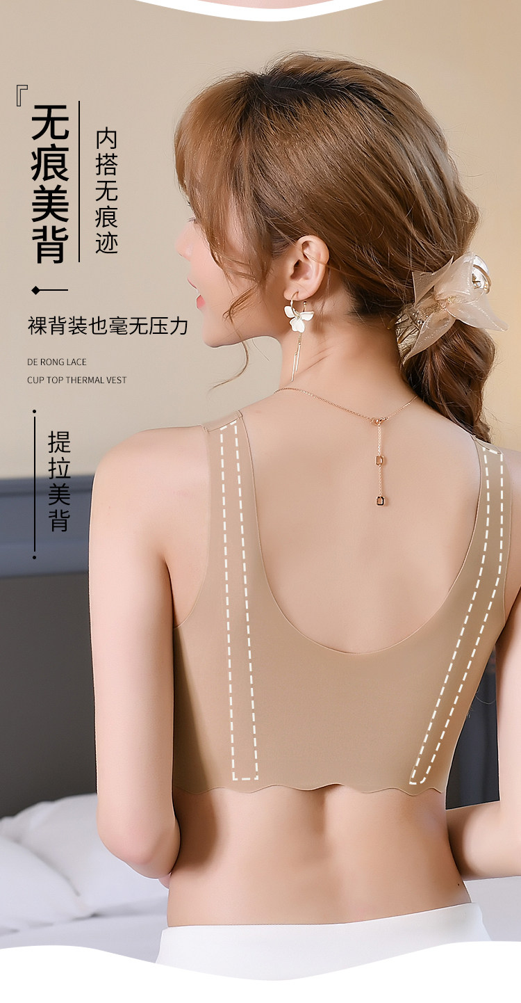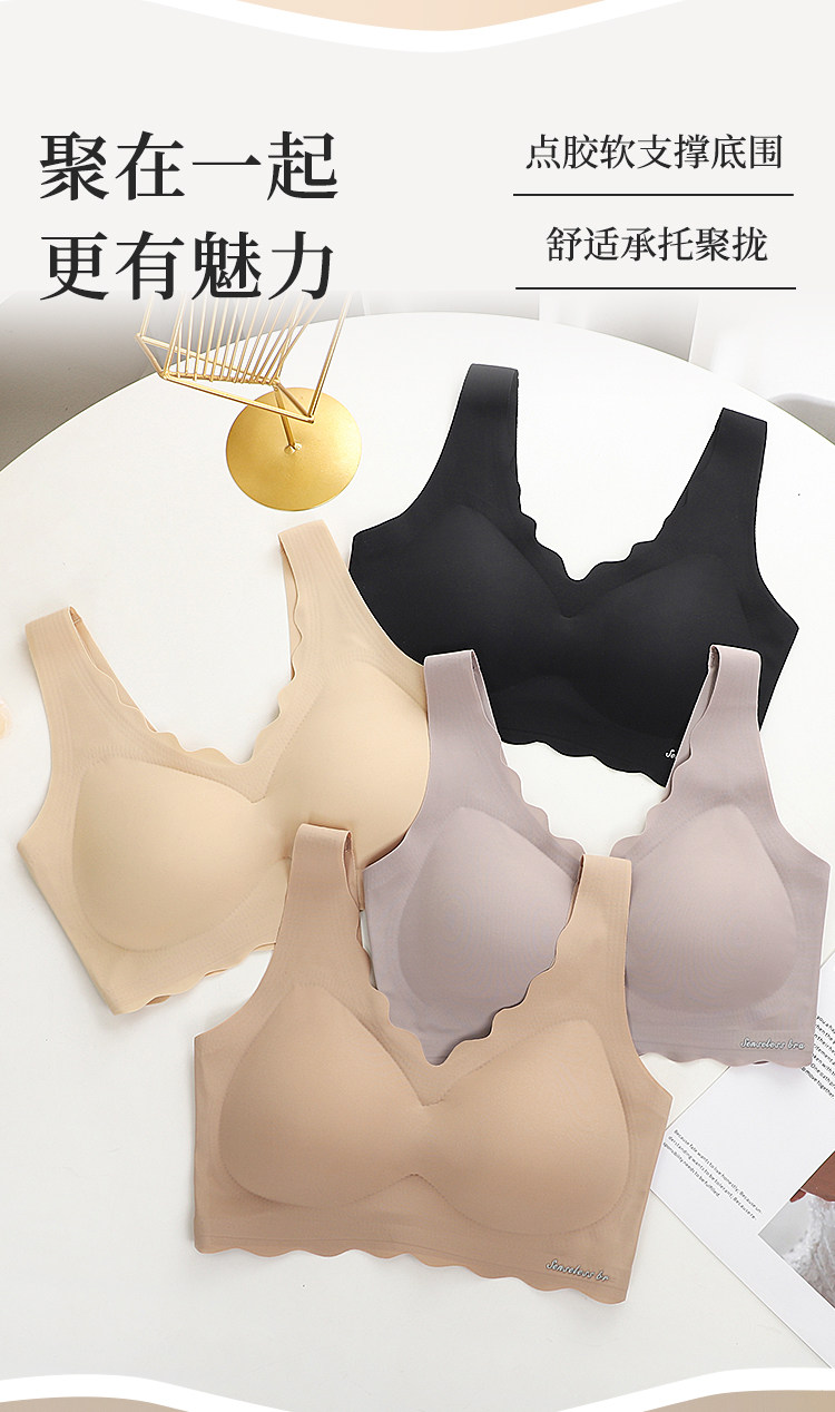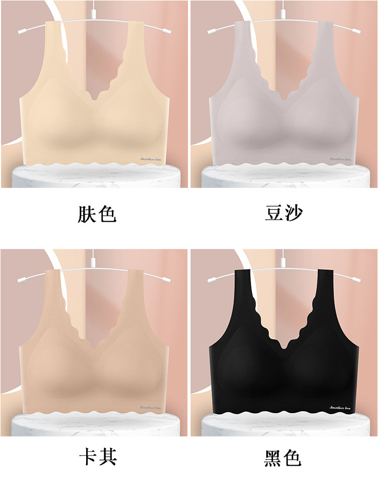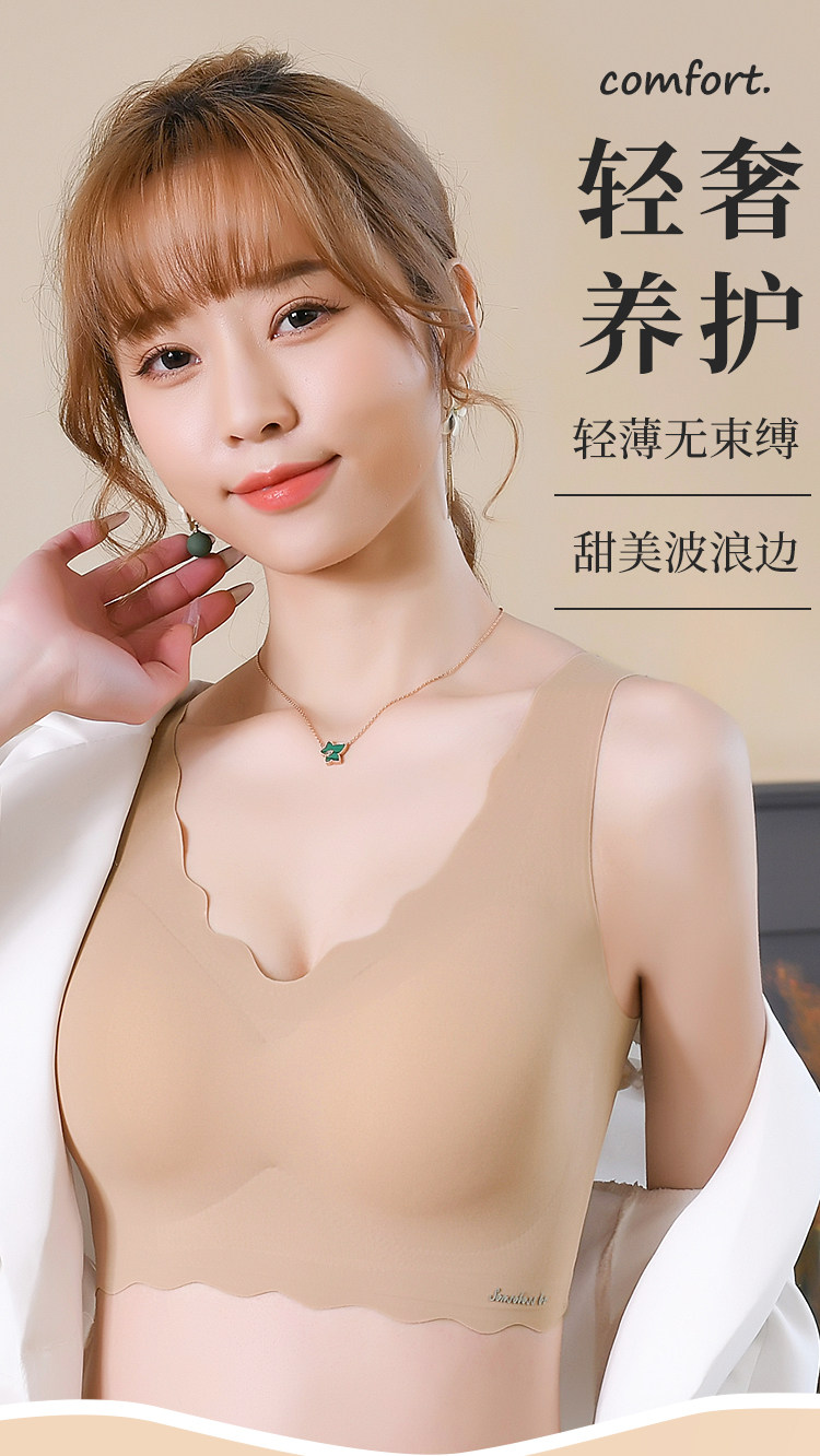 美背小聚攏冰絲無痕背心式加厚胸墊無鋼圈文胸女內衣平胸專用胸罩