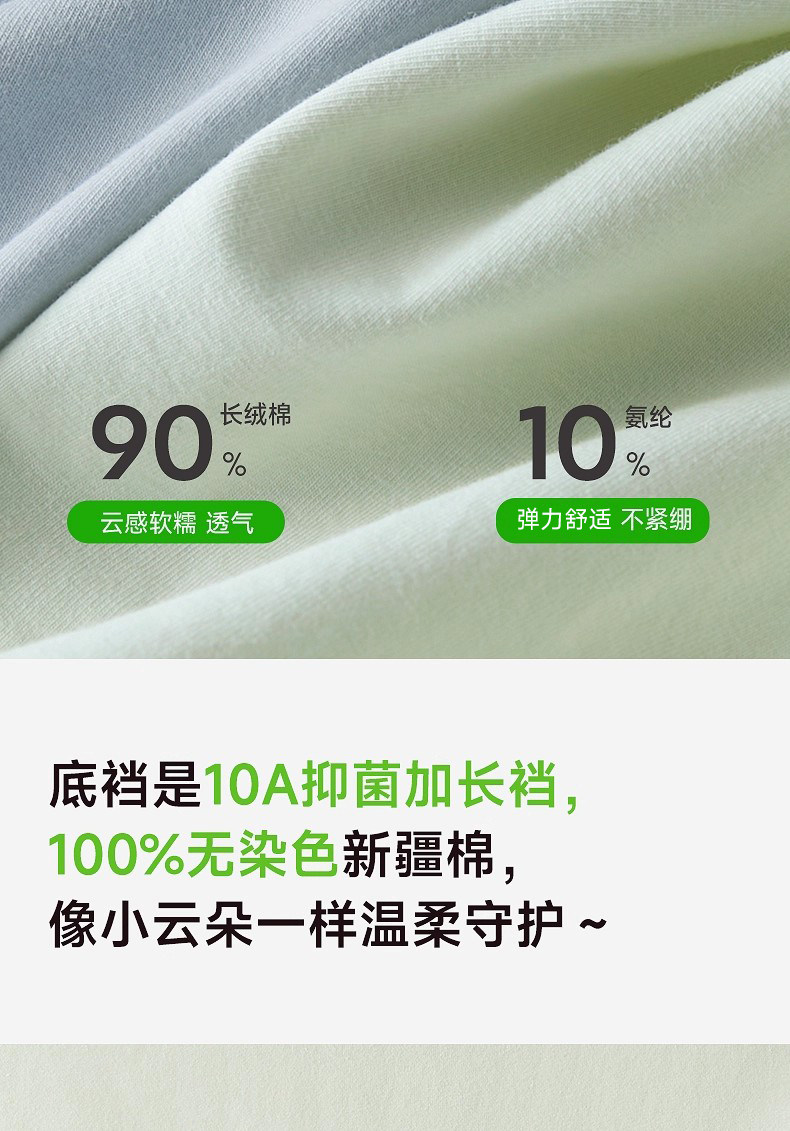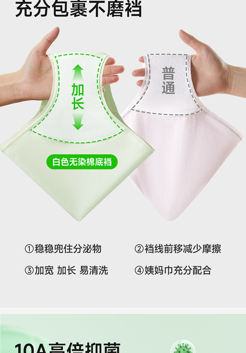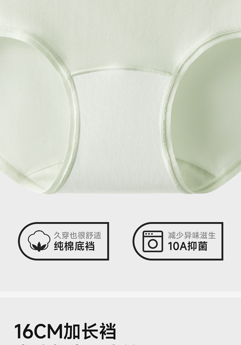 HelloSunny內褲女士純棉抗菌中腰三角褲無痕新疆棉加長襠少女短褲