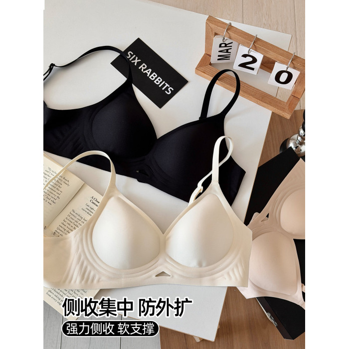 六隻兔子小攏杯無痕內衣女小胸聚攏果凍條軟支撐文胸無鋼圈胸罩女