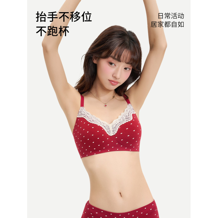 貓人本命年紅色少女內衣套裝初高中學生女童青春發育期蕾絲邊文胸