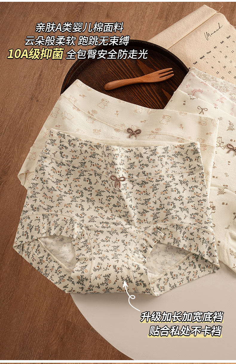 浪莎平角內褲女士純棉2025新款全棉抑菌檔無痕中腰少女生四角短褲