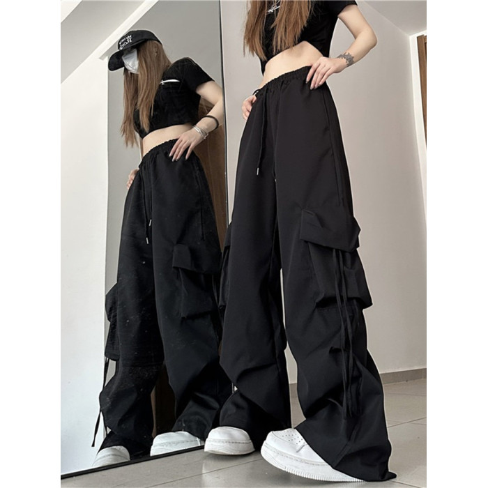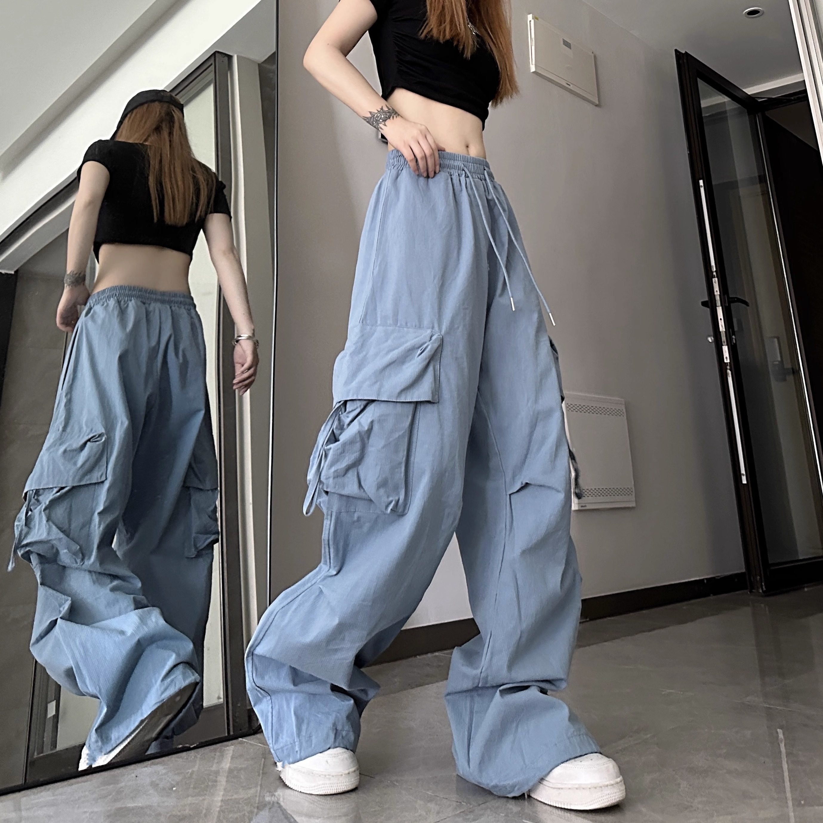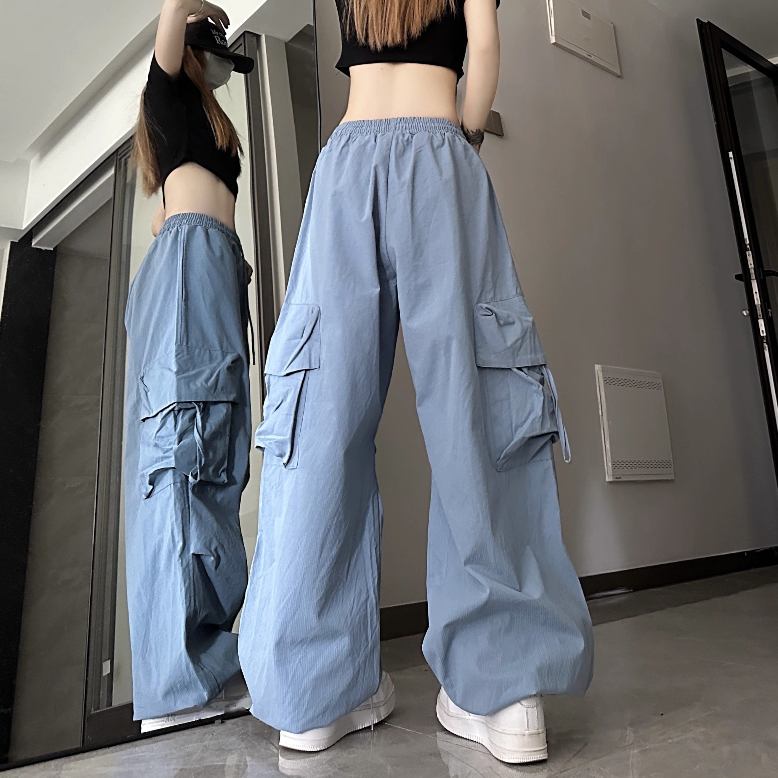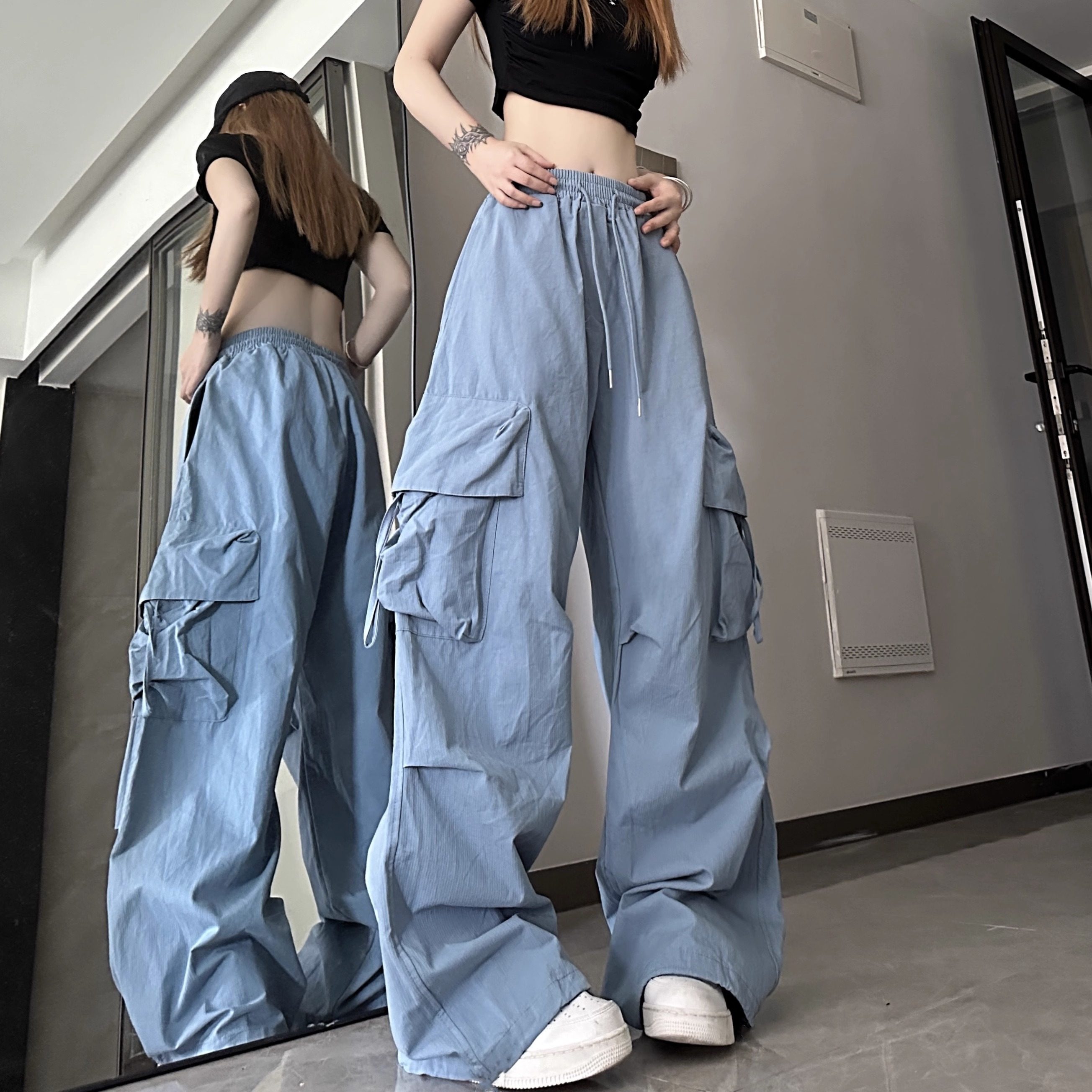 美式復古工裝褲子女春夏秋冬2025新款寬鬆濶腿hiphop爵士舞沖鋒褲