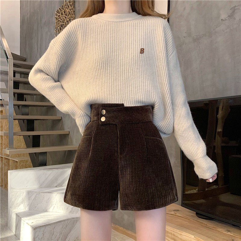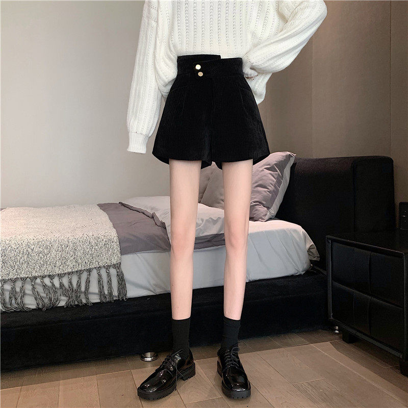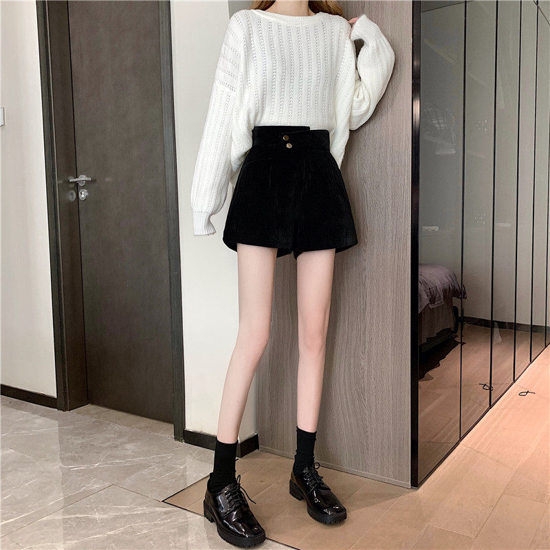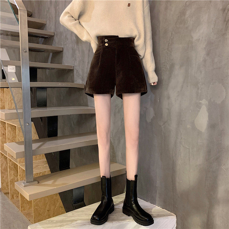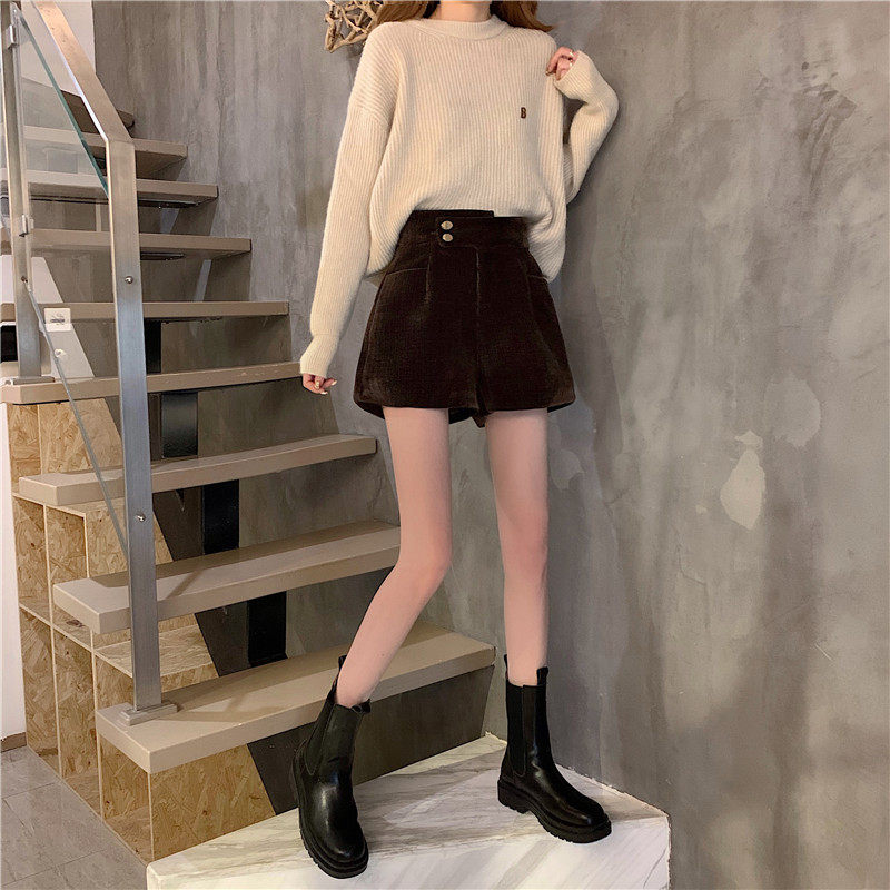 網紅爆款配靴子的短褲女秋冬款2025年新款外穿高腰寬鬆濶腿褲靴褲