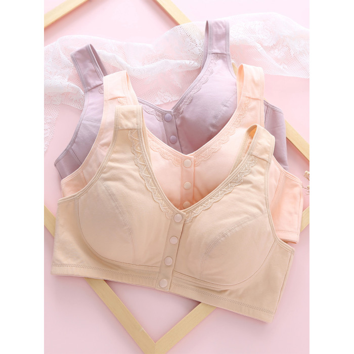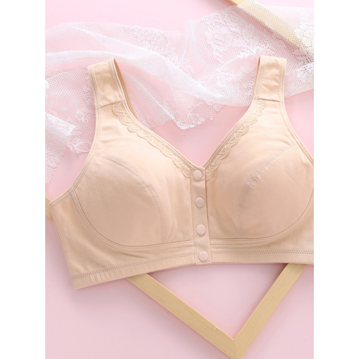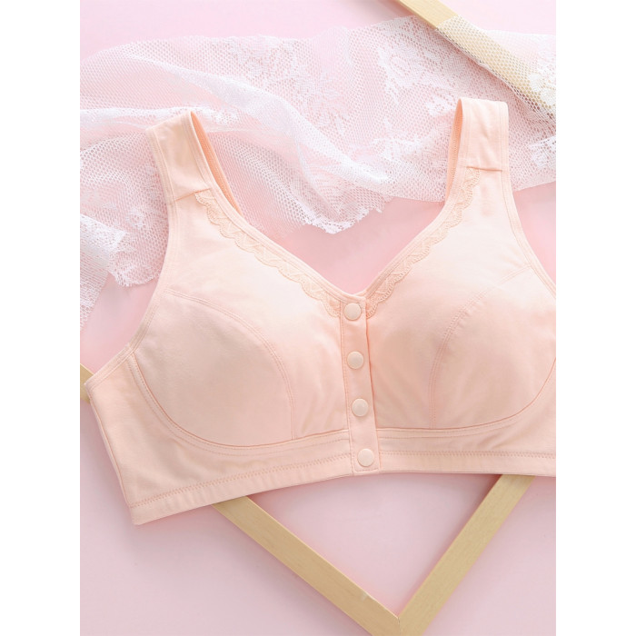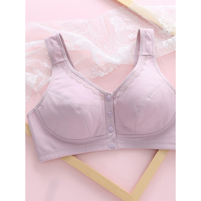 媽媽內衣文胸中老年人無鋼圈全純棉薄款背心式透氣夏大碼前釦胸罩