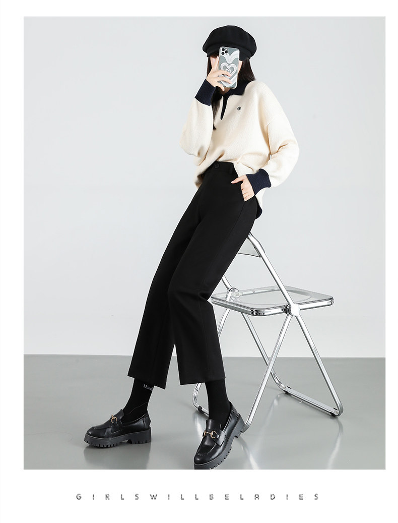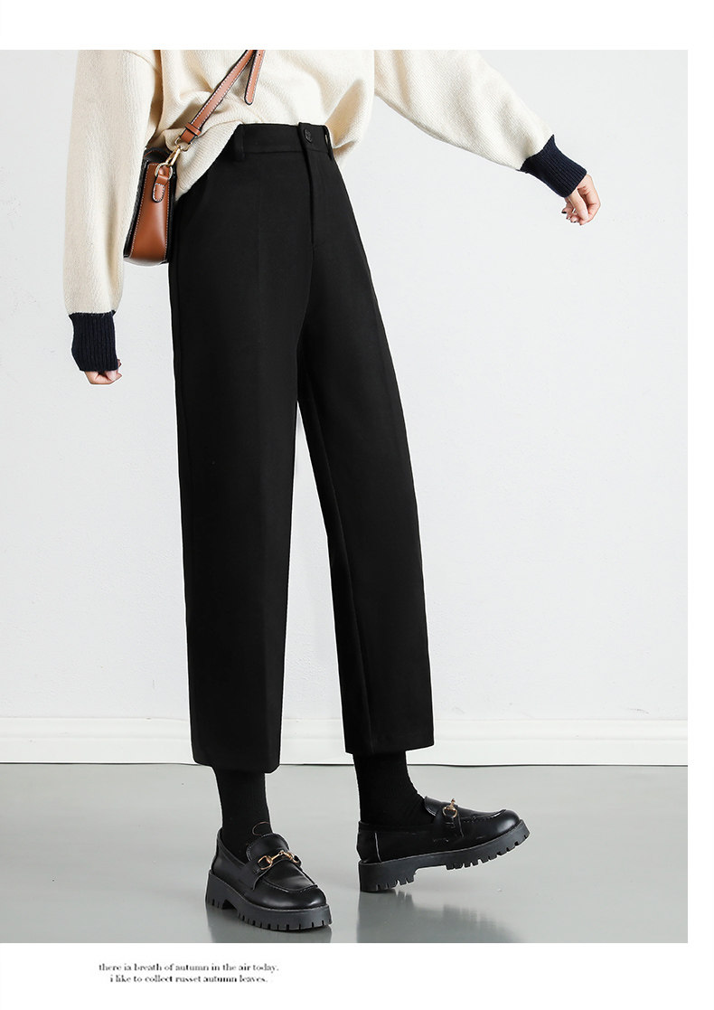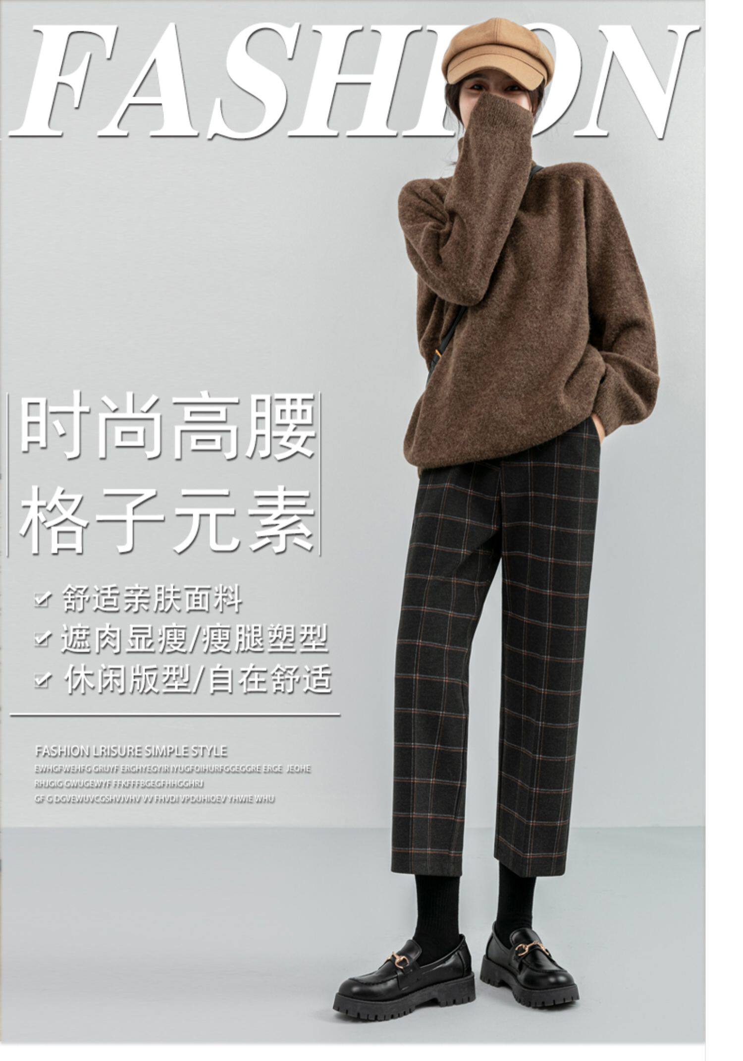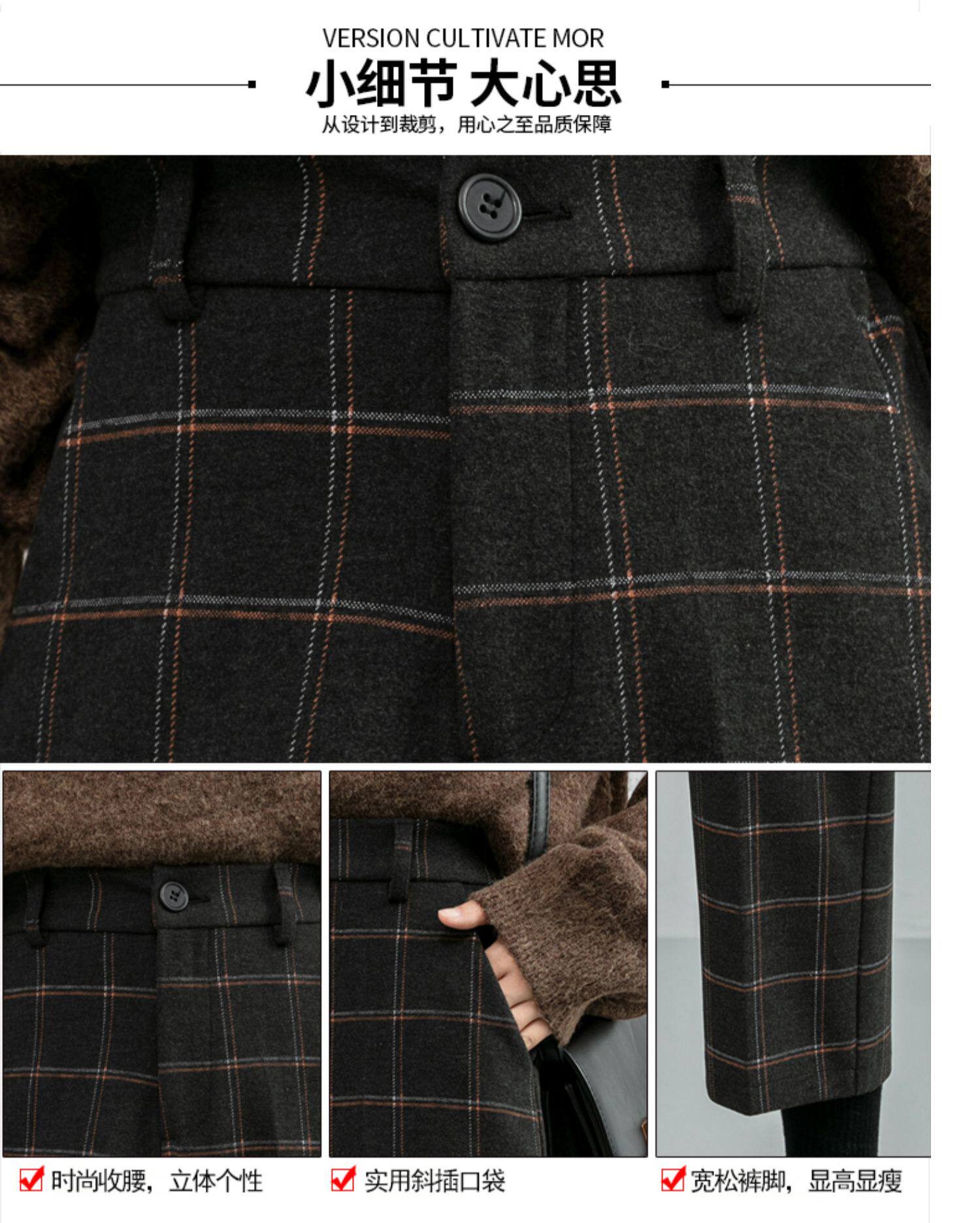 毛呢褲格子直筒秋冬女今年流行的九分小個子濶腿復古冬季褲子靴褲
