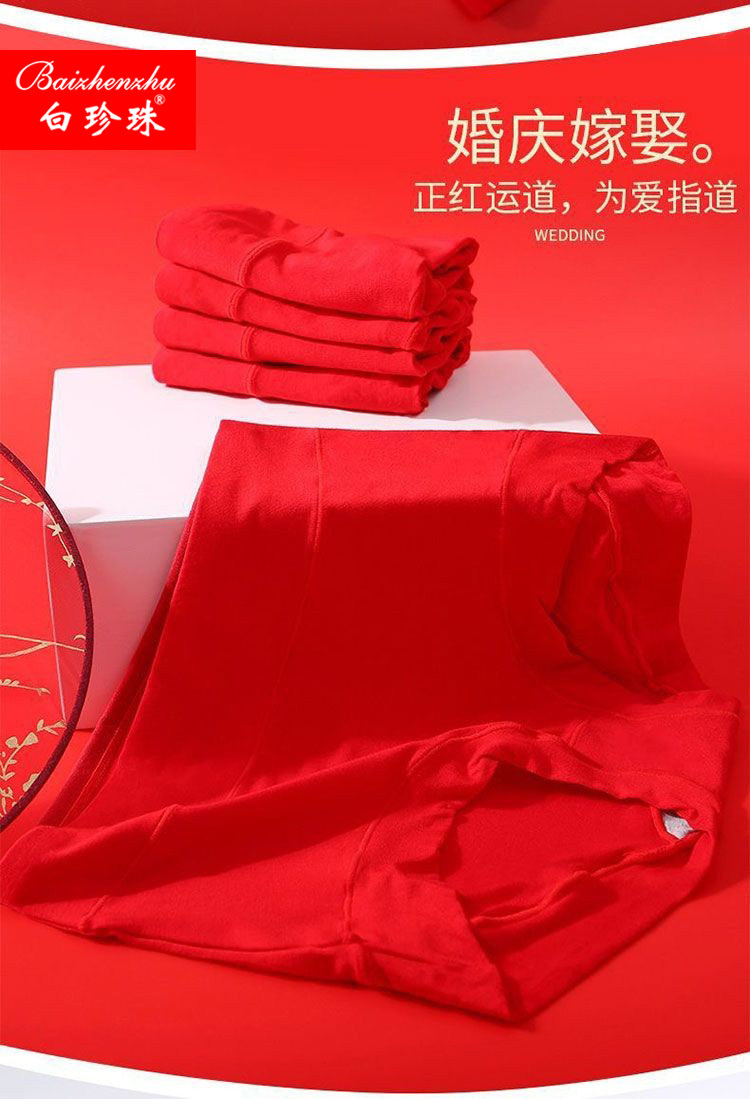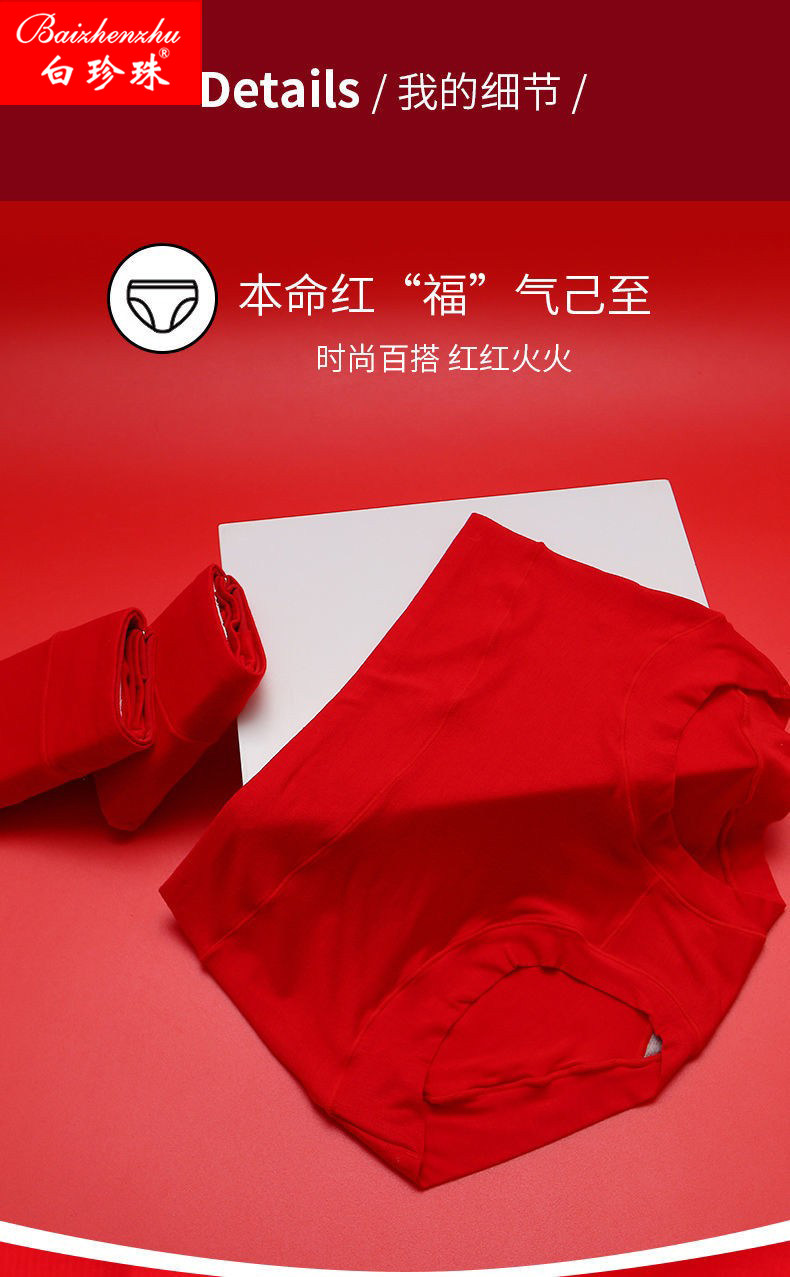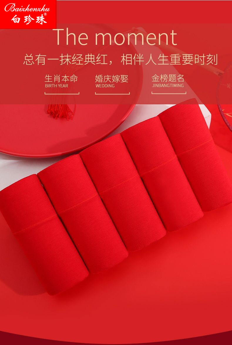 白珍珠本命年大紅色莫代爾女士內褲女大碼抗菌純棉襠紅色三角褲