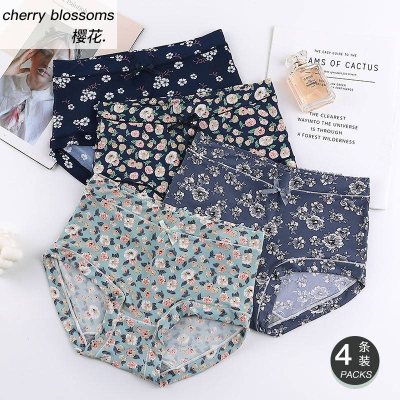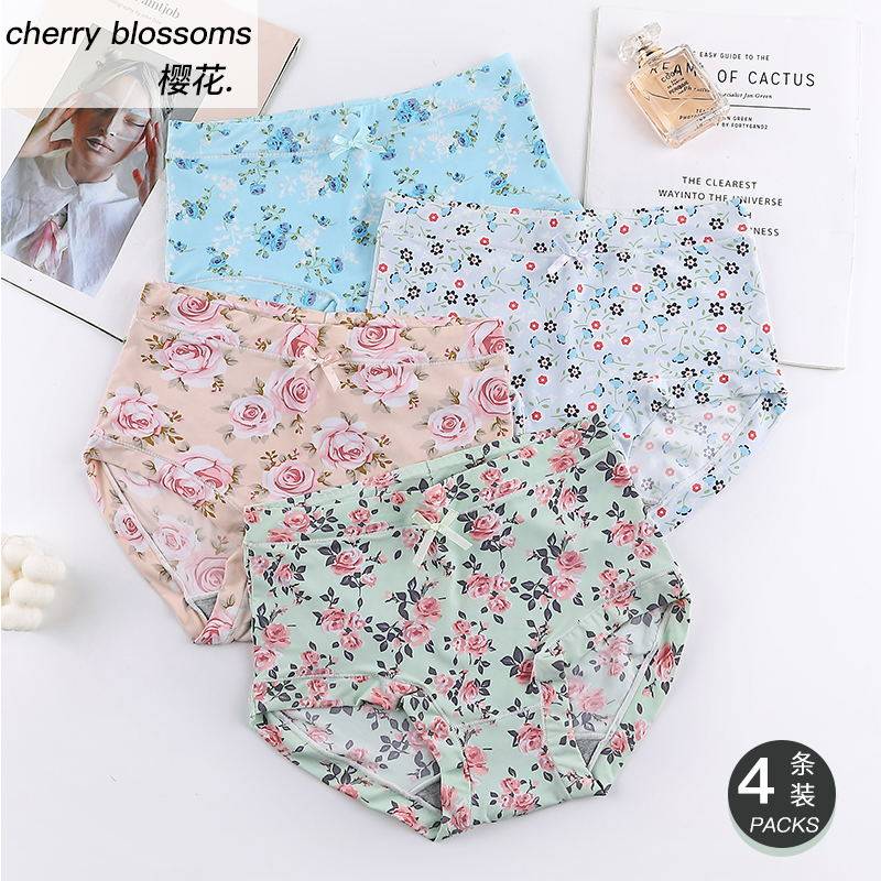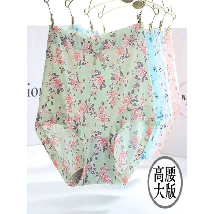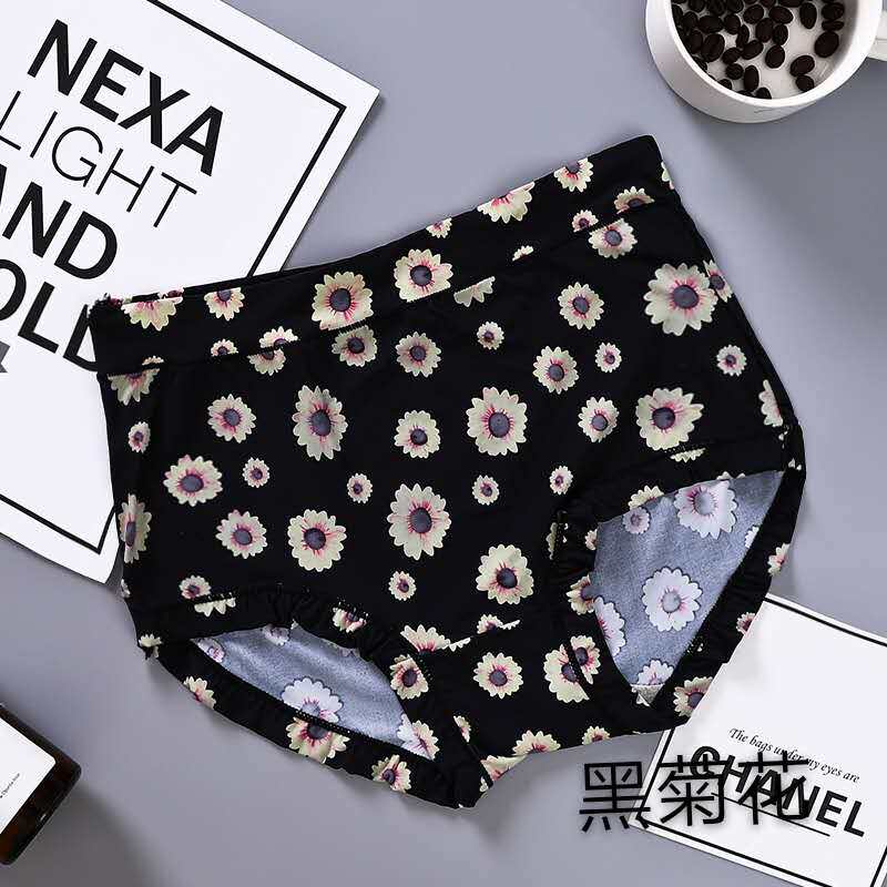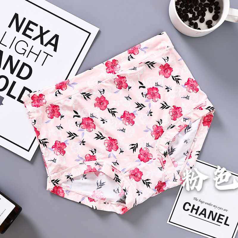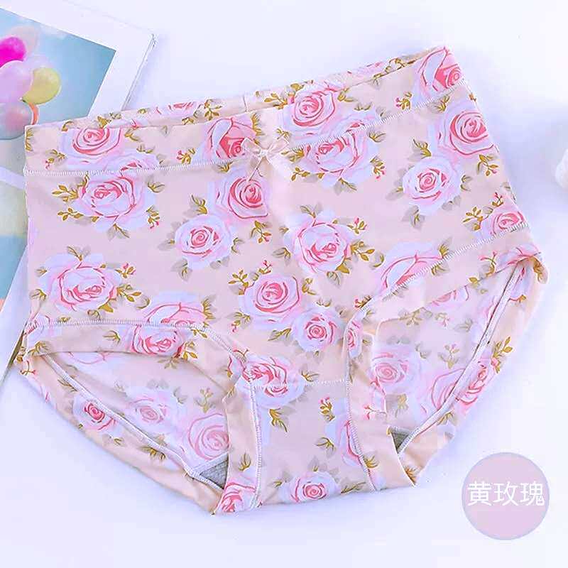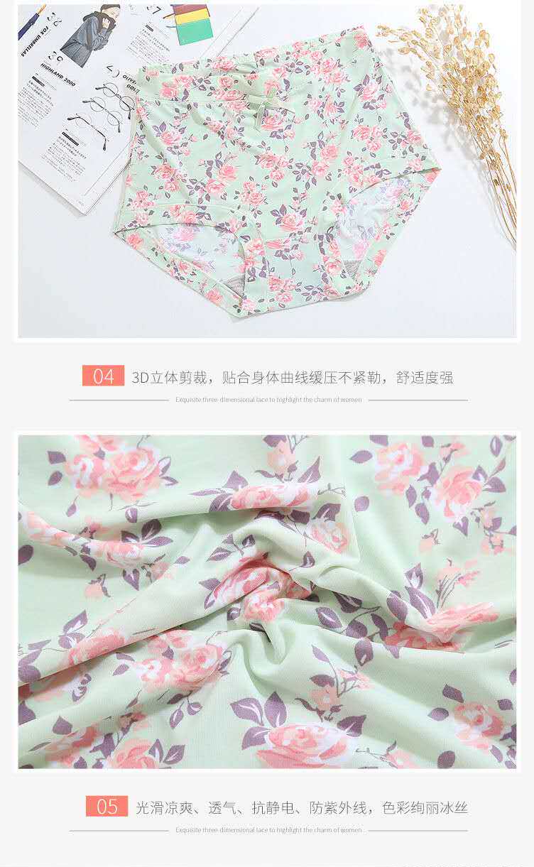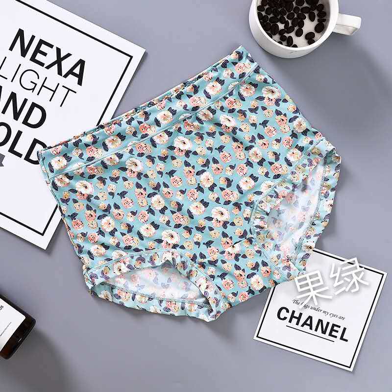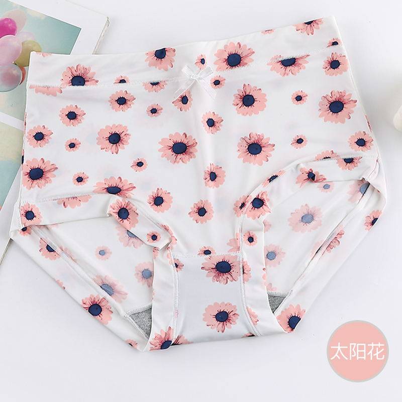 內褲女牛奶絲滑冰絲無痕高腰透氣速乾印花女士包臀蓋肚臍胖MM短褲