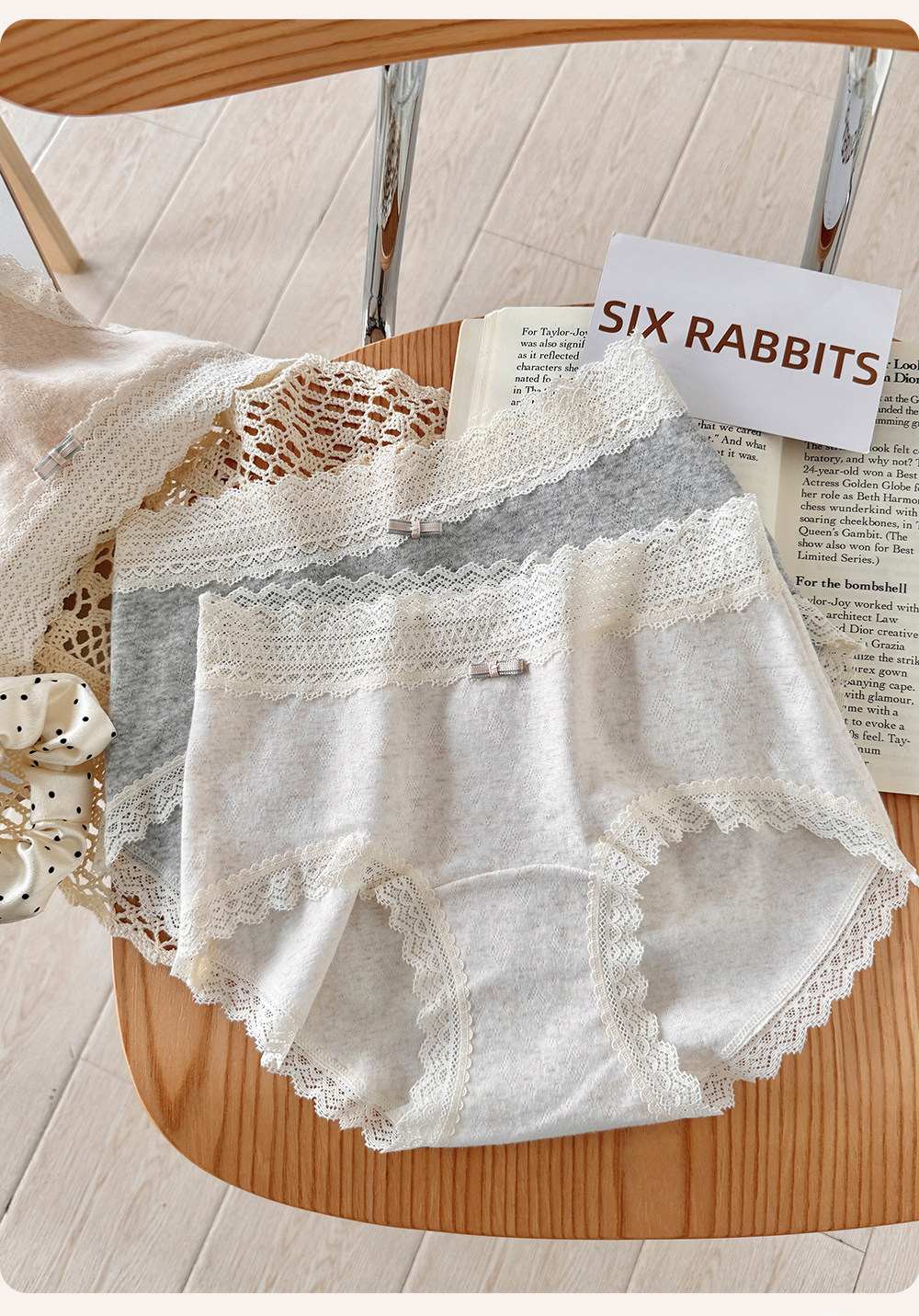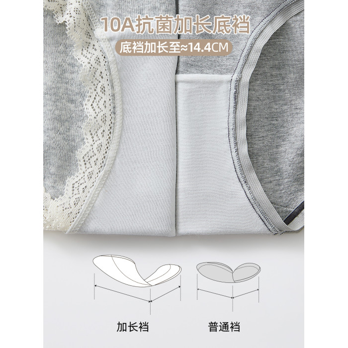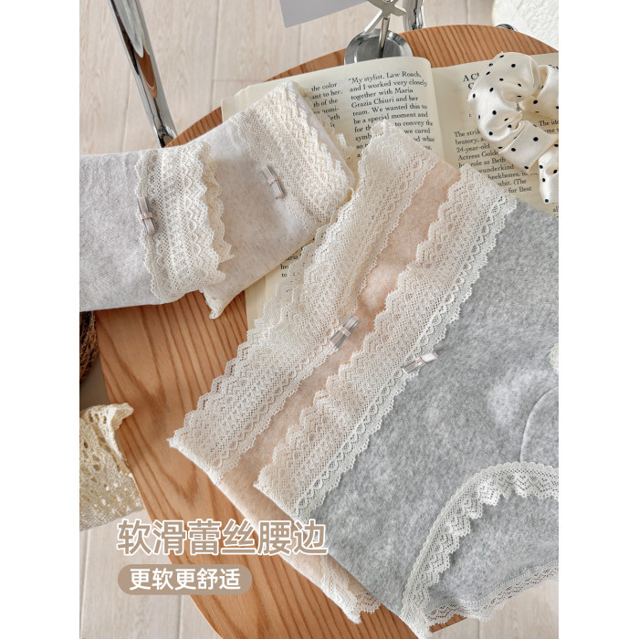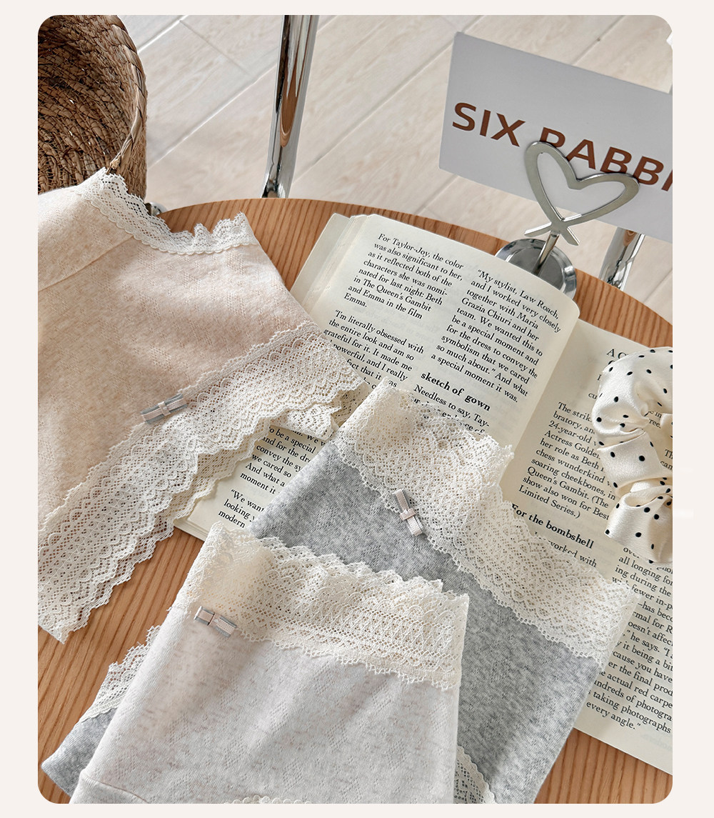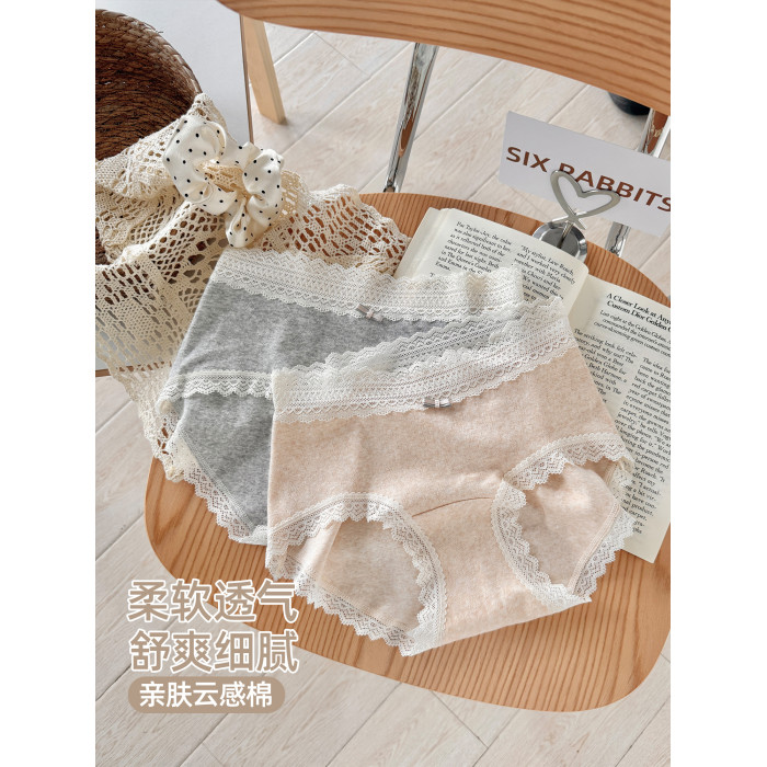 六隻兔子3條裝內褲女純棉10A抑菌底襠三角褲蕾絲邊中腰包臀短褲