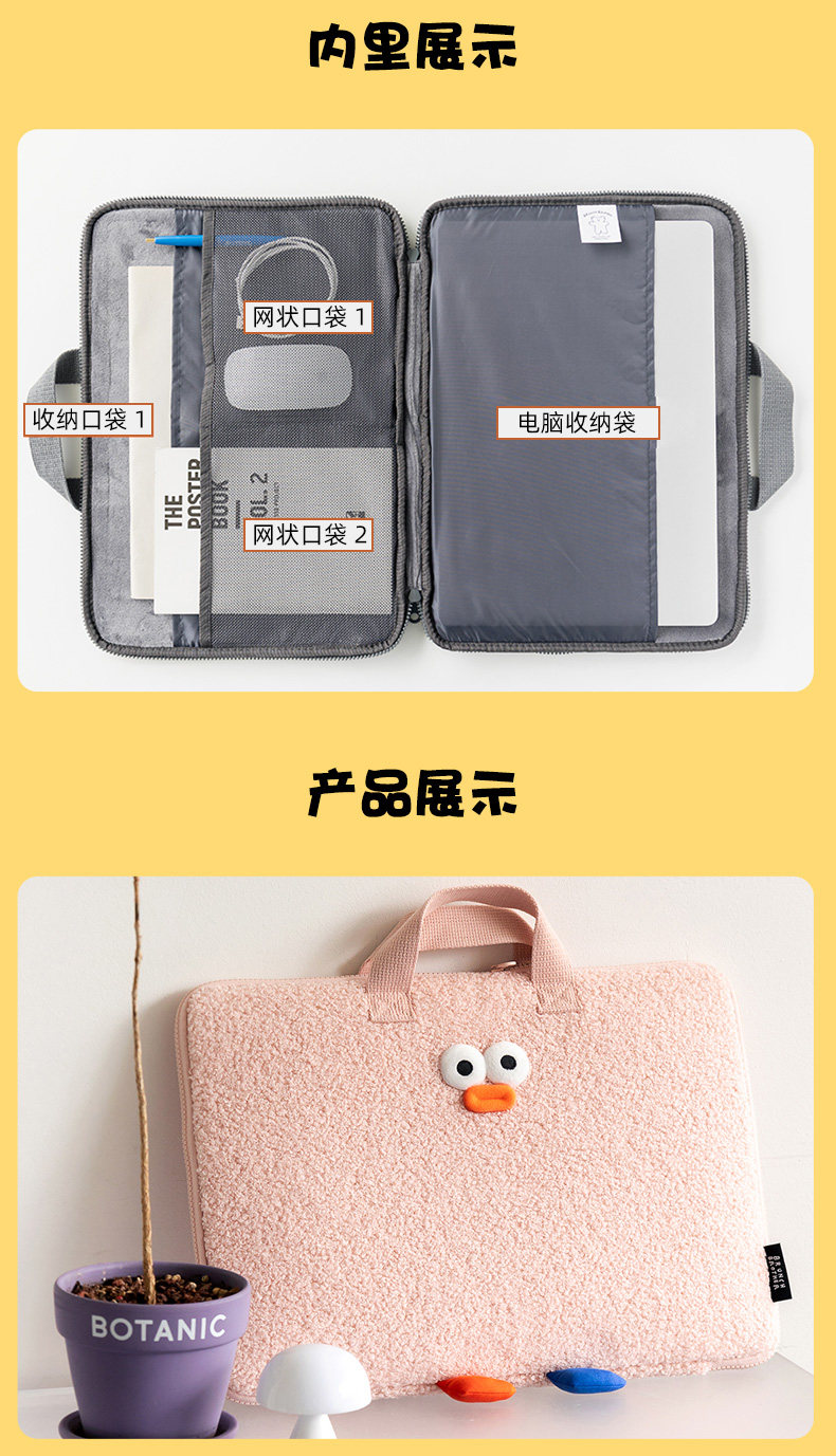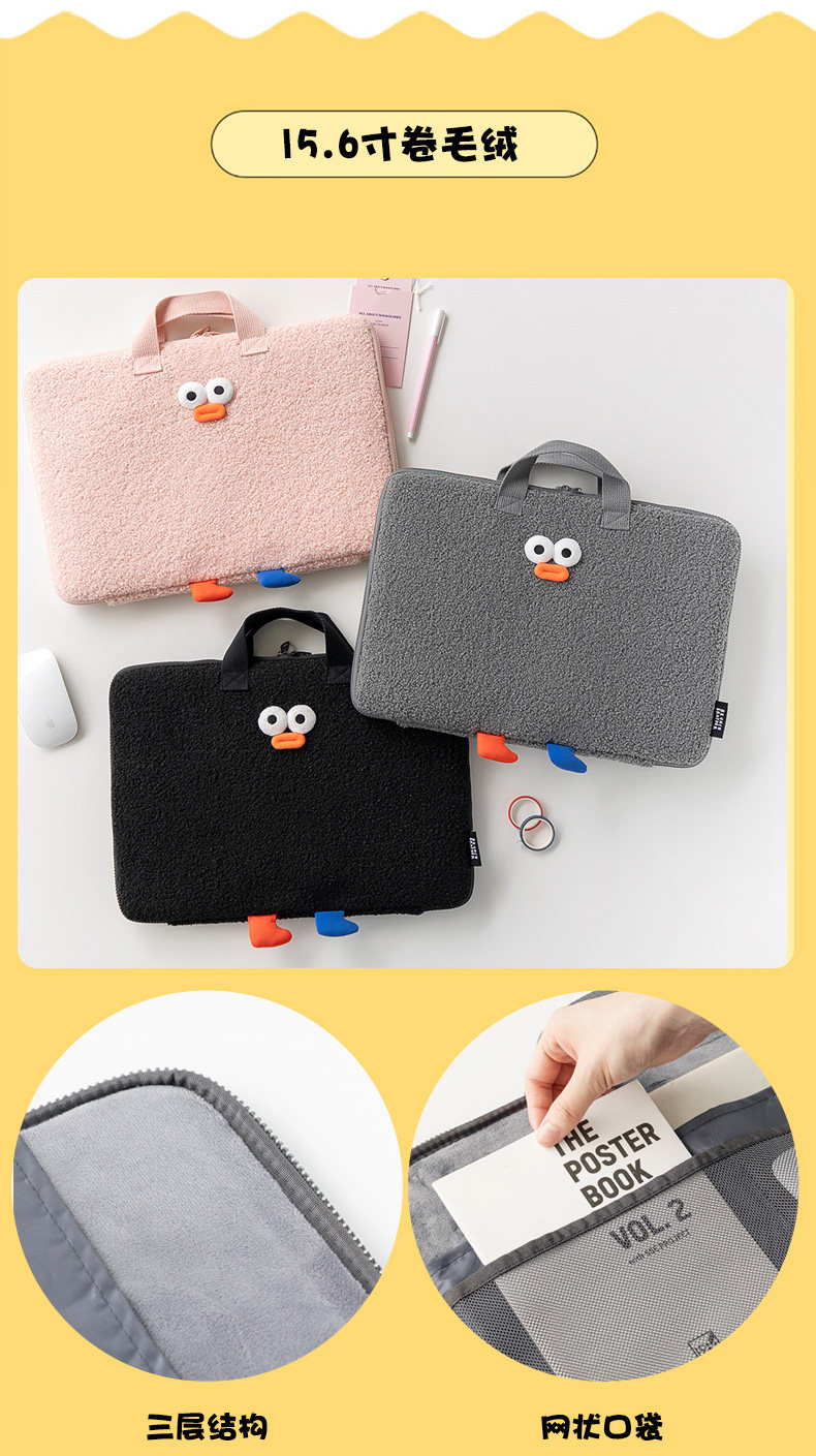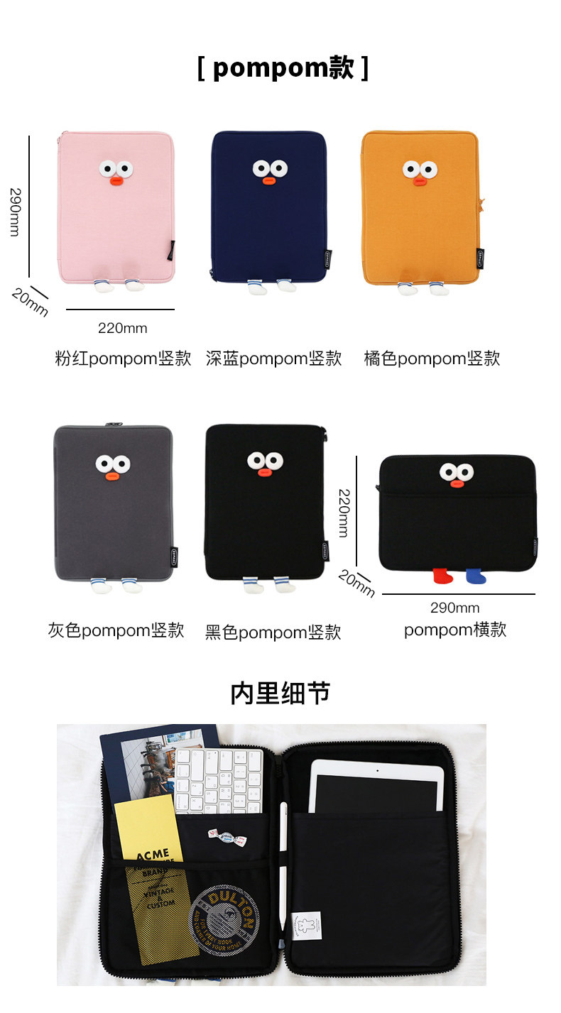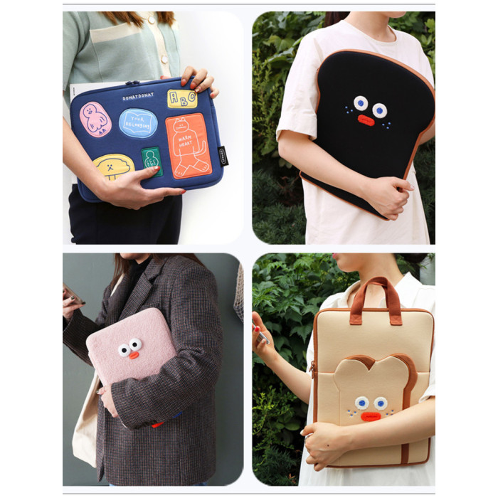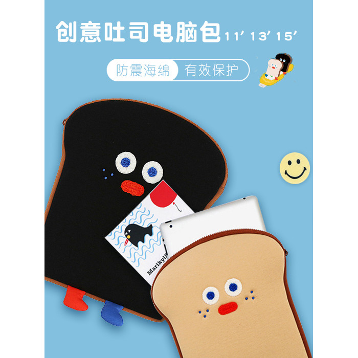 Romane韓國創意可愛醜萌吐司君15寸適用華爲蘋果macbook13寸筆記型電腦包ipad平板11寸內膽包手拿文件包
