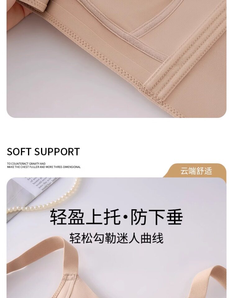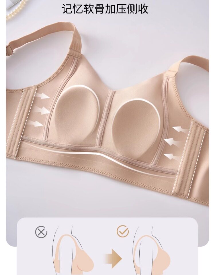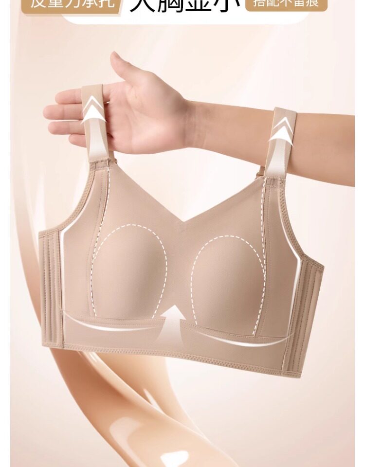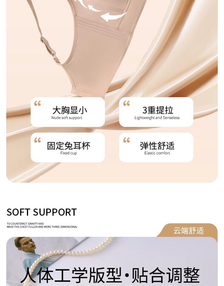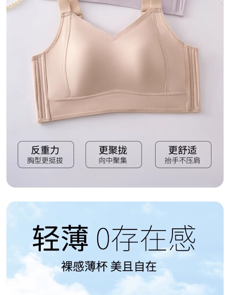 無痕大胸顯小內衣女聚攏提拉防下垂文胸粉底液隱形束胸薄款紙片人