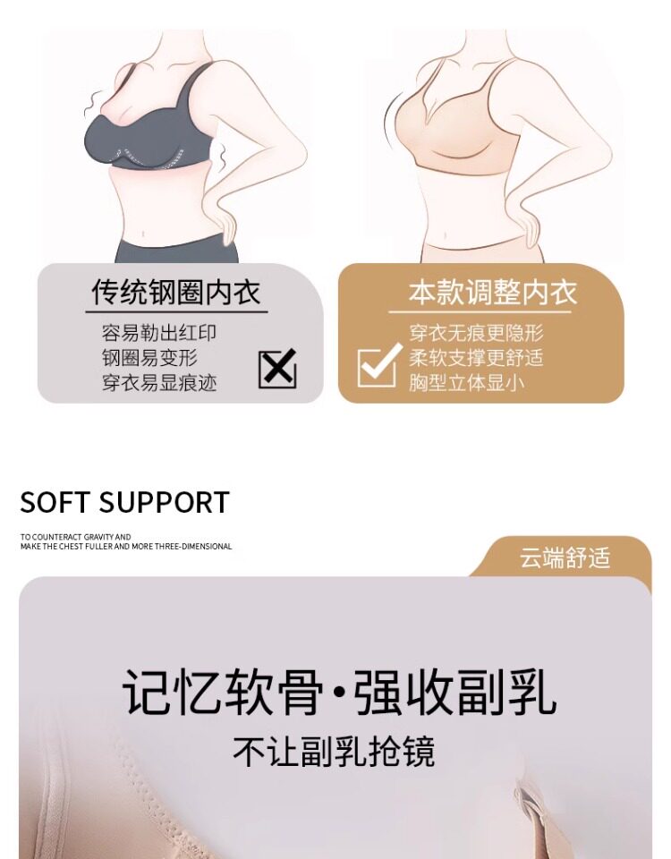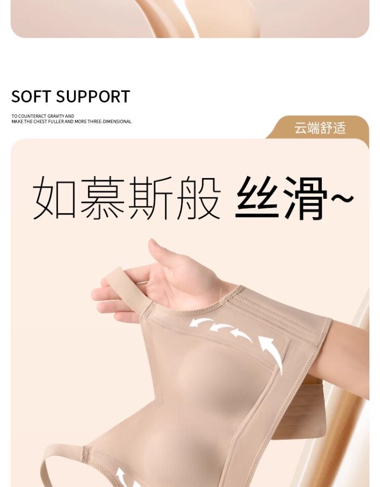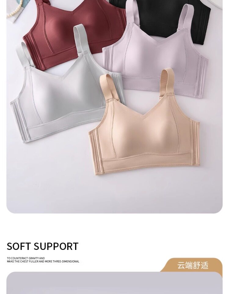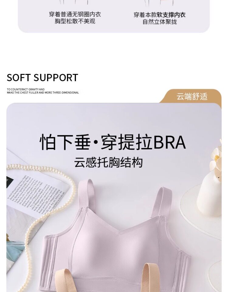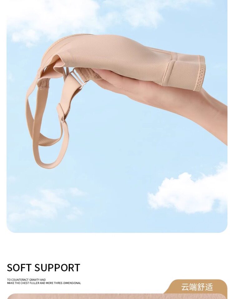 無痕大胸顯小內衣女聚攏提拉防下垂文胸粉底液隱形束胸薄款紙片人