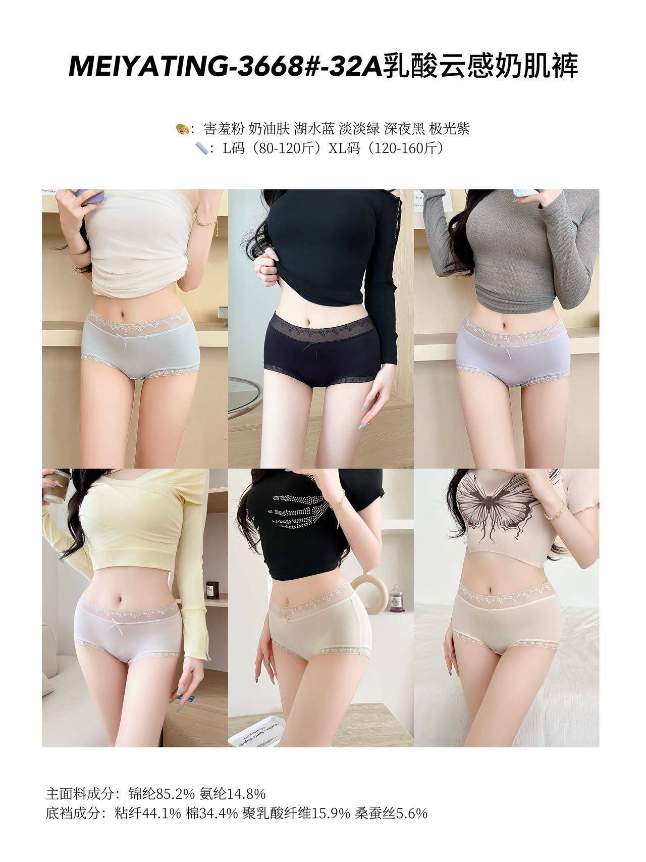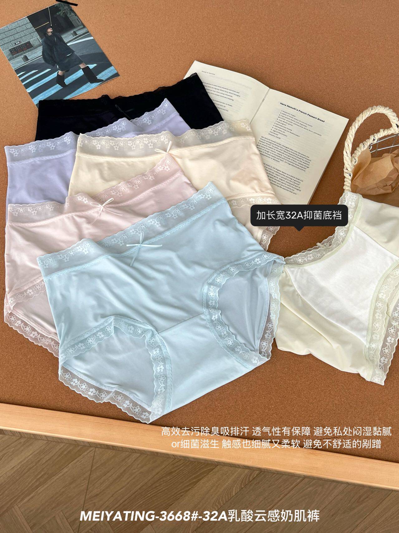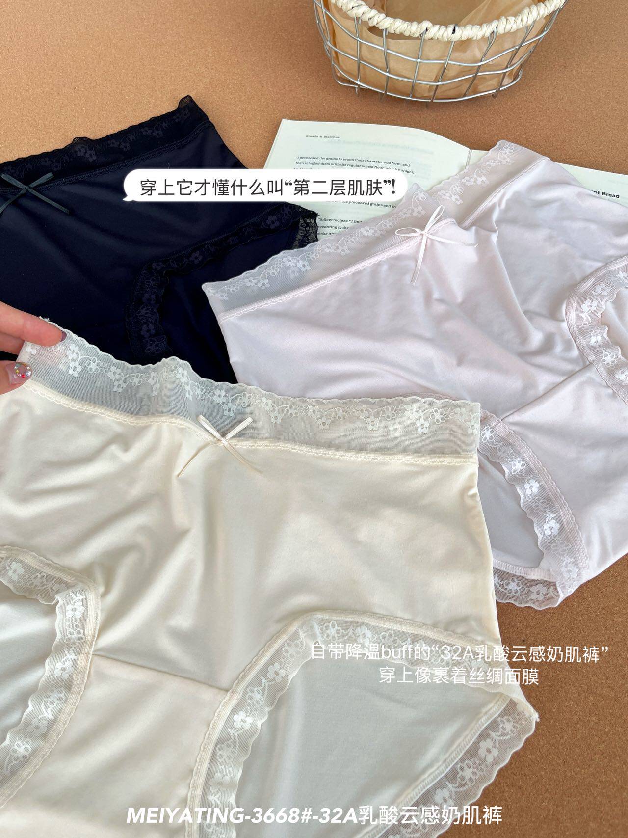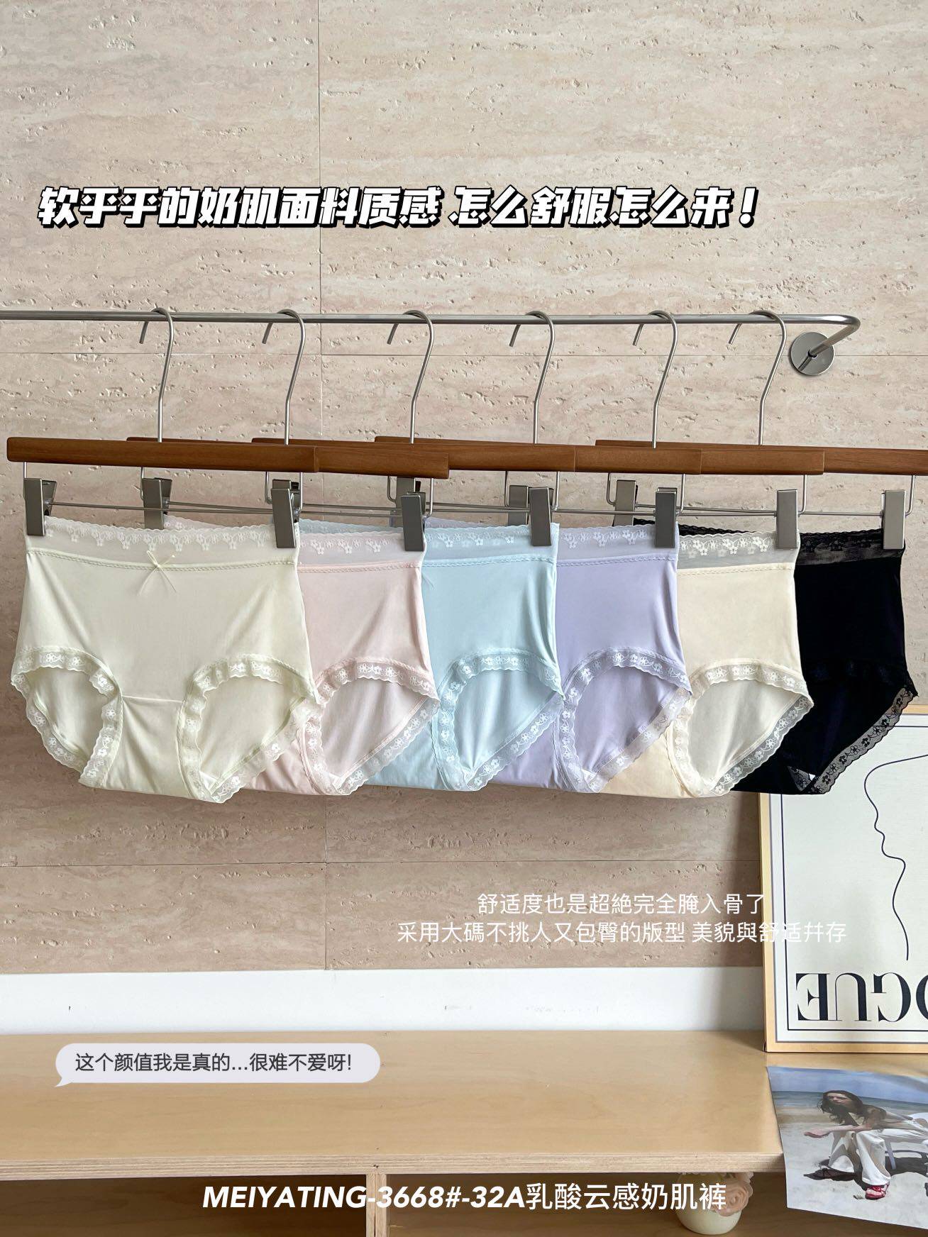 MEIYATING-3668#-32A乳酸雲感奶肌褲抗菌內褲蕾絲超薄冰涼三角褲