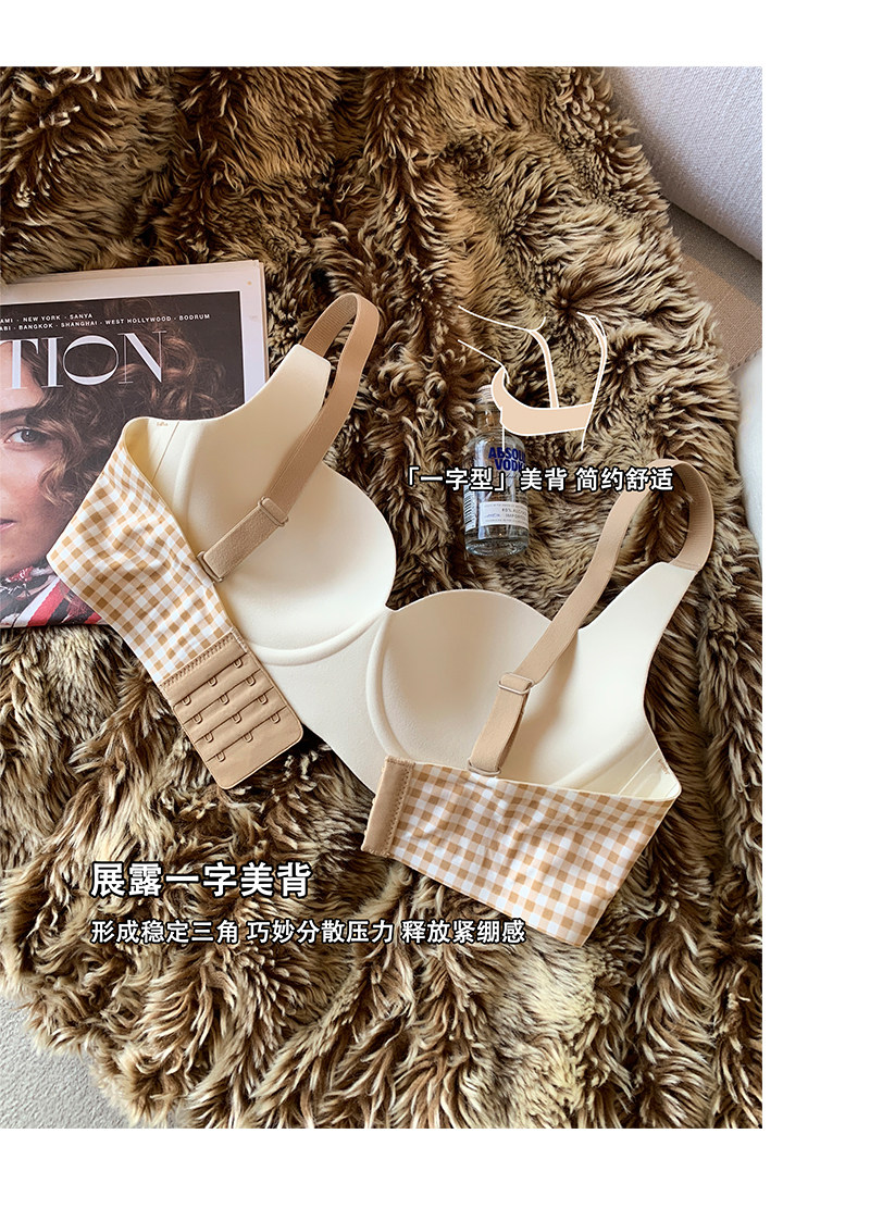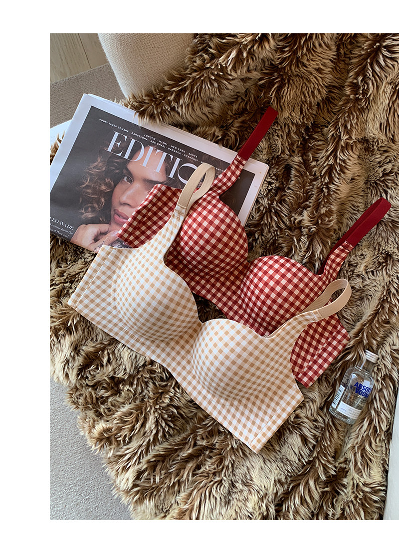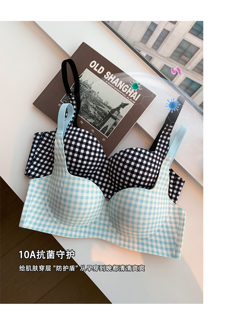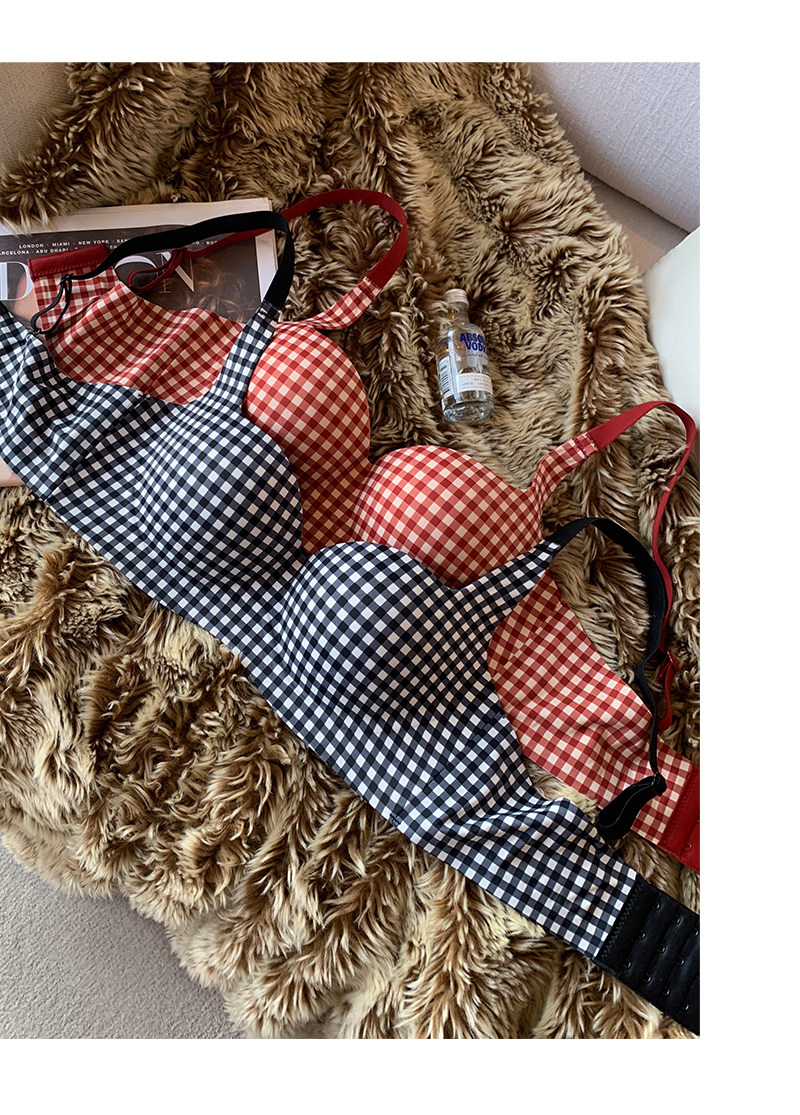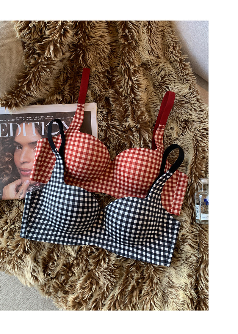 紅色格子抑菌內衣女小胸聚攏提拉上托升杯無鋼圈收副乳防下垂文胸