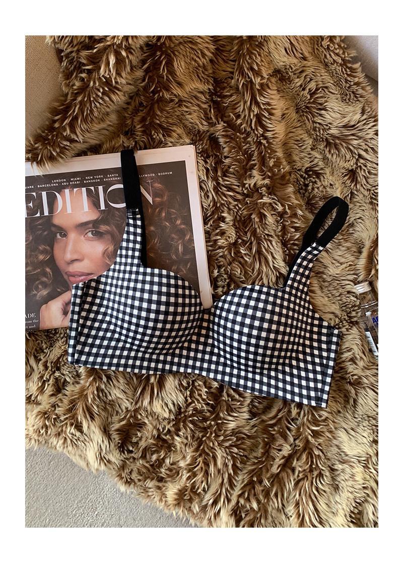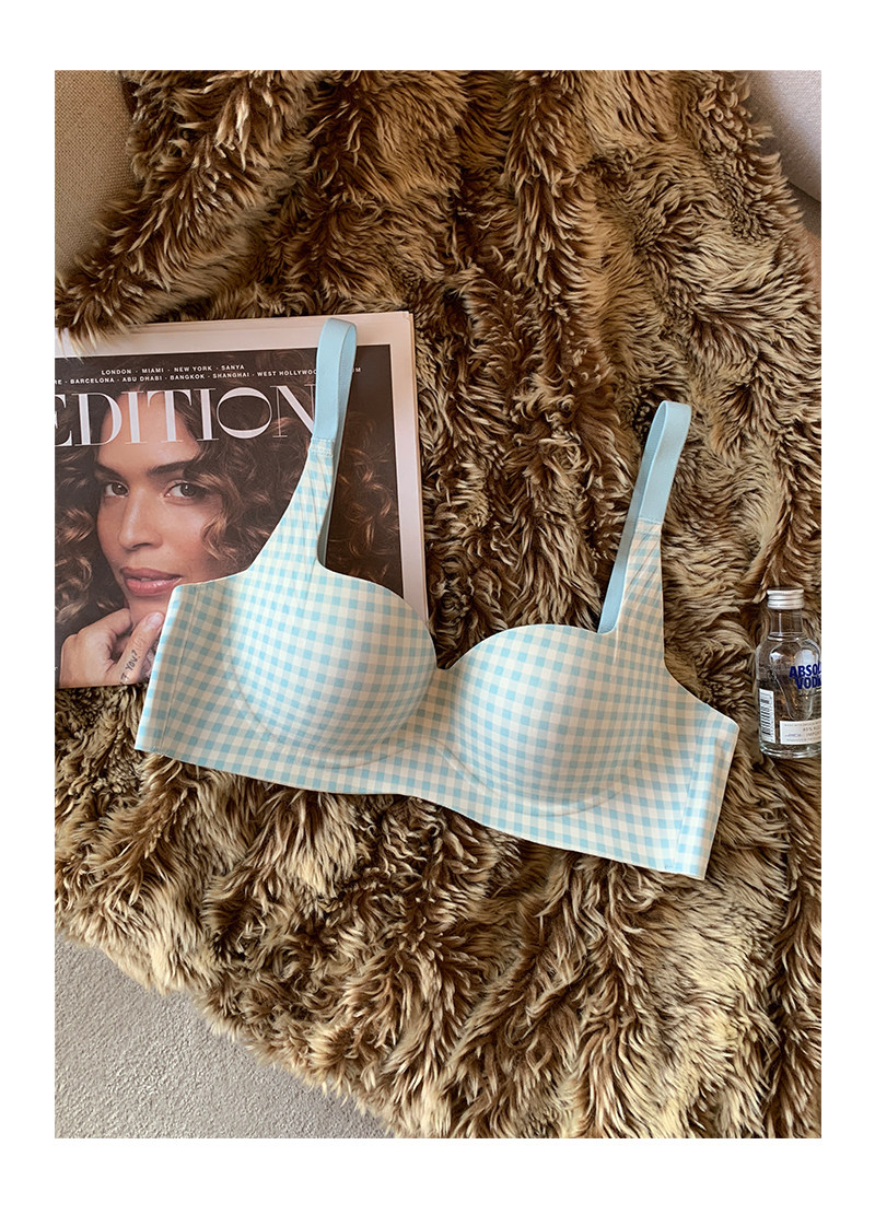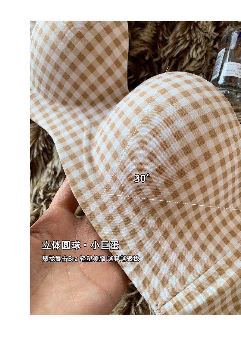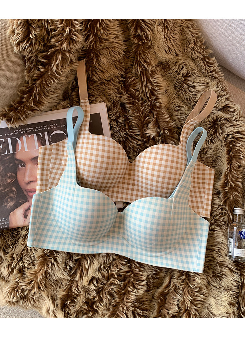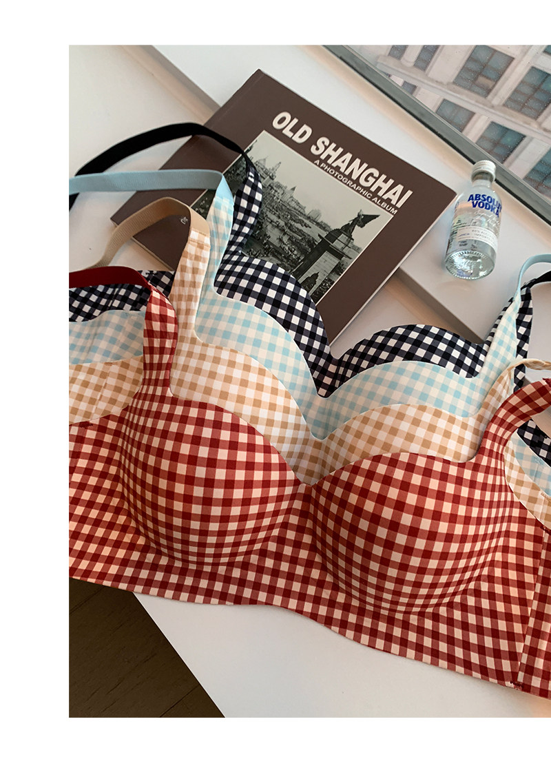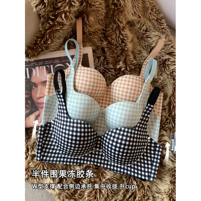紅色格子抑菌內衣女小胸聚攏提拉上托升杯無鋼圈收副乳防下垂文胸