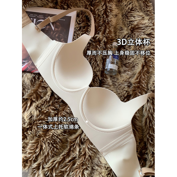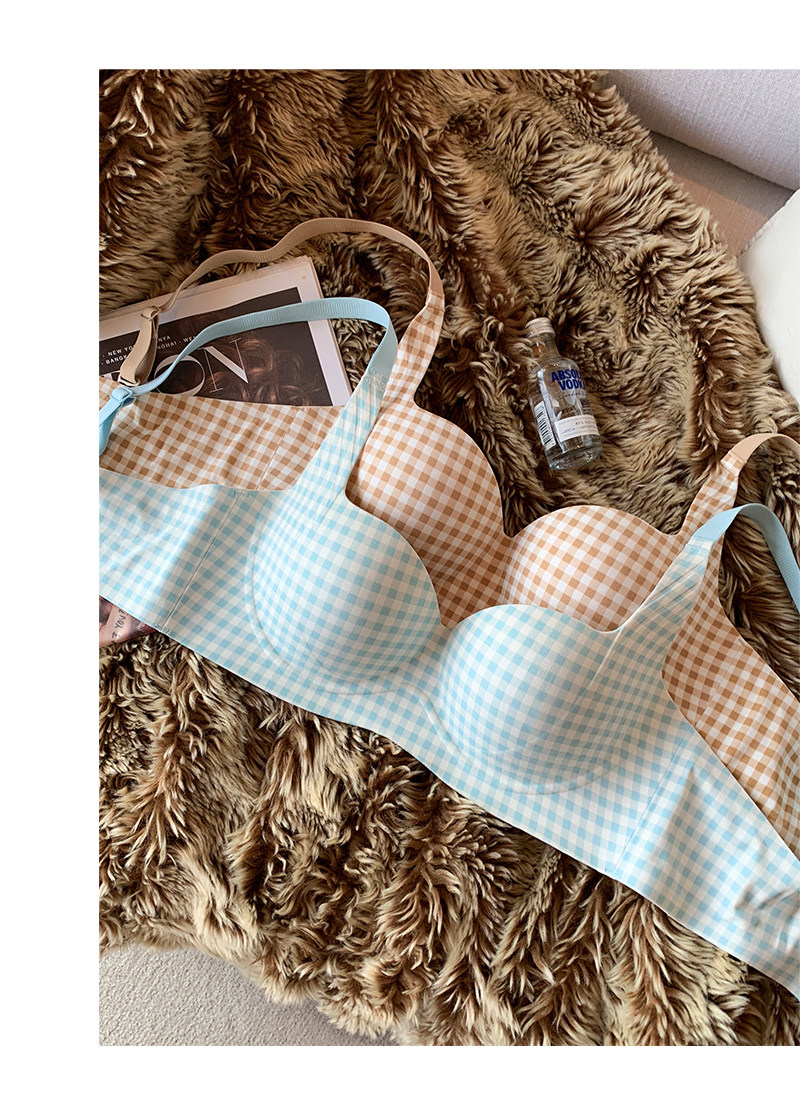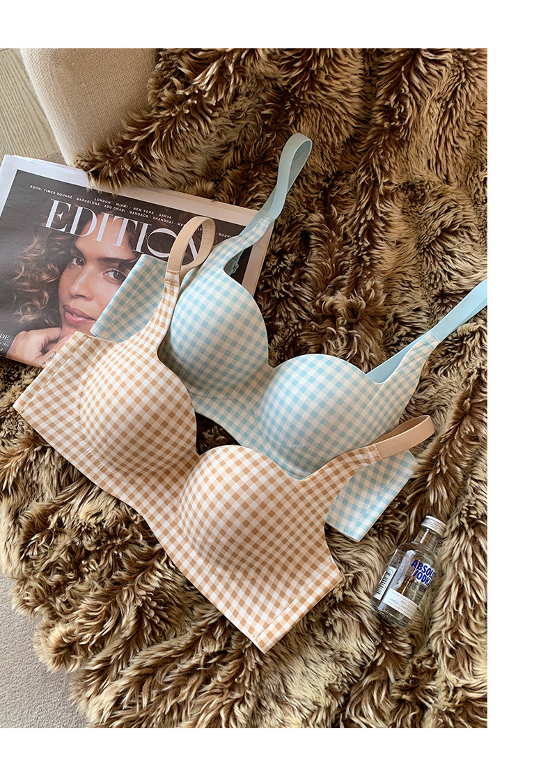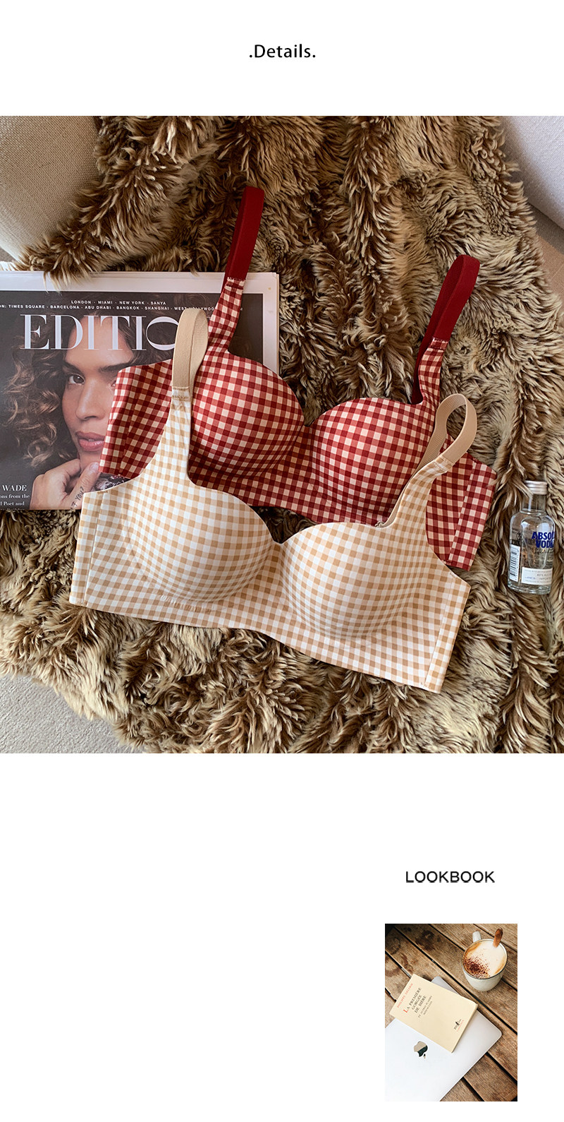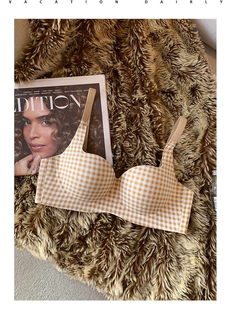 紅色格子抑菌內衣女小胸聚攏提拉上托升杯無鋼圈收副乳防下垂文胸