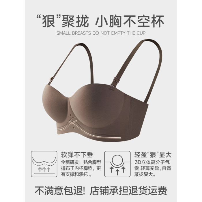 貓人內衣女小胸聚攏顯大防下垂無鋼圈收副乳半杯無肩帶無痕文胸罩